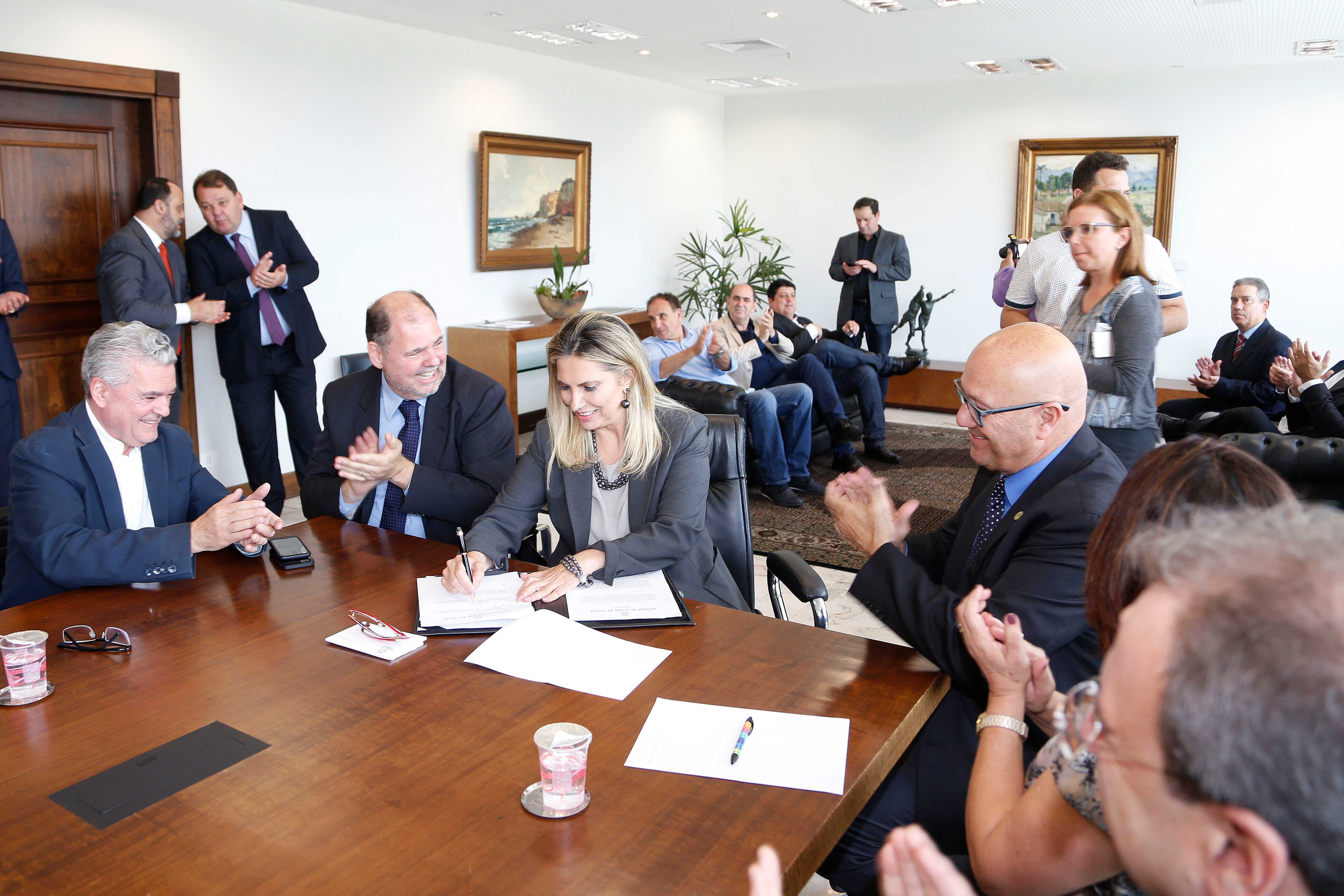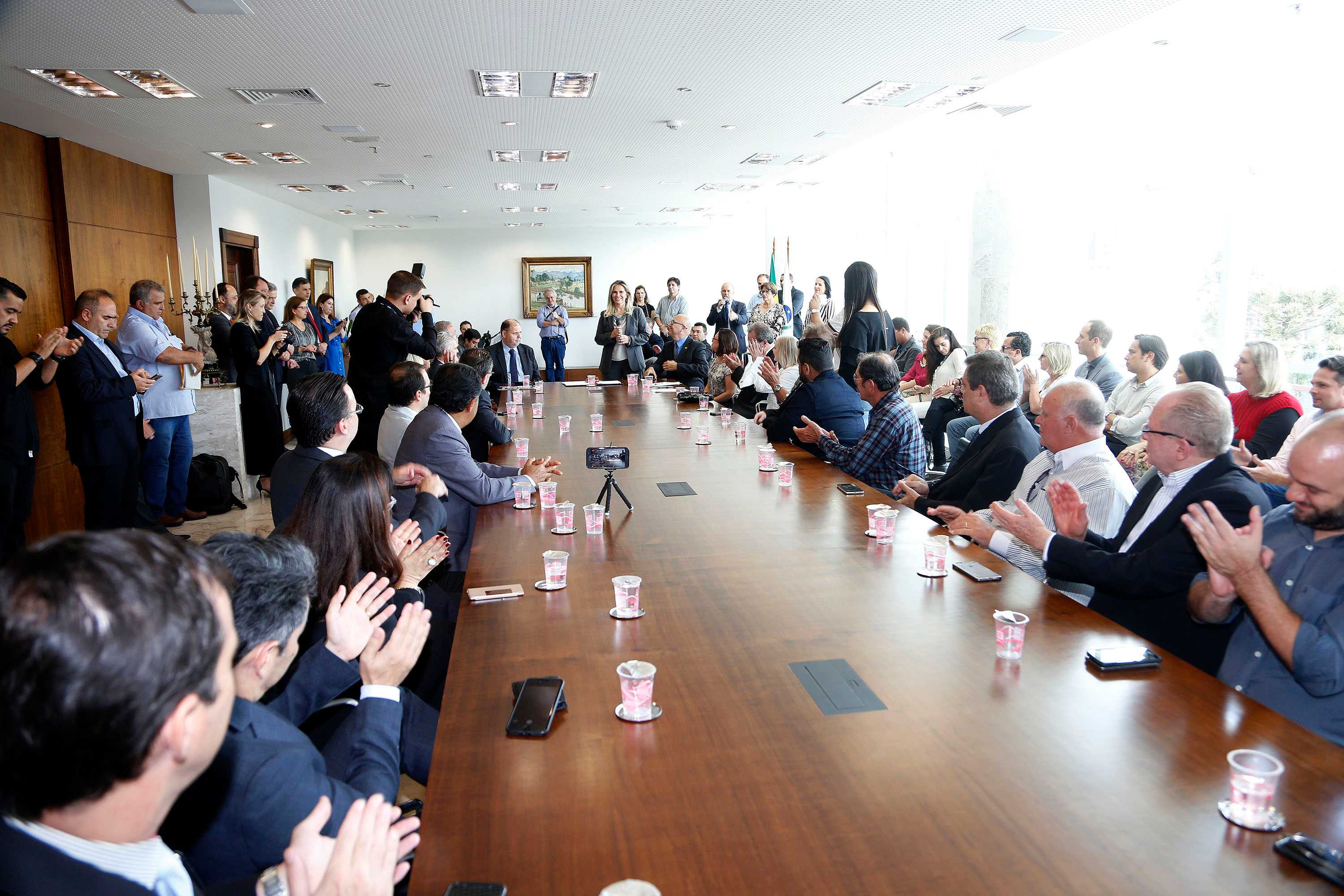 Cornélio Procópio – Em solenidade realizada no Palácio Iguaçu, sede do Governo do Paraná, a governadora Cida Borghetti assinou o Decreto que autoriza a criação do Curso de Medicina na Universidade Estadual do Norte do Paraná (UENP), no campus de Cornélio Procópio. Para a governadora, a nova graduação deverá atender uma demanda crescente na área da saúde. “Educação e saúde são, junto com a segurança pública, setores prioritários em nosso governo”, disse. “O novo curso vai formar profissionais capacitados na área, permitindo que o Estado avance cada vez mais no atendimento à população e com um olhar para o futuro”, afirmou. Para o prefeito Amin Hannouche, um dos mais entusiastas deste projeto, o ato foi o maior presente que a população de Cornélio Procópio, que este ano comemora seus 80 anos, recebeu do Governo do Paraná. “Nossa cidade e nossa região está muito feliz com este Decreto, que inicia uma nova história de desenvolvimento e conquistas para todo o Norte Novo e Pioneiro do Paraná. Quero agradecer a todos que participaram direta ou indiretamente deste projeto, como nossa governadora, nossos deputados, nossos vereadores, os secretários de estado, nossa reitora e toda sua equipe e a sociedade civil aqui representada”, disse o prefeito. O secretário de Estado da Ciência, Tecnologia e Ensino Superior, Décio Sperandio, salientou que há uma necessidade de cursos na área da saúde no interior do Estado. “Existe uma carência na área. Formar pessoas para a área da saúde traz o desenvolvimento acadêmico, social, cultural e econômico para o Estado”, disse. O deputado Federal Alex Canziani, (PTB/PR) afirmou que dia 12 de novembro será um “Dia Histórico” para Cornélio Procópio e região. “A Governadora Cida Borghetti autorizou a criação do curso de medicina. Foi uma importante e grande conquista da região. Parabéns prefeito Amin Hannouche, vice Angélica, vereadores, Luísa Canziani, Deputado Romanelli e a todos que sonharam esse sonho”, afirmou. Para o deputado Luiz Claudio Romanelli, o Curso de Medicina na UENP em Cornélio Procópio vem coroar todo o esforço e o empenho do prefeito Amin, da reitora Fátima Paduan e de todos os envolvidos neste processo. “Hoje foi um dia muito importante para a educação do nosso Norte Pioneiro. A UENP será a sexta universidade estadual com o curso de Medicina. Essa é uma conquista histórica e fruto do trabalho de muita gente. A demanda de médicos no Paraná será descentralizada com a realização de atendimentos complexos na saúde. Além de Cornélio Procópio, os estudantes também estarão presentes nas cidades de Bandeirantes, Jacarezinho, Santo Antônio da Platina e São Jerônimo da Serra. Viva a UENP, viva o Paraná”, concluiu Romanelli. Ao abençoar os presentes ao ato de assinatura do Decreto que criou o Curso de Medicina na UENP, o bispo Diocesano, dom Manoel João Francisco, desejou sucesso a todos os futuros acadêmicos de Medicina, aos professores e funcionários da UENP e também a todos que colaboraram para a consolidação de curso para a Universidade Estadual do Norte do Paraná.