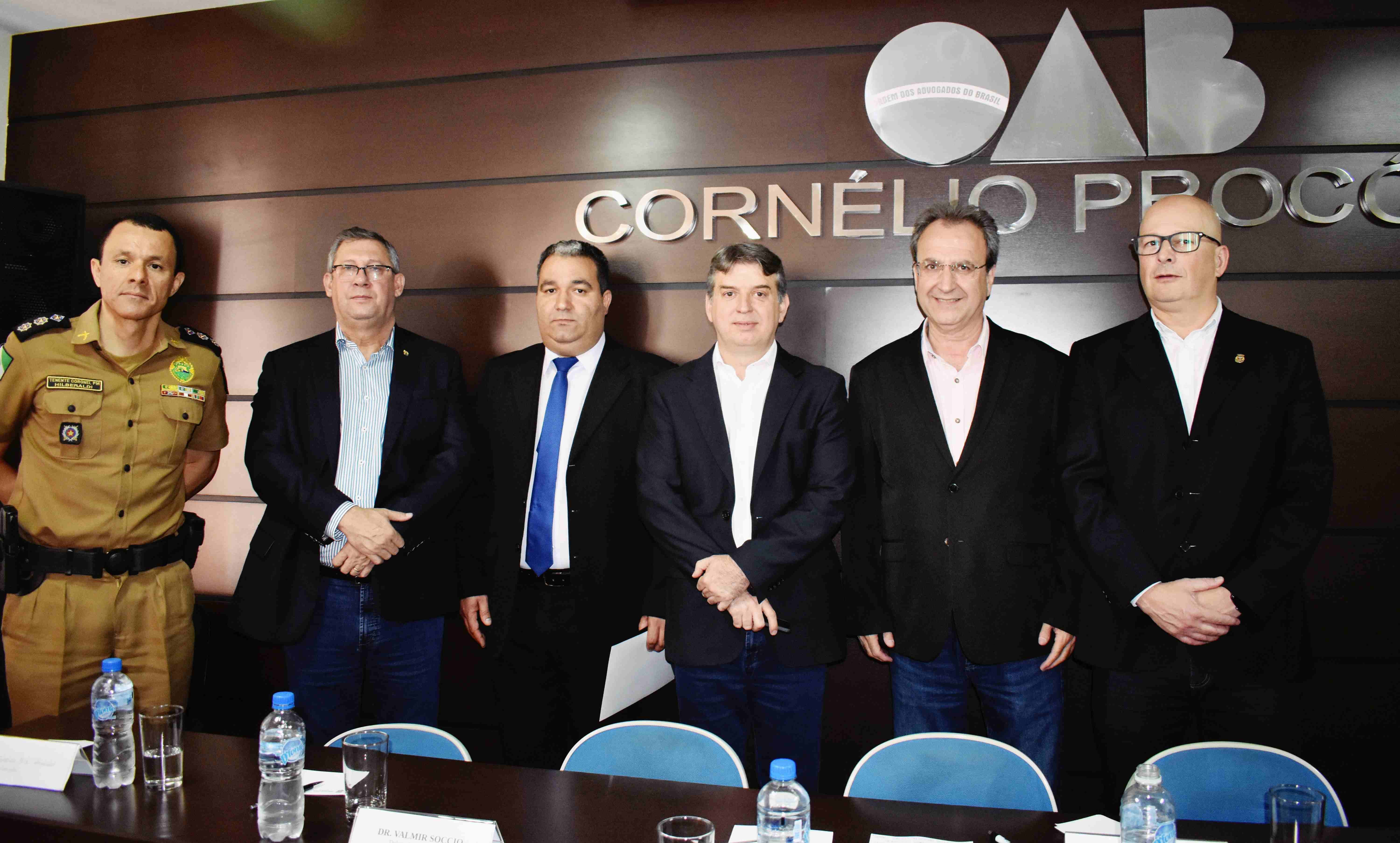Cornélio Procópio – Foi realizada recentemente na sede da OAB/PR de Cornélio Procópio, a solenidade de condecoração honorifica de Serviço Policial. Segundo o Secretário de Segurança do Paraná, Júlio Cezar dos Reis, a concessão de medalhas é um ato do Executivo para os policiais que tenham prestado bons serviços a Policia Civil, à Ordem Pública e à Coletividade Policial. Na 11ª subdivisão de Cornélio Procópio 23 policiais foram condecorados pela Secretaria de Segurança. Escrivães, papiloscopista, investigadores e delegados receberam medalhas de bronze, prata e ouro, sendo 10, 20 e 30 anos, respectivamente, O eventos contou com a presença de varias autoridades, entre elas, o delegado-geral da Polícia Civil, Naylor Robert de Lima, o secretário de Segurança Pública do Paraná, Julio Cezar dos Reis o delegado-titular da Divisão de Polícia do Interior (DPI), Vamir Socchio, do prefeito Amin José Hannouche, da vice-prefeita Angélica Olchaneski de Mello, Promotores de Justiça e Representação Militar. “É emocionante fazer está homenagem aos policiais no ano em que a Polícia Civil completa 165 anos”, falou o delegado-geral Naylor Robert de Lima, durante a cerimônia de entrega. Em nome do delegado-geral Naylor Gustavo quero parabenizar a todos os policiais civis do Estado do Paraná, especialmente da 11ª Subdivisão Policial pelas medalhas que estão recebendo”, disse o secretário de Segurança Pública, Julio Reis. Foram homenageados os delegados João Manuel Garcia Alonso Filho, Michel Eimard rocha de França Araújo e Luciano de Souza Purcino; os escrivãs Wanderley Candido da Silva, Miria Berta de Oliveira Wrosz, Izabel Maria dos Santos, Leonice Alves Santos, Natalino Treisord, Maurício Antonio Pelacini, Marlon Marques de Sá. Os investigadores Nilson Aparecido Lamare, Cecília Aparecida de Cene Bueno, Claudinei Oliveira Barros, Washington Luiz Espinosa, Graziela Bonesso Lagana, Edson Gonçalves Marques, Lucelia Mirian Franco de Campos, José Maurício Rodrigues, João Batista Dias Martins, Rodrigo Zambardino Galloti, Wilson Raimundo Damásio, José Ademir Codonho, Antonio Carlos da Silva e Sidnei Teodoro de Oliveira também foram homenageados junto com a Papiloscopista Denise Franco de Campos. O prefeito Amin Hannouche parabenizou os Policiais Civis que cumpriram suas jornadas de trabalho com méritos. “Todos os homenageados merecem nossa gratidão e nosso respeito. Parabéns pela dedicação e pelo profissionalismo demonstrado ao longo destes anos de serviço”, afirmou o prefeito. (Comunicação/Prefeitura)