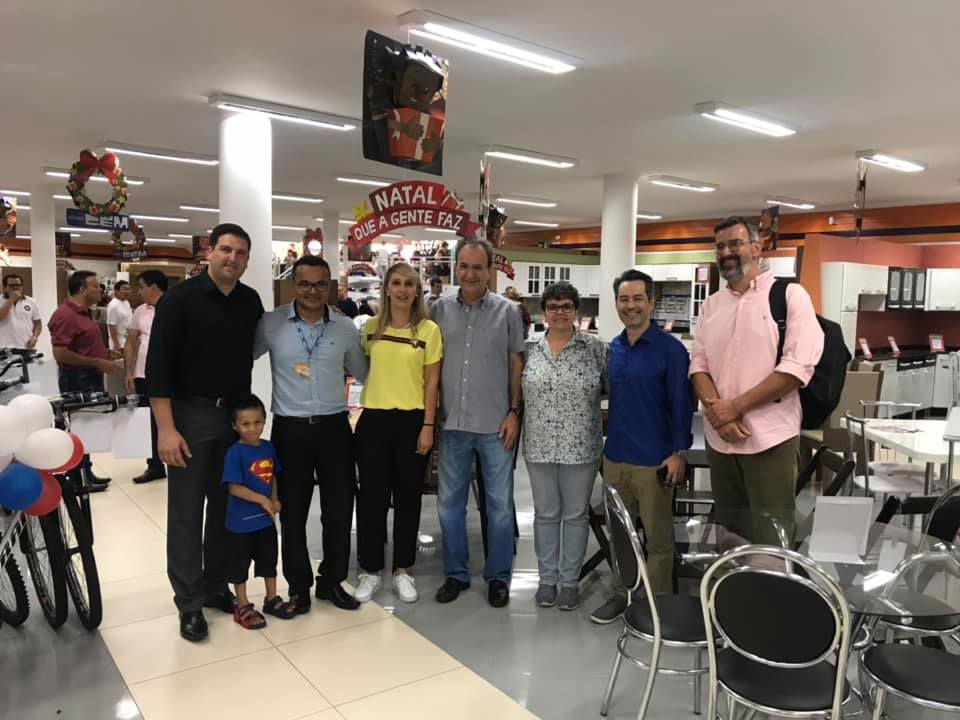 Cornélio Procópio – O prefeito Amin Hannouche e a vice-prefeita Angélica Olchaneski de Mello participaram recentemente da inauguração da Lojas Cem, construída em tempo recorde no centro de Cornélio Procópio. A unidade já está atendendo clientes procopenses e de toda a região. Segundo o prefeito Amin Hannouche, a nova loja vem somar às já existentes no município para oferecer produtos e condições especiais aos seus clientes. “Queremos agradecer a diretoria da Lojas Cem pela confiança em nossa cidade e construir em terreno próprio, esta magnifica unidade”, disse. A vice-prefeita Angélica Olchaneski de Mello também enalteceu o novo empreendimento. “Neste período de festividades de final de ano, a inauguração da Lojas Cem é mais um presente que nossa cidade ganha nestes seus 80 anos de existência. Parabéns a todos que direta ou indiretamente contribuíram para esta conquista”, afirmou Angélica Olchaneski. O diretor comercial da Lojas Cem, Roberto Benito afirmou que a unidade construída no alto da Avenida XV de Novembro, esquina com a Rua Anchieta, deverá gerar cerca de 50 empregos diretos e indiretos. O diretor explicou que a Lojas Cem foi fundada em Salto, na Região Metropolitana de Sorocaba. A rede de varejo de móveis e eletrodomésticos completou 65 anos este ano, entregando várias unidades em várias cidades do país. Benito esclareceu que com a expansão, a empresa gera muitos empregos. "Nas cidades onde a rede se instala apenas o gerente da nova filial é procedente de outra localidade, por ser, necessariamente, um profissional de carreira da empresa. Todos os demais colaboradores são contratados no próprio município", concluiu. (Comunicação/Prefeitura)
