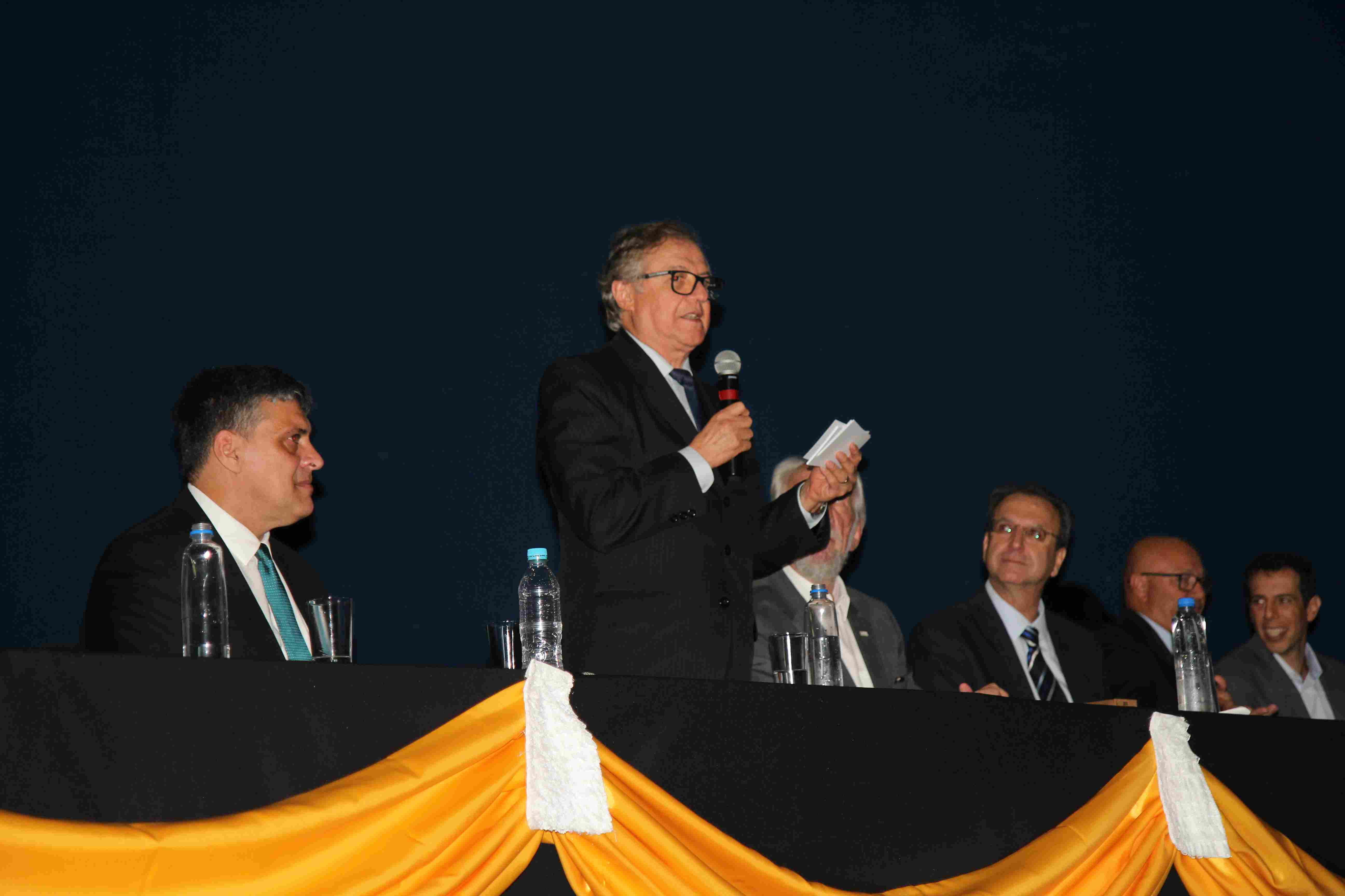 O ministro da Educação Ricardo Vélez Rodríguez destacou que a inauguração de novo bloco da UTFPR - Universidade Tecnológica Federal do Paraná, em Cornélio Procópio marca um novo tempo à instituição. Ele afirmou que estava muito feliz de voltar à região, onde se considera um morador eterno. "É uma satisfação enorme vir aqui. Sou pé-vermelho e mais da metade do meu secretariado também é. Estou voltando para casa. Nosso foco é cuidar dos municípios. Dou muita importância ao ensino tecnológico, que está diretamente ligado à produção", afirmou. Colombiano, naturalizado brasileiro, Ricardo Rodriguez é morador de Londrina, onde começou sua carreira acadêmica no País, como professor do departamento de Filosofia da Universidade Estadual de Londrina, na década de 1980. Atualmente é aposentado da Universidade Federal de Juiz de Fora, em Minas Gerais. "Me naturalizei em 1997, mas jamais me senti um estrangeiro. O Brasil é feito por imigrantes, de todas as raças, todas as cores. Vale à pena ser brasileiro", disse o ministro para a plateia. Com sua experiência nas universidades brasileiras, Vélez Rodriguez afirmou ter aprendido que o principal problema é a gestão. O ministro afirmou que é necessário que os servidores cumpram aquilo que está acordado no contrato de trabalho. "Sou um funcionário público e defendo a categoria, mas precisamos fazer cumprir o que está definido na Constituição e são as reais necessidades públicas", criticou. Entre os presentes, havia três alunos segurando cartazes com críticas ao governo. Sem responder diretamente a eles, o ministro afirmou que é necessário ouvir e ler os protestos dos alunos e compreender o que necessitam. "Acredito na busca do cidadão e por isso, tenho como meta trabalhar com os municípios e entender o que as escolas precisam no plano municipal e estadual", concluiu o Ministro da Educação. O novo prédio construído na UTFPR ocupa uma área de 3.993 metros quadrados e tem cinco pavimentos. O espaço irá abrigar laboratórios e salas de apoio pedagógico e de reuniões, além de espaço para a coordenação. Foram investidos no projeto mais de R$ 8,2 milhões de reais de verbas federais. Serão atendidos cursos de engenharia elétrica, eletrônica e controle e automação. Outros dois edifícios estão planejados para a ampliação da instituição. Concluindo seu mandato parlamentar no próximo dia 31, o deputado Federal Alex Canziani destacou a grande presença do Ensino Profissional através da UTFPR em toda a região. "Há 20 anos, num raio de 70 quilômetros só tínhamos o Cefet. Agora, construímos a maior rede de escolas do estado do Paraná, com a UTFPR, o Instituto Federal do Paraná, o Senac e o campus da UFPR, em Jandaia do Sul", concluiu o deputado federal Alex Canziani (PTB), pai da deputada Federal Luíza Canziani. (Comunicação/Prefeitura)