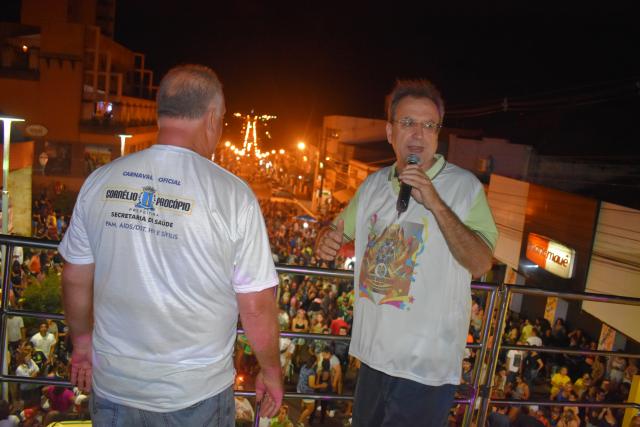 Cornélio Procópio- O clima perfeito, boa música e segurança para os foliões agitou a primeira noite da folia do Carnaval 2019 em Cornélio Procópio. A Avenida XV de Novembro recebeu blocos da cidade (Bloco do Neno – Bloco Pode Vim – Nóis no Samba), e ainda uma grande apresentação com Max Exalta e o Samba Pede Passagem, com participação da dupla, João Paulo e Rafael e da Cantora Nanda Walder. Foram coroados pelo prefeito Amin Hannouche e a vice-prefeita Angélica Olchaneski a Rainha do Carnaval Damarys Paula e o Rei Ezequias Junior. “Estamos muitos satisfeitos com o resultado do primeiro dia, é um presente para os procopenses que merecem um momento de festa e alegria, com boa música e muita segurança”, disse o prefeito Amin Hannouche. Seguindo a programação dos próximos dias, o Trio Elétrico Canibal com a presença da cantora Michele Reich e do cantor Ed. Sacramento deverá agitar ainda mais os foliões durante o Carnaval 2019. (Comunicação/Prefeitura)