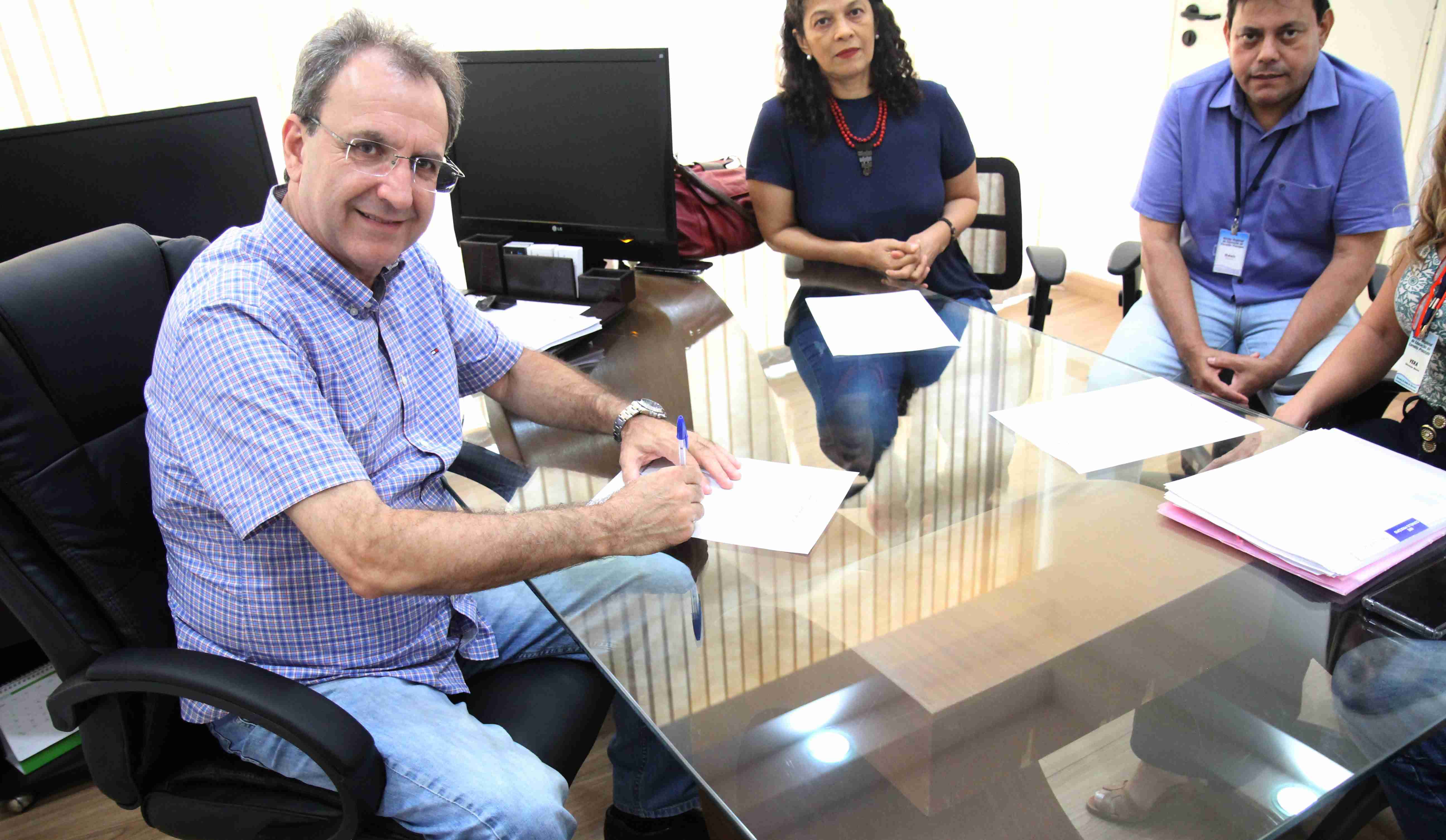 Cornélio Procópio- O prefeito Amin Hannouche reuniu-se com a chefe do Núcleo de Educação professora Ana Paula, a coordenadora dos jogos professora Vera Lúcia Figueiredo, o professor Odair Bonifácio assistente técnico do núcleo e o presidente da Fundação de Esportes do Munícipio, Carlos Bonfim. Foi assinado o Termo de Compromisso para a realização dos Jogos Escolares do Paraná. O evento acontecerá no mês de Setembro, e contará com a participação dos alunos das instituições de Ensino Estaduais, Municipais, Particulares e Especializadas dos munícipios jurisdicionais ao Núcleo Regional de Educação, onde serão 800 atletas competindo em diversas modalidades. A chefe do Núcleo professora Ana Paula, destaca que um dos objetivos principais dos Jogos é estimular a participação dos alunos em várias modalidade. “Oferecer aos alunos a aquisição de experiências que venham enriquecer seus conhecimentos, aprendendo valores como, dedicação, esforço e determinação”, destacou a professora. O prefeito Amin Hannouche informou que o munícipio irá proporcionar todo o atendimento para que o evento seja realizado com sucesso. “Além da revelação de talentos para o esporte brasileiro, o objetivo dos Jogos Escolares é contribuir para a inserção social e o fortalecimento de todos os jovens participantes, criando oportunidades para os alunos conhecerem novas cidades e culturas”, completou o prefeito Amin. (Comunicação/Prefeitura)