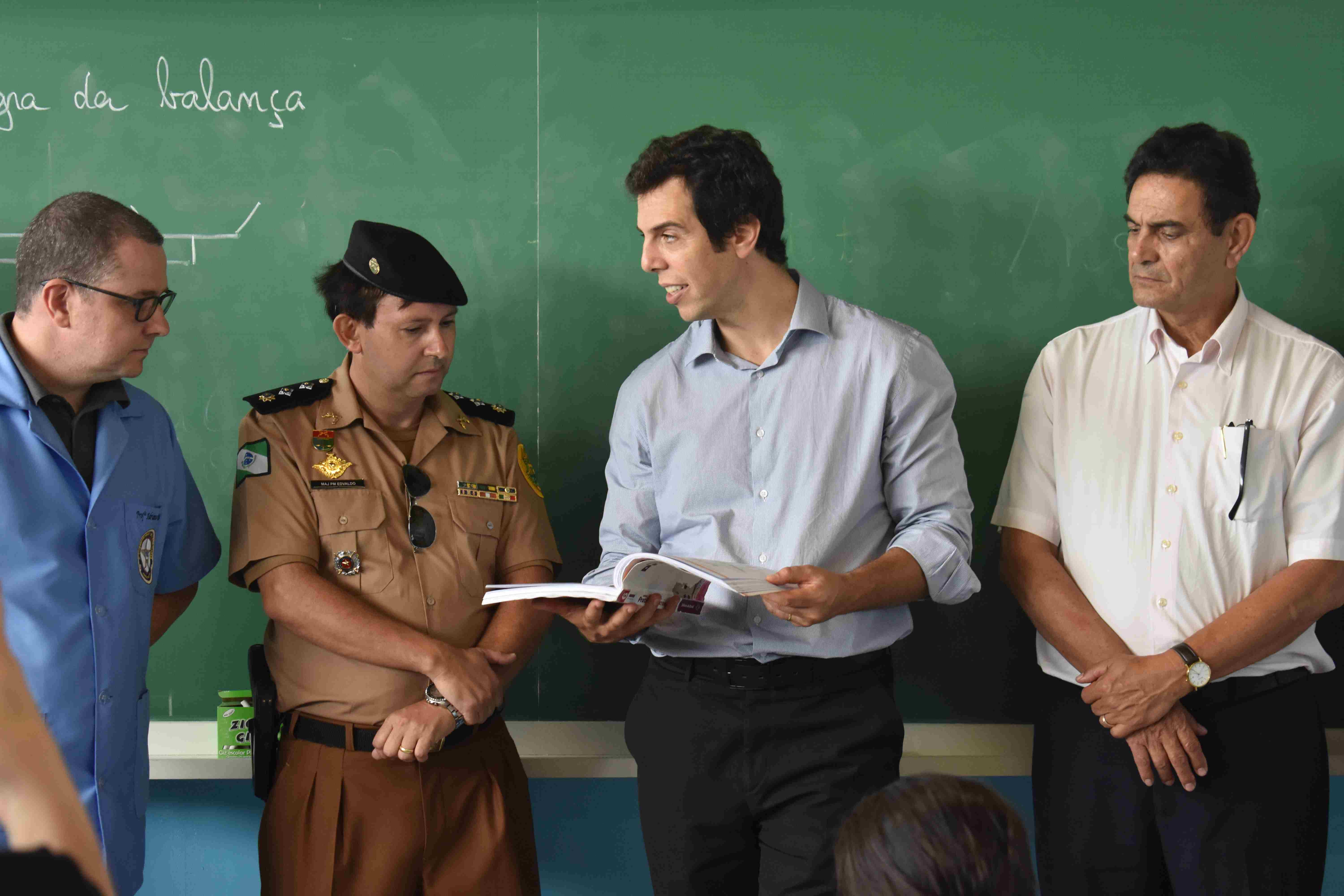 Cornélio Procópio- O prefeito Amin Hannouche recebeu na tarde desta quinta-feira (14), o secretário estadual de Educação, Renato Feder. O encontro foi realizado com visitas no Colégio Estadual Monteiro Lobato e 3º Colégio da Polícia Militar do Paraná. A visita teve como foco o conhecimento da estrutura da rede estadual e municipal de ensino e a metodologia utilizada nas escolas. O secretário Renato Feder, destacou o dever em auxiliar as escolas em organizar a forma de ensino e aprendizagem, buscando formas de alcançar a valorização da rede de ensino para professores e alunos. “Vamos simplificar os processos, para que os diretores, professores e pedagogos possam se dedicar à missão de ensinar, melhorando cada vez mais a aprendizagem dos nossos alunos”, destacou Feder. Na oportunidade, o prefeito Amin destacou as melhorias que foram implantadas na área da Educação nos últimos meses, e reafirmou o seu compromisso em suprir os desafios e as demandas postas pela pasta. Participaram do encontro a chefe do Núcleo Regional de Educação, Ana Paula Tavella, a secretária municipal de Educação, Maria Lídia Funari Pimenta, o deputado estadual Luiz Claudio Romanelli, e o presidente da Câmara Municipal de Vereadores, Edmar Gomes Filho e demais autoridades. (Comunicação/Prefeitura)