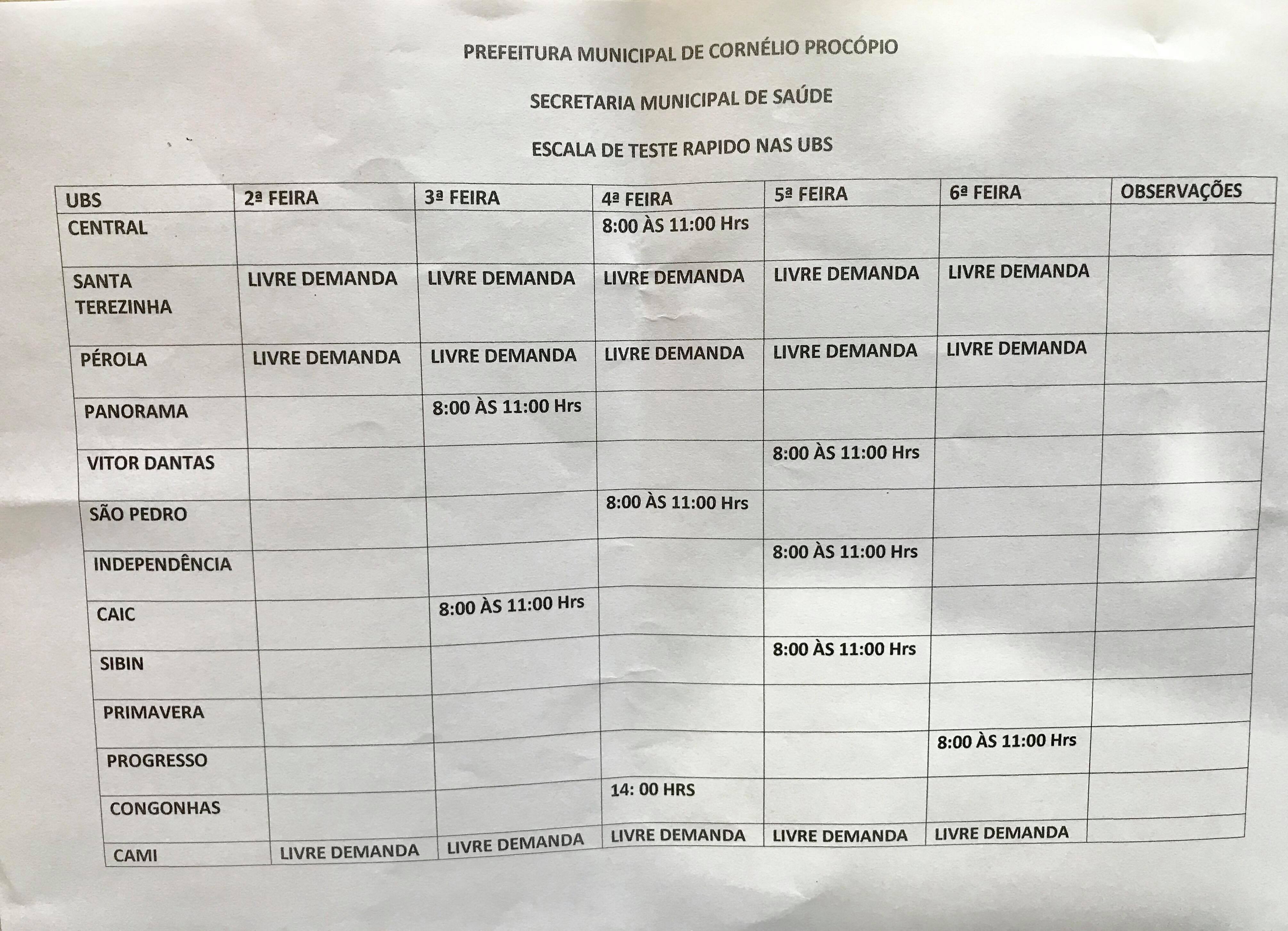 Secretaria Municipal de Saúde preparou escala de teste rápido nas UBS do município