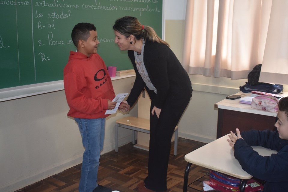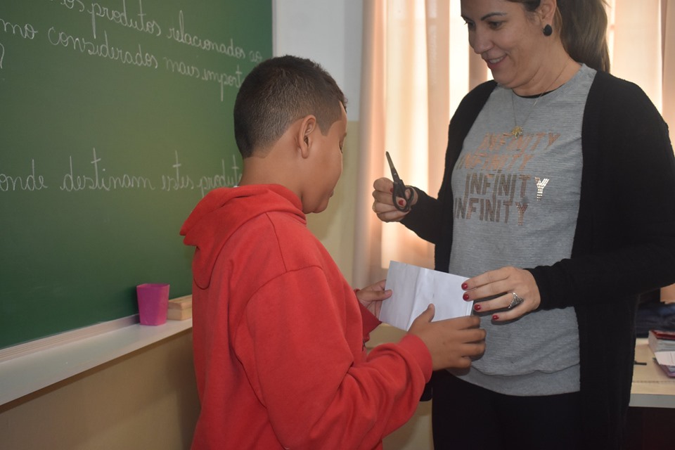 A qualidade do ensino municipal sempre foi de excelência em nossa cidade. Mas destacam-se alguns projetos que merecem a atenção da comunidade, pela inovação e criatividade. Alguns dias atrás a vice-prefeita Angélica Olchaneski esteve na escola para responder pessoalmente a cartinha que recebeu. Agora foi a vez do aluno Lucas Henrique Cintro do 5º ano que recebeu a resposta da carta que enviou para o Presidente da República Jair Messias Bolsonaro. Esta foi a primeira resposta de carta enviada para endereços fora de Cornélio Procópio. As crianças ficaram eufóricas e muito felizes com o retorno que estão recebendo, disse a professora Juliana Simabucuro que é a idealizadora do projeto. A diretora Drenice Raquel Dynczuki relatou que projetos como este valorizam a vida escolar, pois levam as crianças para uma vivência harmoniosa e solidária. Os resultados são visíveis, já que toda a comunidade cuida da escola. O aluno Lucas ficou muito emocionado e disse que escreveu coisas simples na cartinha endereçada ao presidente. O aluno contou que seu avô foi bombeiro e que admirava o trabalho de Bolsonaro. Outras crianças estão na expectativa das suas respostas. Vamos torcer para que elas cheguem logo. (Comunicação/Prefeitura)