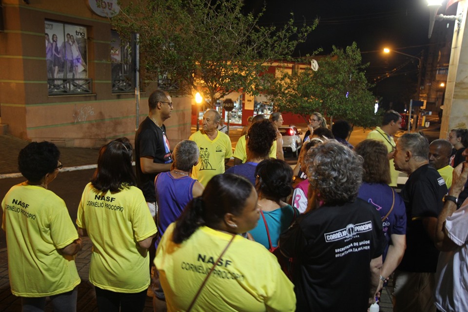 A prefeitura de Cornélio Procópio, através da secretaria de Saúde e Nasf, realizou nesta terça-feira, 01, a 1ª Caminhada Noturna Outubro Rosa. A caminhada teve percurso de 5 quilômetros, com concentração no coreto do calçadão, centro da cidade. De acordo com a secretária municipal de saúde, Angélica Olchaneski, a caminhada foi organizada em alusão à Campanha do Outubro Rosa, com o objetivo de auxiliar na conscientização para cuidados com a saúde da mulher.
