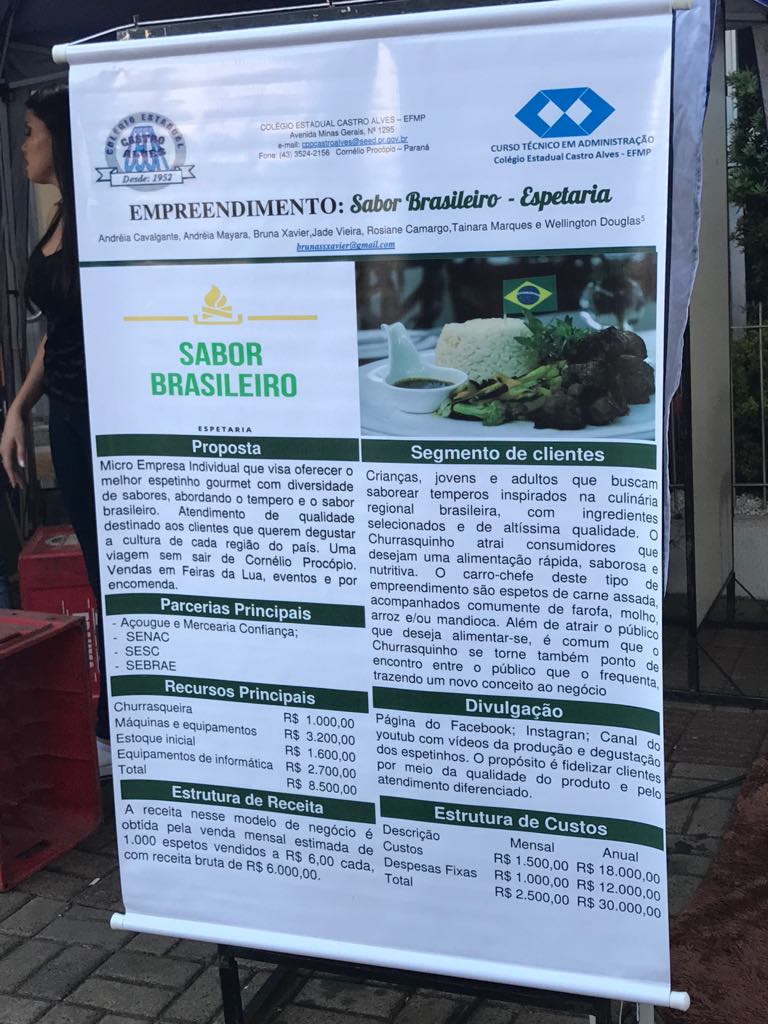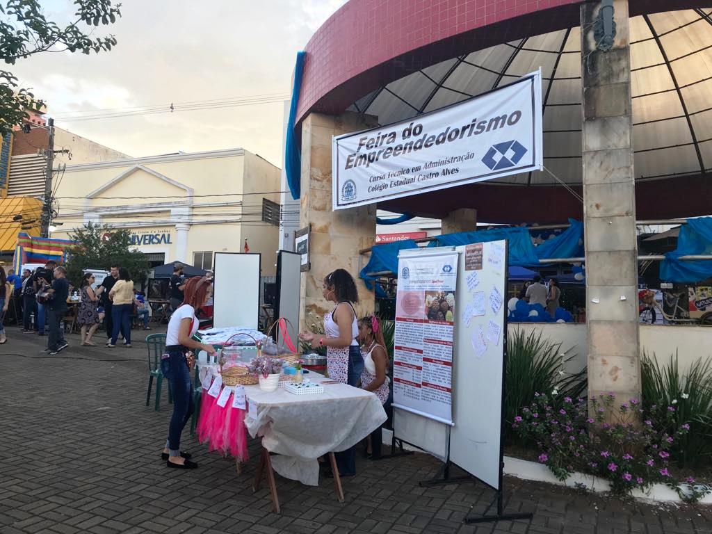Cornélio Procópio- Com o objetivo de estimular o espírito empreendedor nos estudantes, o Colégio Estadual Castro Alves, realizou nesta sexta-feira (11) a terceira edição da Feira de Empreendedorismo no Calçadão de Cornélio Procópio. Durante o evento os alunos comercializaram produtos confeccionados por eles próprios, divulgando a proposta, parcerias, recursos, estrutura de custos, segmento de clientes, relacionamento com clientes e divulgação. Estudantes da Universidade Tecnológica Federal do Paraná, Campus Cornélio, também marcaram presença e expuseram seus projetos para o público que prestigiou a feira. De acordo com a Coordenadora do curso técnico em Administração, Maria Aldinete de Almeida Reinaldi, a feira trouxe resultados positivos para os participantes. Entre os diferenciais do evento de 2019 foi a praça de alimentação onde os próprios alunos estiveram produzindo e vendendo os produtos.
