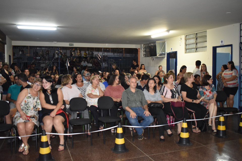 Cornélio Procópio – Alunos da Escola Municipal Vitorino Gomes Henriques, no Jardim Panorama, foram homenageados recentemente pela participação nos programas Olimpíadas Brasileiras de Astronomia (OBA) e Escrita e Leitura. Além das medalhas, eles participaram de uma Noite de Autógrafos nos livros que foram produzidos com redações feitas sobre o Meio Ambiente. Segundo a diretora da Escola, professora Renata Bottarelli, os programas permitem aos alunos, conhecer profundamente assuntos ligados à Astronomia e a Preservação da Natureza, através de leitura e redações. Dezenas de famílias lotaram o saguão da escola para acompanhar a premiação e a noite de autógrafos. A diretora explicou que a Olimpíada Brasileira de Astronomia é promovida pela UERJ, a Universidade Estadual do Rio de Janeiro e tem como objetivo despertar o interesse dos jovens pelas ciências espaciais. De acordo com diretora, esta foi a 17ª vez que a Escola Municipal Vitorino Gomes Henrique participa do projeto através dos estudantes dos ensinos fundamental e médio de escolas públicas e particulares. “Em todos esses anos de participação, nossa escola tem sido premiada com medalhas de bronze, prata e ouro. Mas, neste ano, nos surpreendemos com as notas e o empenho dos alunos com o conteúdo, somando 25 medalhistas”, disse a diretora, agradecendo o empenho e a dedicação de todas as professoras e colaboradores da Escola. Outro momento de muita emoção, foi a “Noite de Autógrafos” que premiou os estudantes da Educação Infantil e do Ensino Fundamental. Renata Bottarelli afirmou que durante todo o ano os alunos trabalharam com seus professores neste projeto que visa estimular a escrita e a leitura na sala de aula. O tema deste ano foi o “Meio Ambiente”, com destaque para a sua preservação e à reciclagem. Participaram da cerimonia, a Secretária Municipal de Educação, professora, Maria Lídia Funari Pimenta, que na oportunidade representou o prefeito Amim Hannouche; a Professora Maria das Graças, representando o Núcleo Regional de Educação; a professora Cláudia Mara Chueiri, da Academia de Letras, Artes e Cultura; a Presidente da APM, Gislaine Cristina Tiossi Cavalcante, professores, imprensa, familiares dos alunos e convidados.