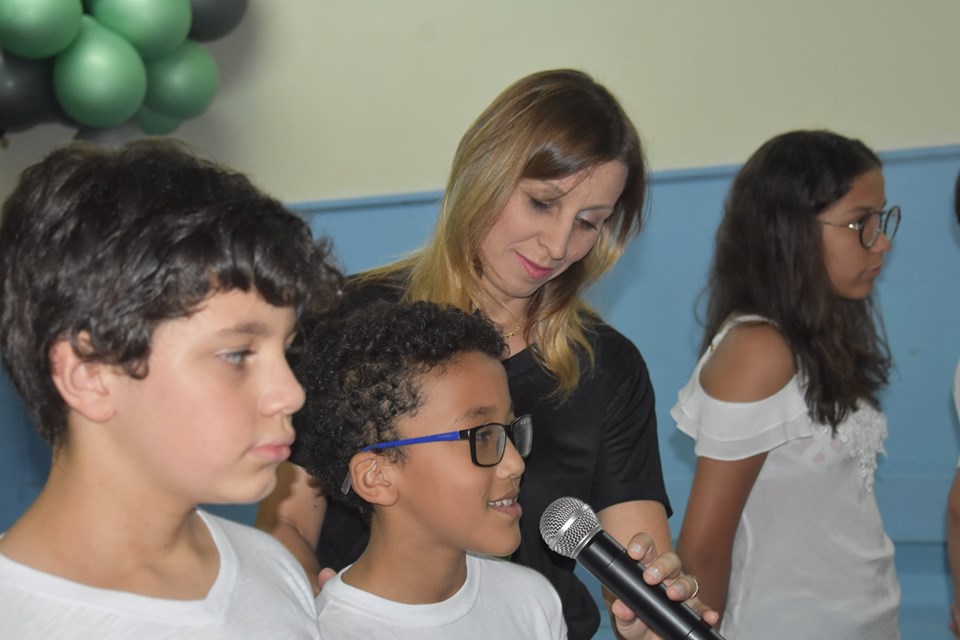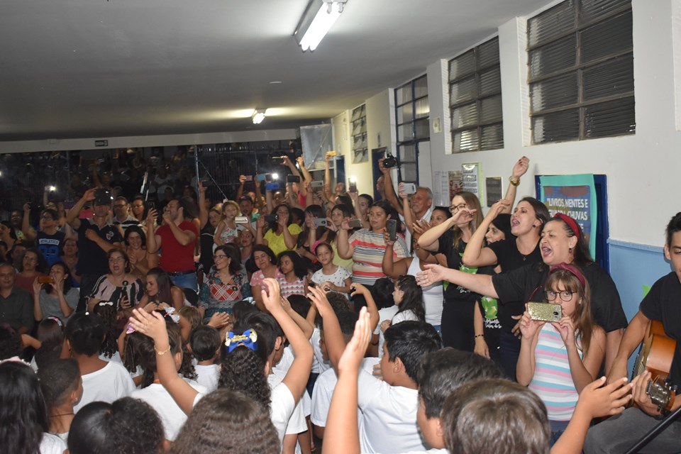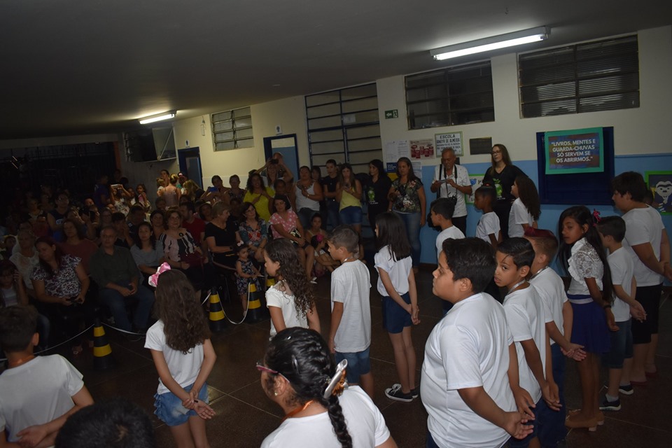 Francisco Alves da Silva Prado, Rhayana Galdino Ferraz, João Guilherme Banaki, Isabelly Severino Nori, Isaac Gabriel de Carvalho Silva, Marcos Aparecido Zamproni de Souza, Vitor Hugo Campanucci Paleta Aníbal e José Henrique Ribeiro Pereira. Alunos da professora Adriana do 5º ano, que fizeram um relato de como funciona o projeto leitura: Maria Vitória Camargo da Silva, João Vitor Ribeiro Pereira, Luis Felipe do Prado Gonçalves, Marcelo Augusto Rassa Clemente e Maria Gabriely Pedroso das Neves. Ainda durante a cerimonia, o aluno Leonardo Clemente da Silva fez a leitura de sua redação que foi premiada no concurso Campo Limpo, do governo do Estado. A Professora Simone Leandra Pereira Ananias e seus alunos apresentaram um vídeo de algumas atividades desenvolvidas para confecção do livrinho. Em seguida, acompanhados pela professora Évina Pereira Trindade, os alunos Nicoly Emanuely Cirino Apolinário, Maria Vitória Santos Bini, Bianca Vitória de Souza Lemos, Isadora de Souza Ramos, Ingrid Clemente da Silva, Pietra Tamburussi dos Santos, Ana Clara da Silva Faria, Vinícius Antônio Balan da Incarnação e Walacy Ribeiro dos Santos Silva declamaram uma poesia. A solenidade foi encerrada com a apresentação de músicas pelos alunos e a distribuição dos livros autografados a todos os pais. (Comunicação/Prefeitura)