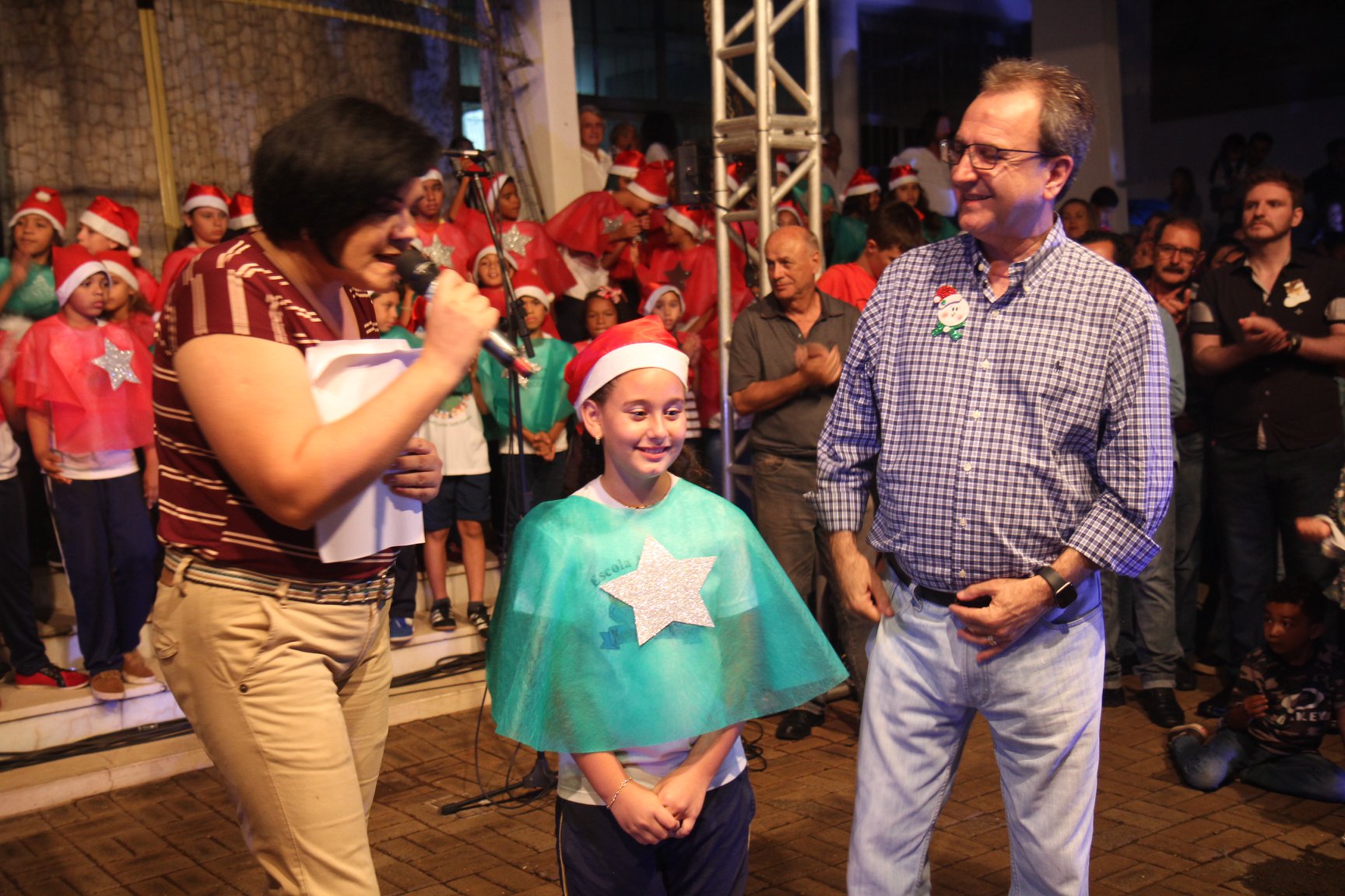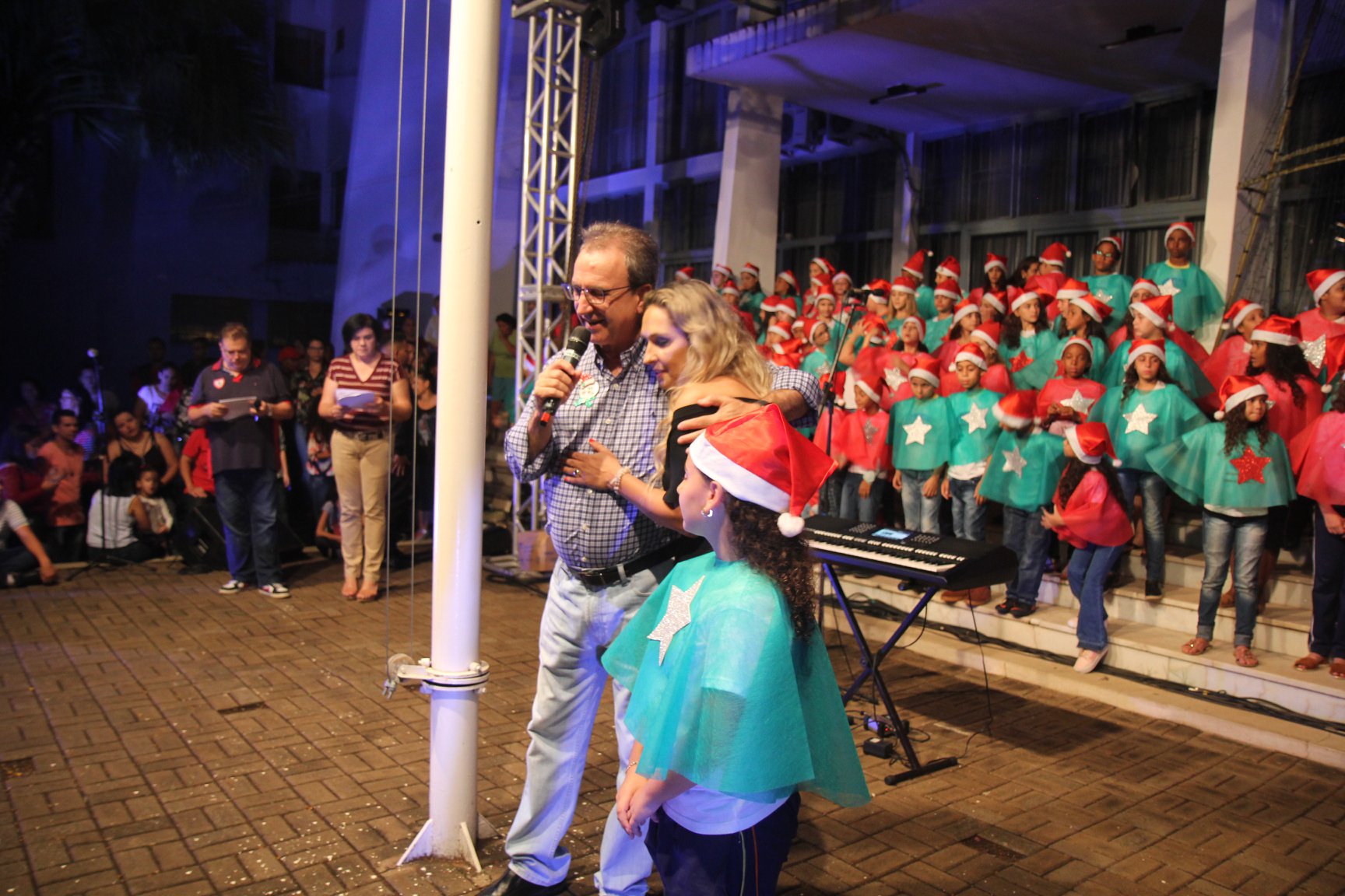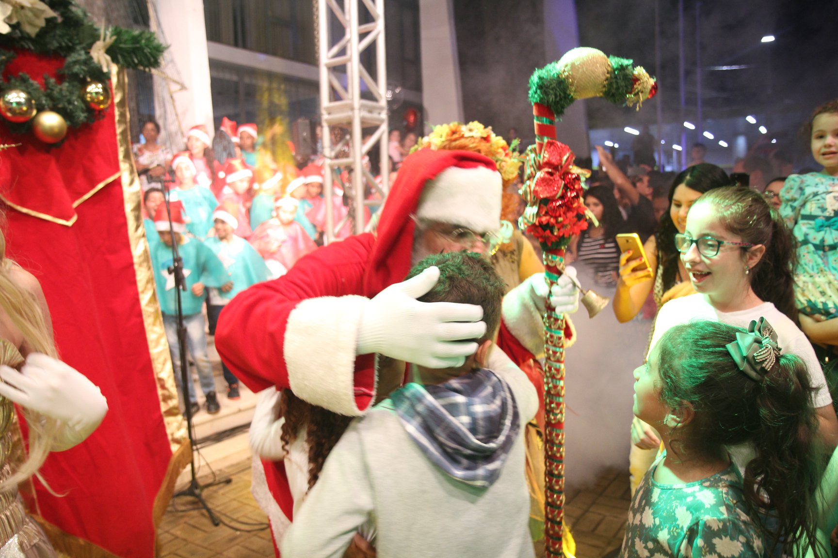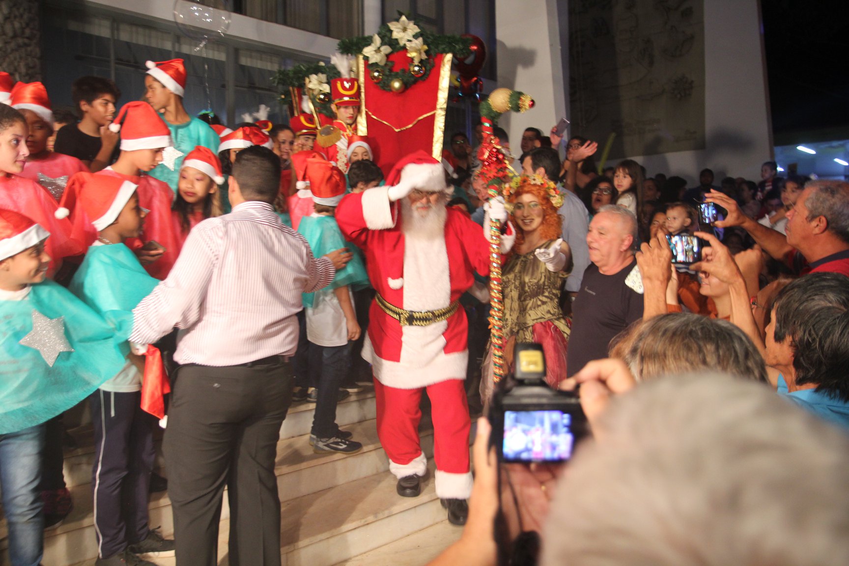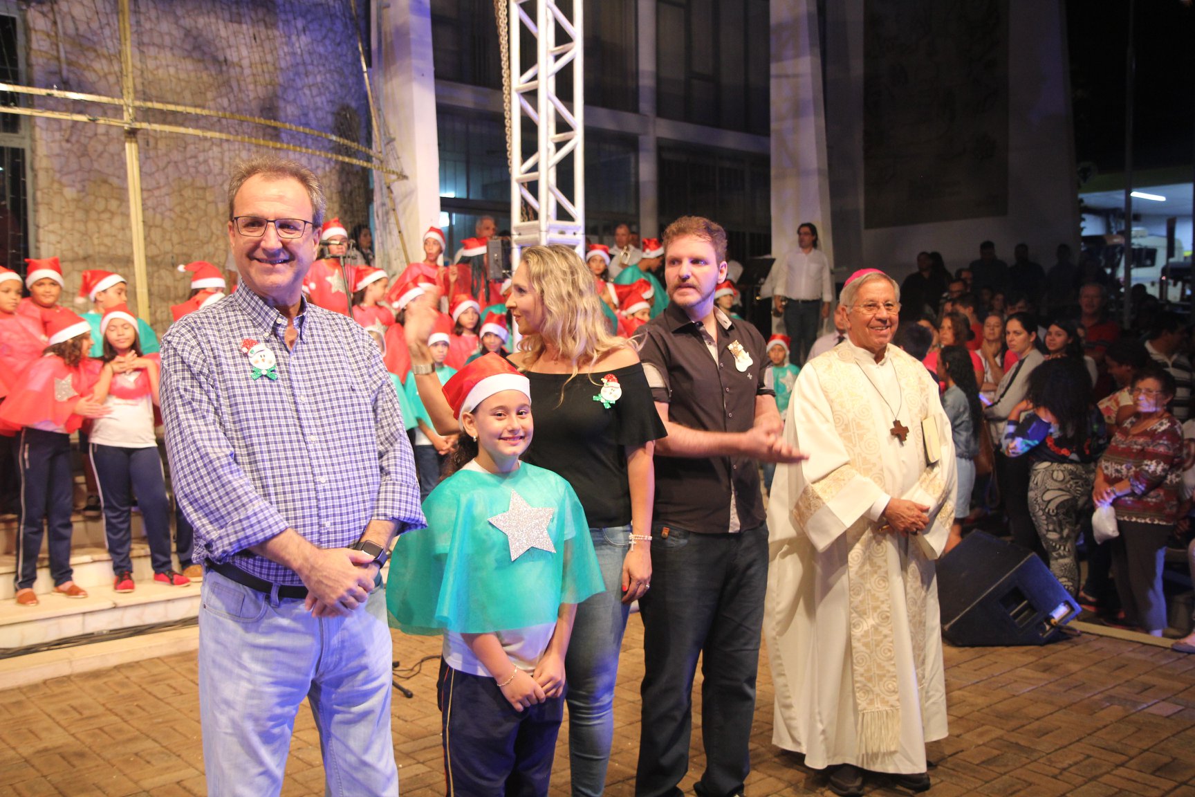 A participação muito aguardada pela população foi a apresentação do Coral formado pelos alunos das Escolas Municipais em tempo integral: Drº Acyr Ivo Carazzai; prof.ª Alice Correia Diniz; Prof. Ângelo Mazzarotto; Prof. Aníbal Campi; Prof. Atila Silveira Brasil; Vereador Damasco Adão Sotille; Prof.ª Eunice Gatti Gomes; Padre Antônio Lock; Noêmia Oliveira Bruno e Vitorino Gomes Henrique, regido pelo maestro Renato Navarro e sua equipe. O evento foi abençoado pelo Bispo Diocesano Dom Manuel Francisco, com a leitura do nascimento do menino Jesus, destacando o verdadeiro sentido do Natal. Foram várias cantigas de Natal que embalaram a todos tirando aplausos dos presentes. O ponto máximo da noite foi à chegada do Papai Noel com seus duendes, princesas e soldadinhos de chumbo. O prefeito Amin Hannouche, e a vice-prefeita Angélica Olchaneski, fizeram a entrega da chave para o Papai Noel e destacaram a alegria que sentiam neste momento em que o espírito natalino contagiava todos os corações. Estiveram presentes, o Presidente da Associação Comercial e Empresarial de nossa cidade, Fabiano Inoue, os Secretários municipais, Feira da Lua, Câmara de Vereadores representados pelos vereadores Dione Carlos, Sebastião Lucri e Luiz Carlos Amâncio, Rafael Hannouche e especialmente todas as famílias procopenses que deixaram suas casas e vieram com seus filhos para essa linda apresentação. Ainda nesta oportunidade foi apresentada a população a Unidade móvel Veterinária que logo mais estará atendendo os cães e gatos da cidade para a castração e cuidados básicos, em breve a cidade terá seu primeiro Centro de Recuperação de Cães e Gatos.