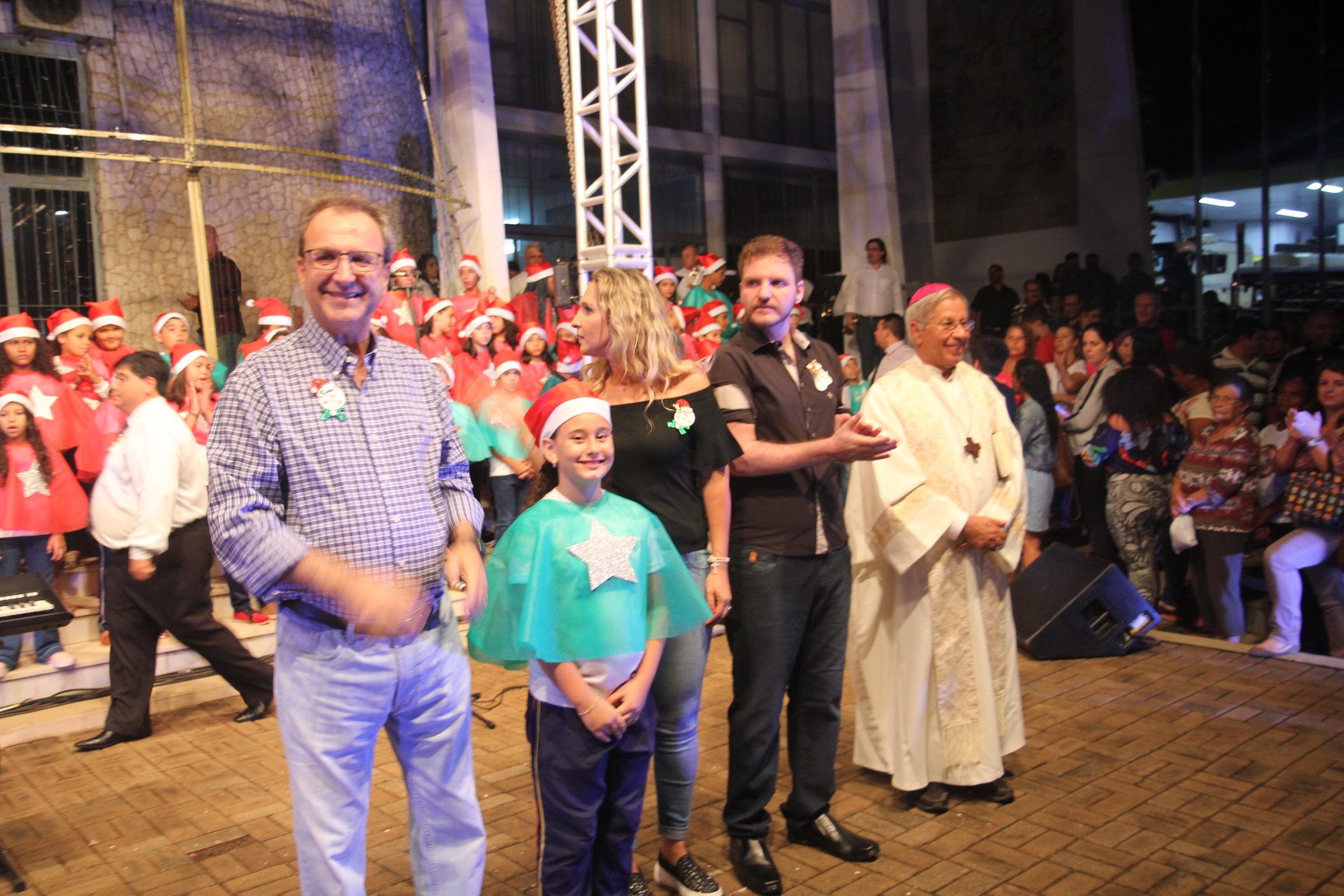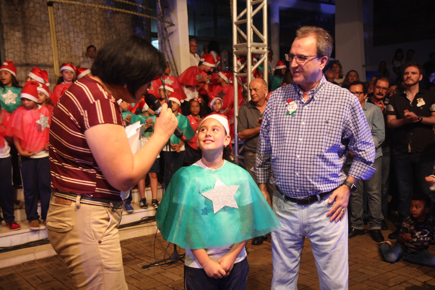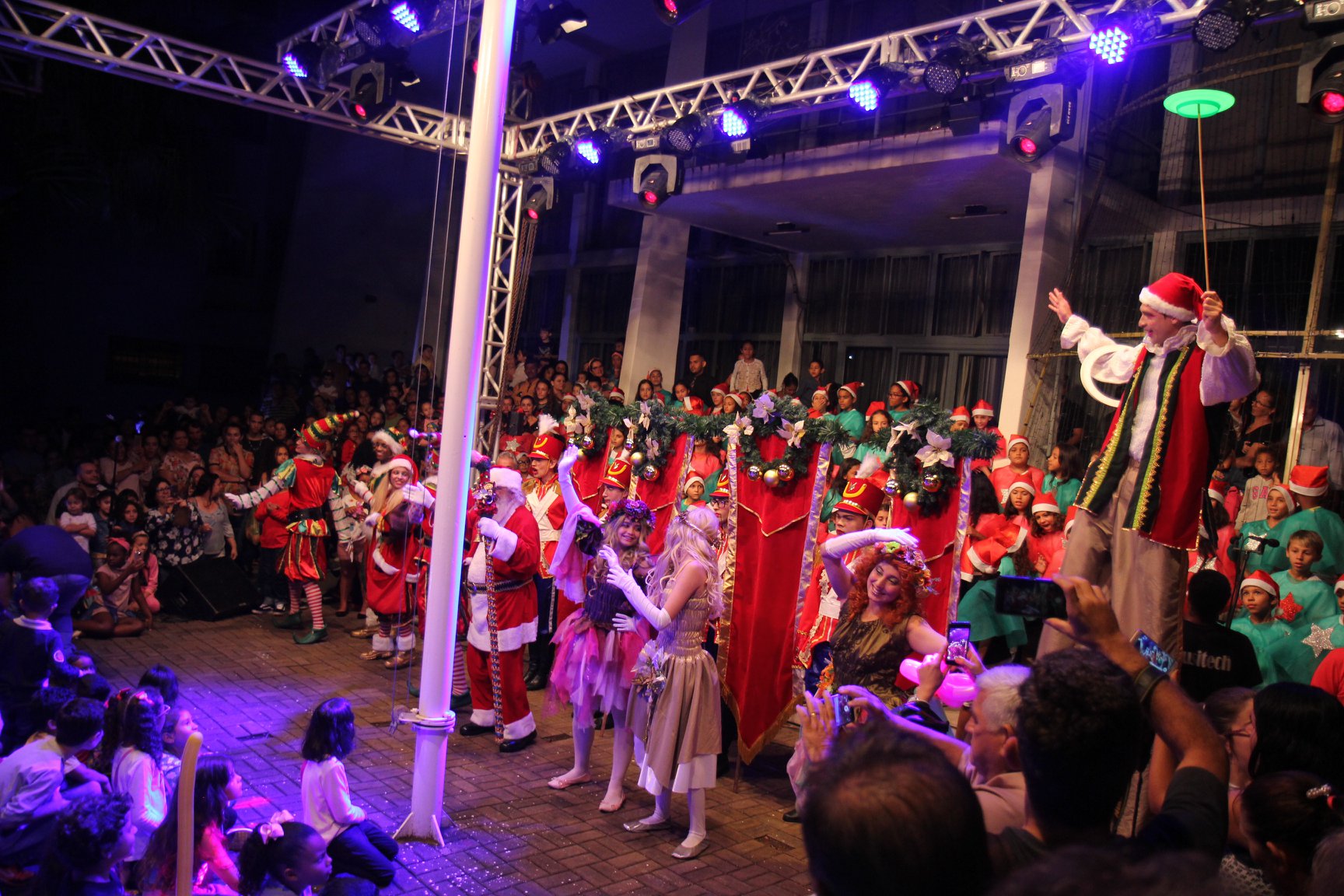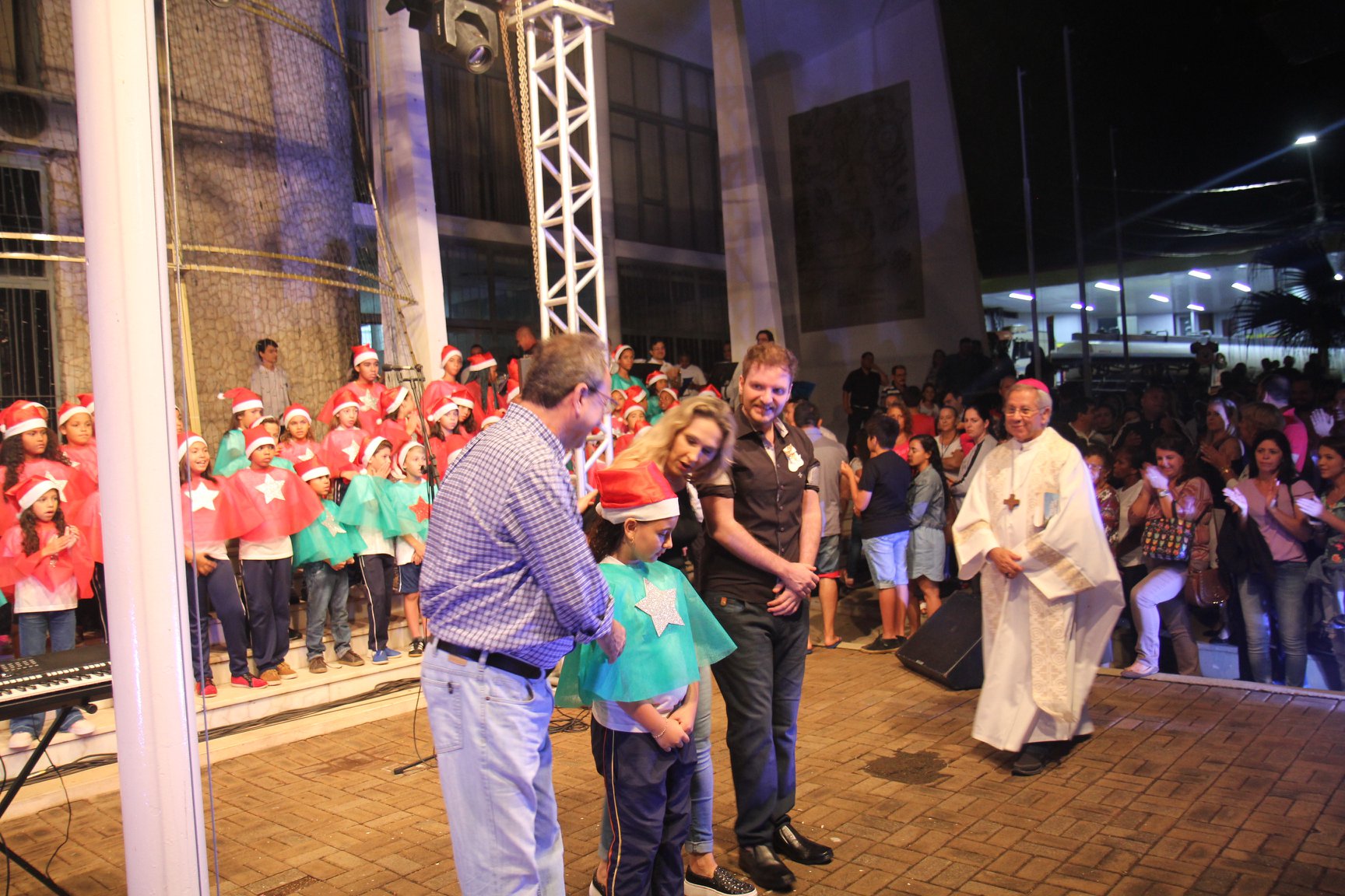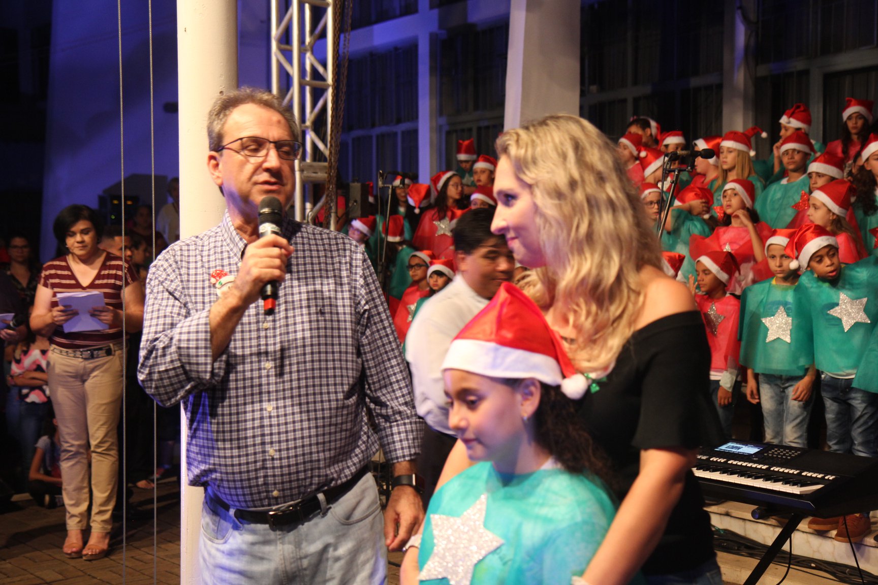 A participação muito aguardada pela população foi a apresentação do Coral formado pelos alunos das Escolas Municipais em tempo integral: Drº Acyr Ivo Carazzai; prof.ª Alice Correia Diniz; Prof. Ângelo Mazzarotto; Prof. Aníbal Campi; Prof. Atila Silveira Brasil; Vereador Damasco Adão Sotille; Prof.ª Eunice Gatti Gomes; Padre Antônio Lock; Noêmia Oliveira Bruno e Vitorino Gomes Henrique, regido pelo maestro Renato Navarro e sua equipe. O evento foi abençoado pelo Bispo Diocesano Dom Manuel Francisco, com a leitura do nascimento do menino Jesus, destacando o verdadeiro sentido do Natal. Foram várias cantigas de Natal que embalaram a todos tirando aplausos dos presentes. O ponto máximo da noite foi à chegada do Papai Noel com seus duendes, princesas e soldadinhos de chumbo. O prefeito Amin Hannouche, e a vice-prefeita Angélica Olchaneski, fizeram a entrega da chave para o Papai Noel e destacaram a alegria que sentiam neste momento em que o espírito natalino contagiava todos os corações. Estiveram presentes, o Presidente da Associação Comercial e Empresarial de nossa cidade, Fabiano Inoue, os Secretários municipais, Feira da Lua, Câmara de Vereadores representados pelos vereadores Dione Carlos, Sebastião Lucri e Luiz Carlos Amâncio, Rafael Hannouche e especialmente todas as famílias procopenses que deixaram suas casas e vieram com seus filhos para essa linda apresentação. Ainda nesta oportunidade foi apresentada a população a Unidade móvel Veterinária que logo mais estará atendendo os cães e gatos da cidade para a castração e cuidados básicos, em breve a cidade terá seu primeiro Centro de Recuperação de Cães e Gatos.