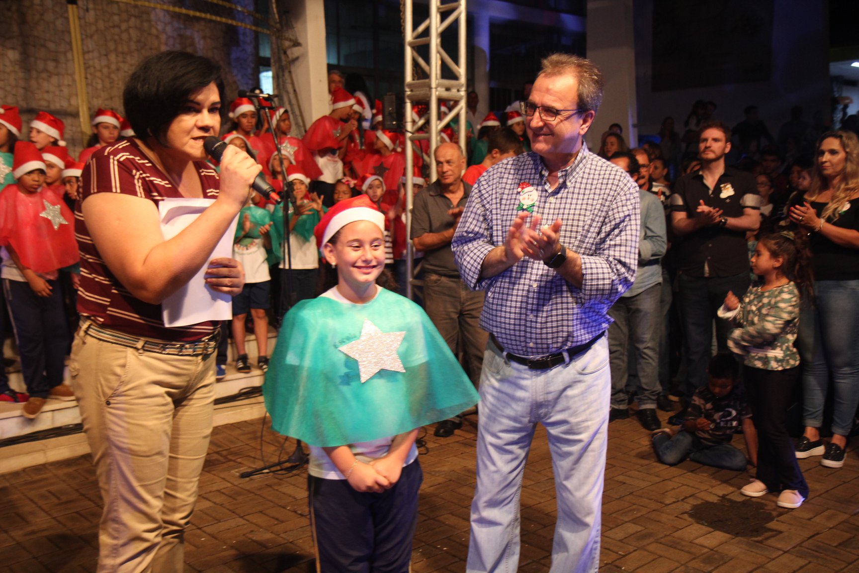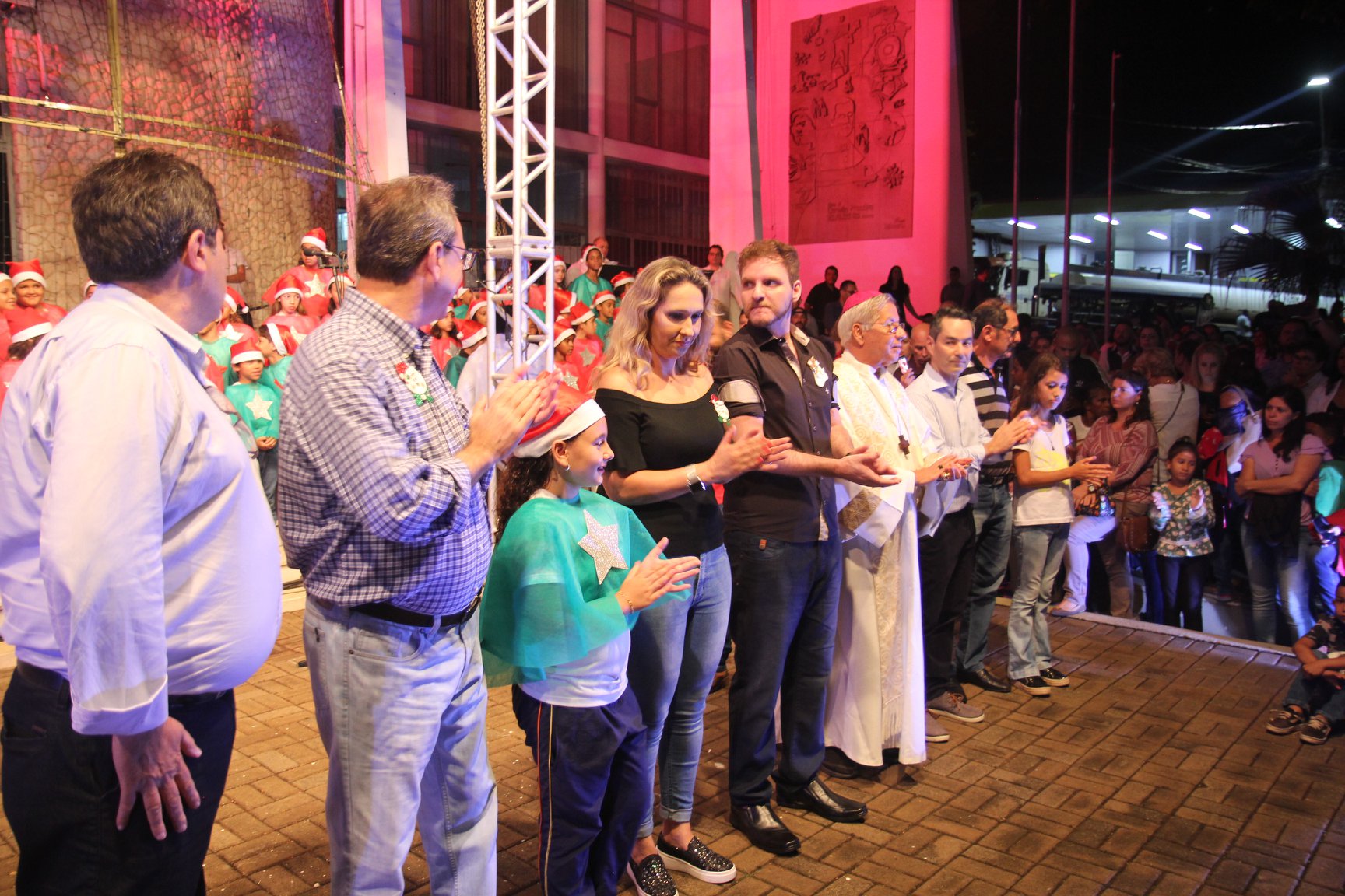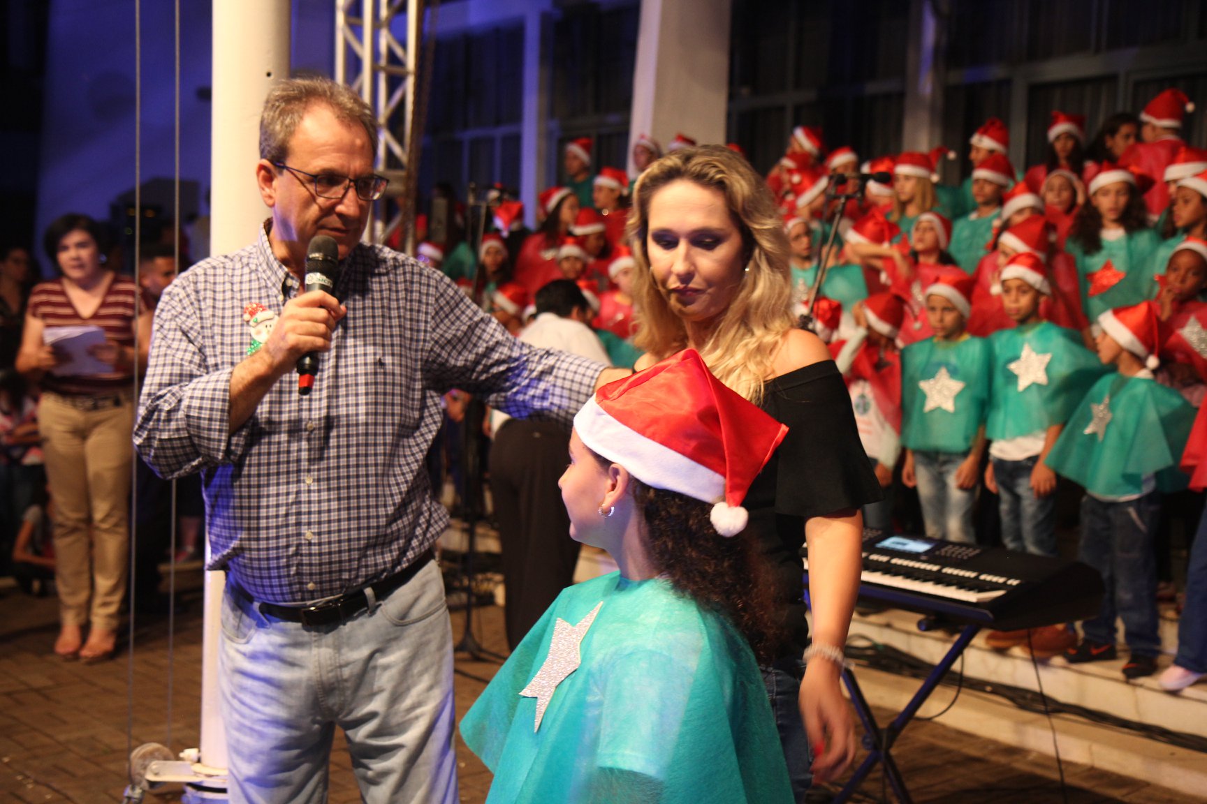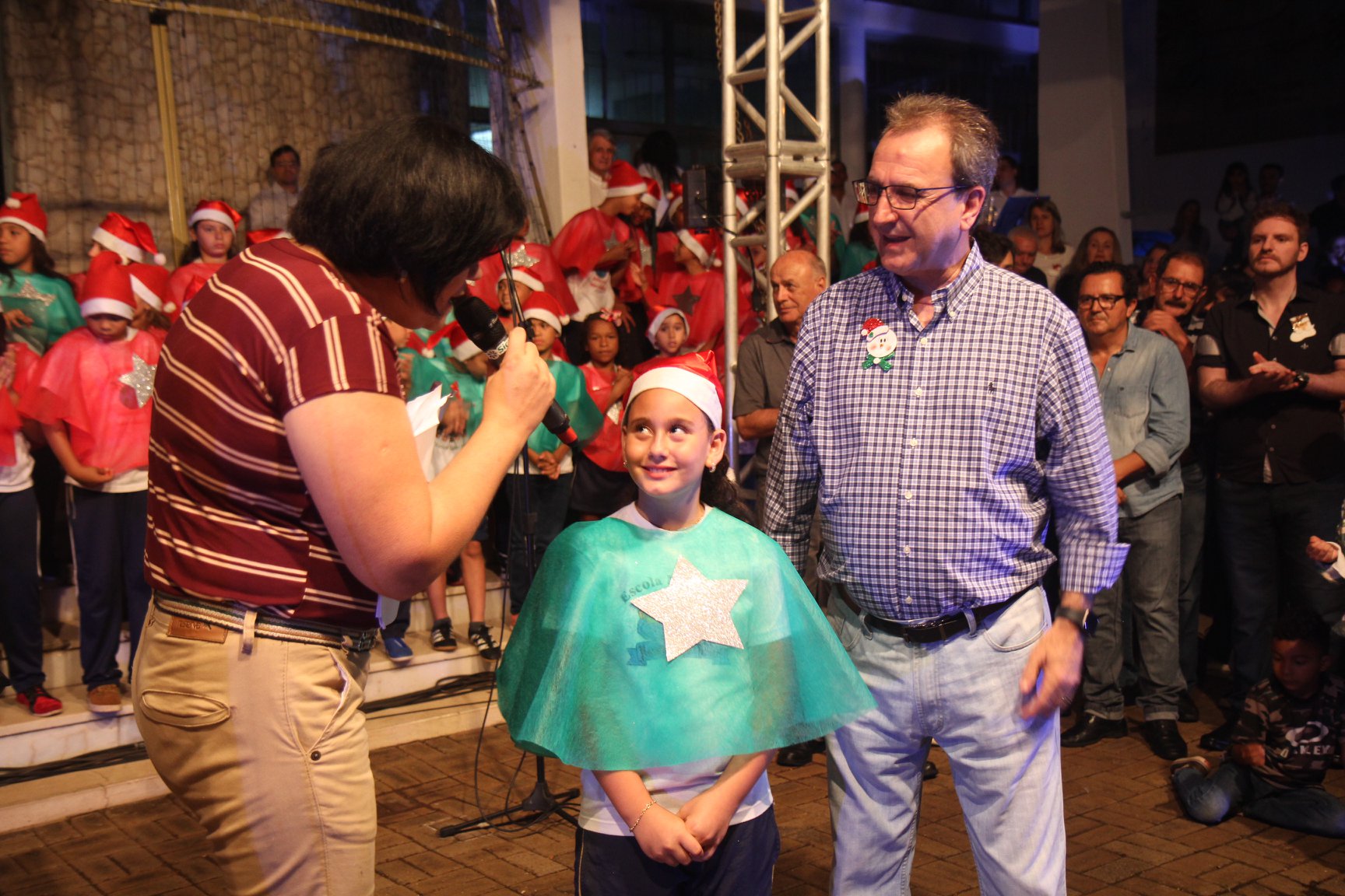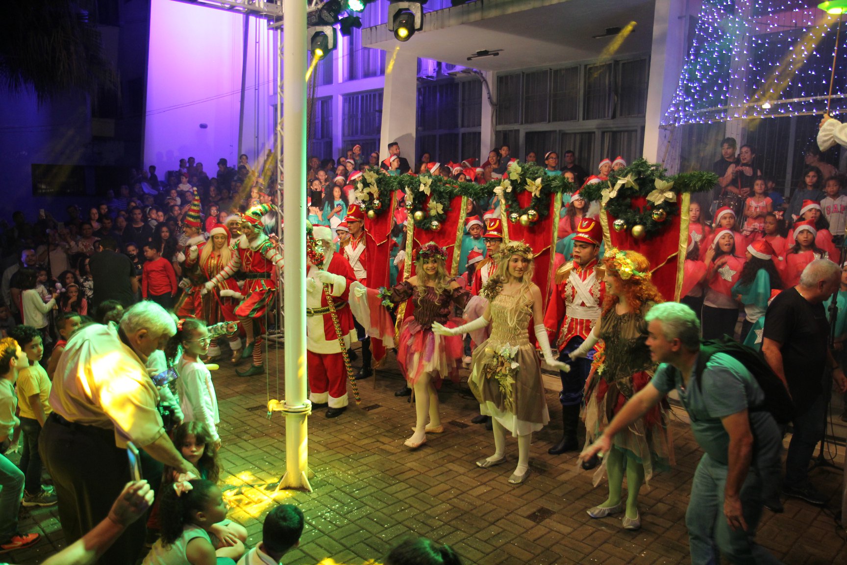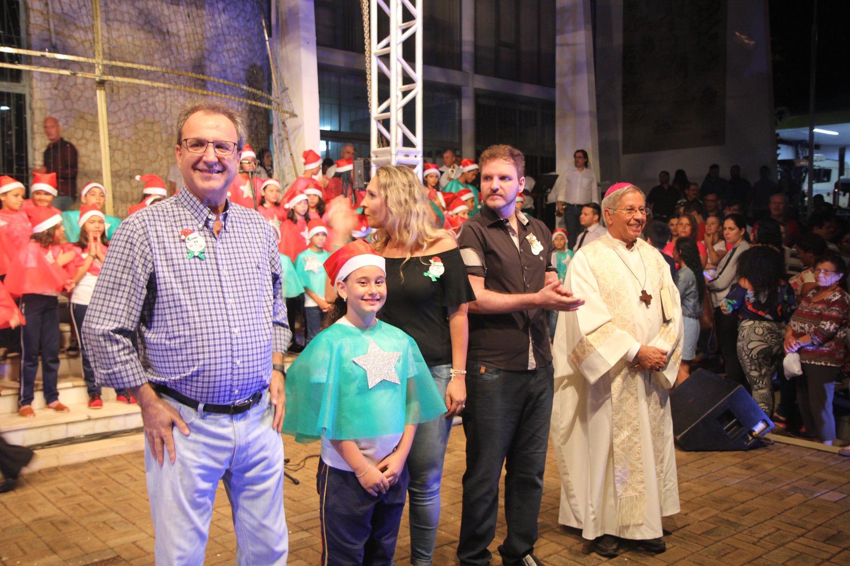 A participação muito aguardada pela população foi a apresentação do Coral formado pelos alunos das Escolas Municipais em tempo integral: Drº Acyr Ivo Carazzai; prof.ª Alice Correia Diniz; Prof. Ângelo Mazzarotto; Prof. Aníbal Campi; Prof. Atila Silveira Brasil; Vereador Damasco Adão Sotille; Prof.ª Eunice Gatti Gomes; Padre Antônio Lock; Noêmia Oliveira Bruno e Vitorino Gomes Henrique, regido pelo maestro Renato Navarro e sua equipe. O evento foi abençoado pelo Bispo Diocesano Dom Manuel Francisco, com a leitura do nascimento do menino Jesus, destacando o verdadeiro sentido do Natal. Foram várias cantigas de Natal que embalaram a todos tirando aplausos dos presentes. O ponto máximo da noite foi à chegada do Papai Noel com seus duendes, princesas e soldadinhos de chumbo. O prefeito Amin Hannouche, e a vice-prefeita Angélica Olchaneski, fizeram a entrega da chave para o Papai Noel e destacaram a alegria que sentiam neste momento em que o espírito natalino contagiava todos os corações. Estiveram presentes, o Presidente da Associação Comercial e Empresarial de nossa cidade, Fabiano Inoue, os Secretários municipais, Feira da Lua, Câmara de Vereadores representados pelos vereadores Dione Carlos, Sebastião Lucri e Luiz Carlos Amâncio, Rafael Hannouche e especialmente todas as famílias procopenses que deixaram suas casas e vieram com seus filhos para essa linda apresentação. Ainda nesta oportunidade foi apresentada a população a Unidade móvel Veterinária que logo mais estará atendendo os cães e gatos da cidade para a castração e cuidados básicos, em breve a cidade terá seu primeiro Centro de Recuperação de Cães e Gatos.