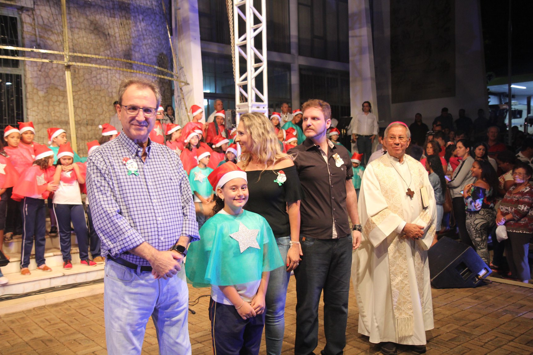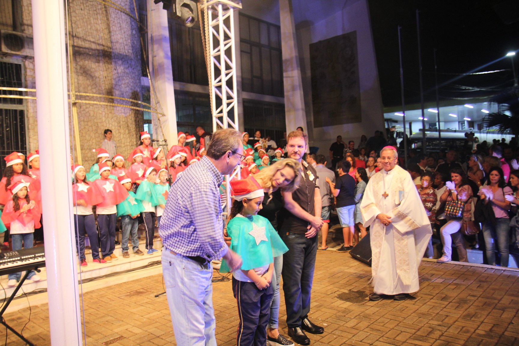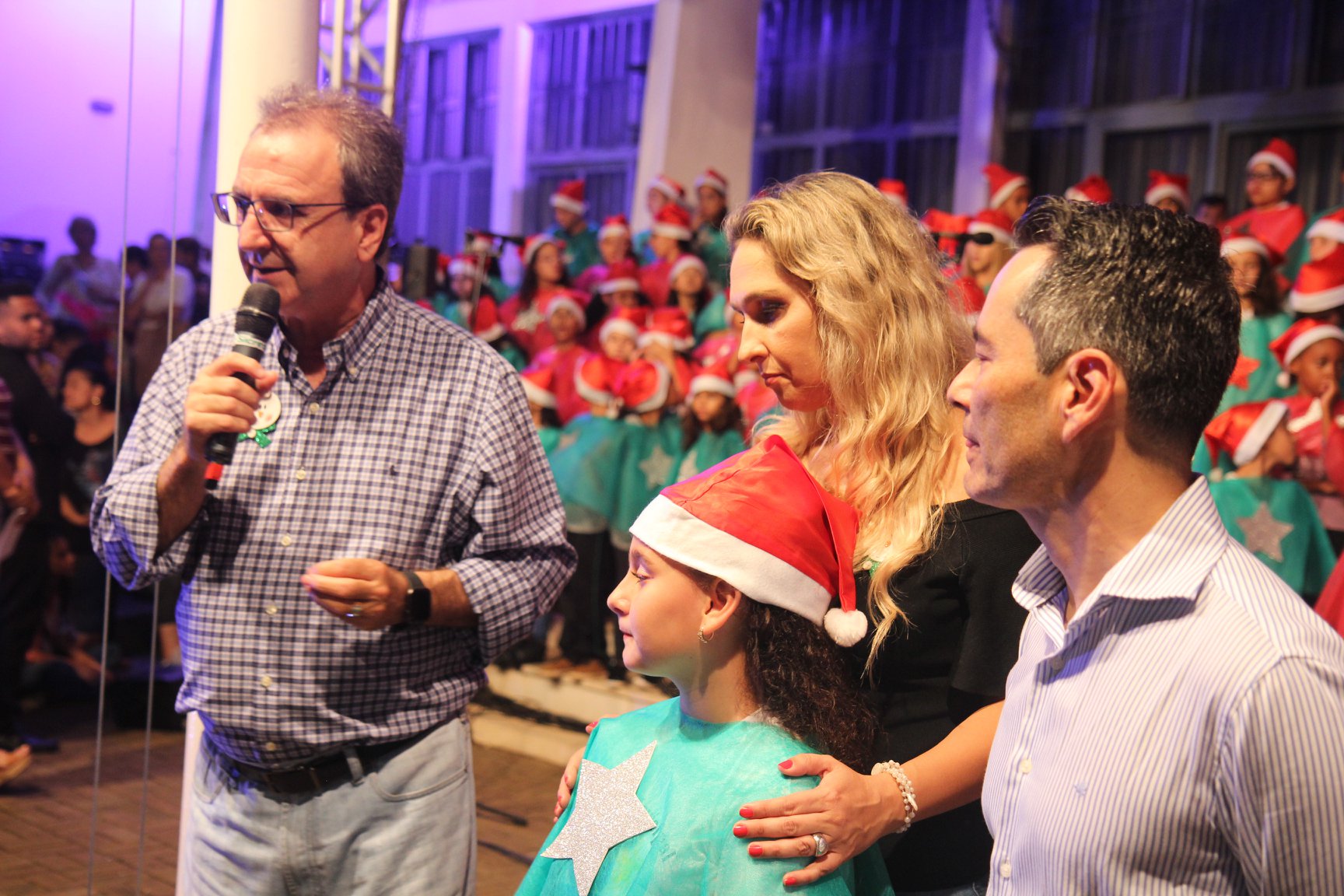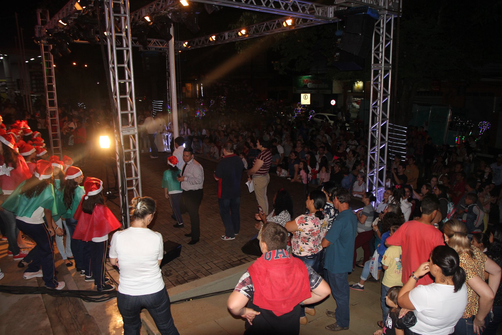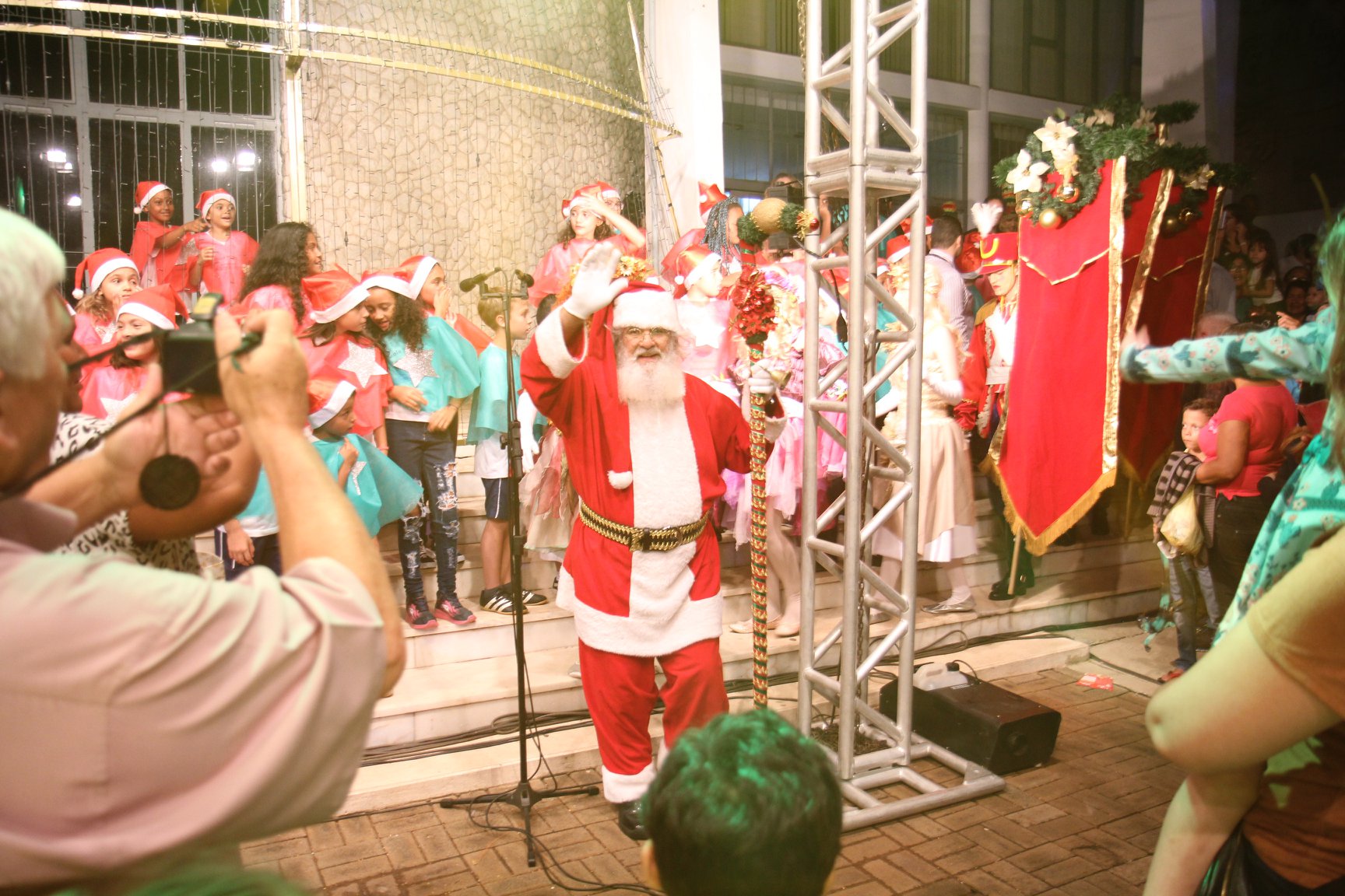 A participação muito aguardada pela população foi a apresentação do Coral formado pelos alunos das Escolas Municipais em tempo integral: Drº Acyr Ivo Carazzai; prof.ª Alice Correia Diniz; Prof. Ângelo Mazzarotto; Prof. Aníbal Campi; Prof. Atila Silveira Brasil; Vereador Damasco Adão Sotille; Prof.ª Eunice Gatti Gomes; Padre Antônio Lock; Noêmia Oliveira Bruno e Vitorino Gomes Henrique, regido pelo maestro Renato Navarro e sua equipe. O evento foi abençoado pelo Bispo Diocesano Dom Manuel Francisco, com a leitura do nascimento do menino Jesus, destacando o verdadeiro sentido do Natal. Foram várias cantigas de Natal que embalaram a todos tirando aplausos dos presentes. O ponto máximo da noite foi à chegada do Papai Noel com seus duendes, princesas e soldadinhos de chumbo. O prefeito Amin Hannouche, e a vice-prefeita Angélica Olchaneski, fizeram a entrega da chave para o Papai Noel e destacaram a alegria que sentiam neste momento em que o espírito natalino contagiava todos os corações. Estiveram presentes, o Presidente da Associação Comercial e Empresarial de nossa cidade, Fabiano Inoue, os Secretários municipais, Feira da Lua, Câmara de Vereadores representados pelos vereadores Dione Carlos, Sebastião Lucri e Luiz Carlos Amâncio, Rafael Hannouche e especialmente todas as famílias procopenses que deixaram suas casas e vieram com seus filhos para essa linda apresentação. Ainda nesta oportunidade foi apresentada a população a Unidade móvel Veterinária que logo mais estará atendendo os cães e gatos da cidade para a castração e cuidados básicos, em breve a cidade terá seu primeiro Centro de Recuperação de Cães e Gatos.