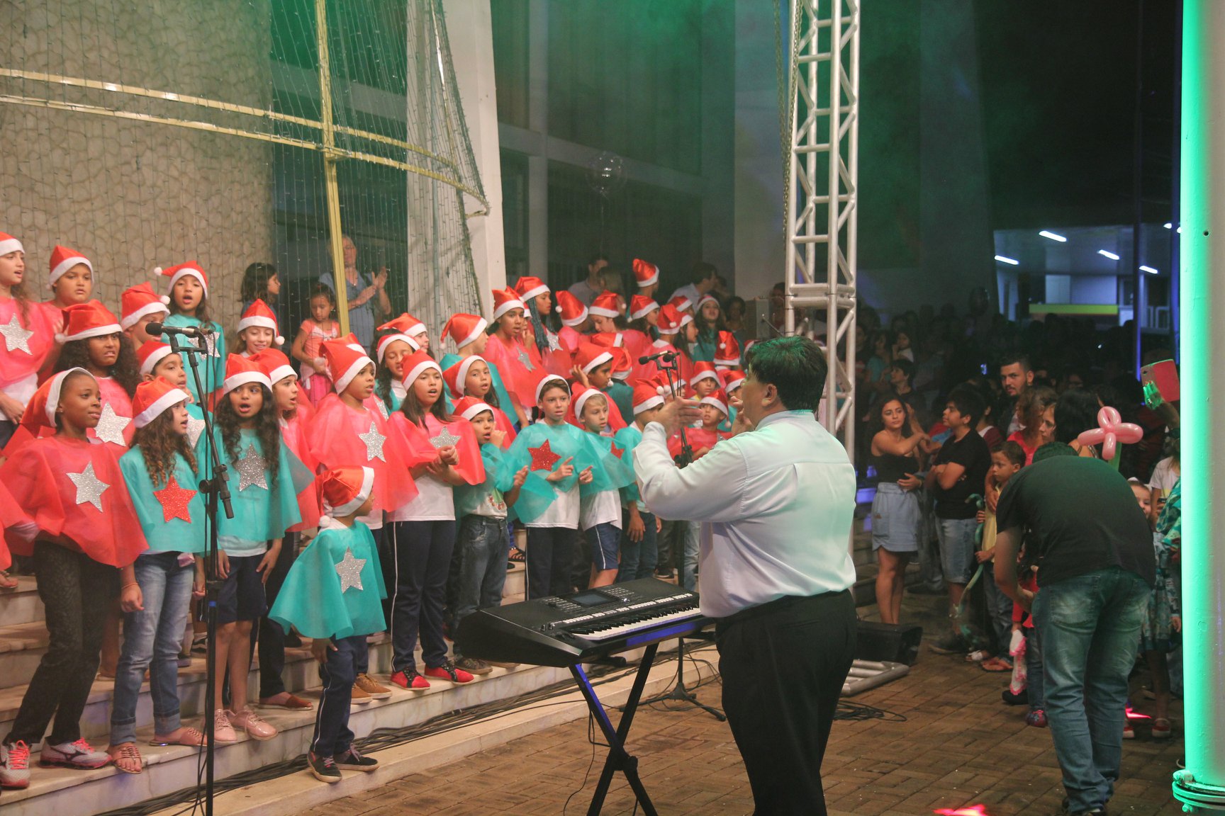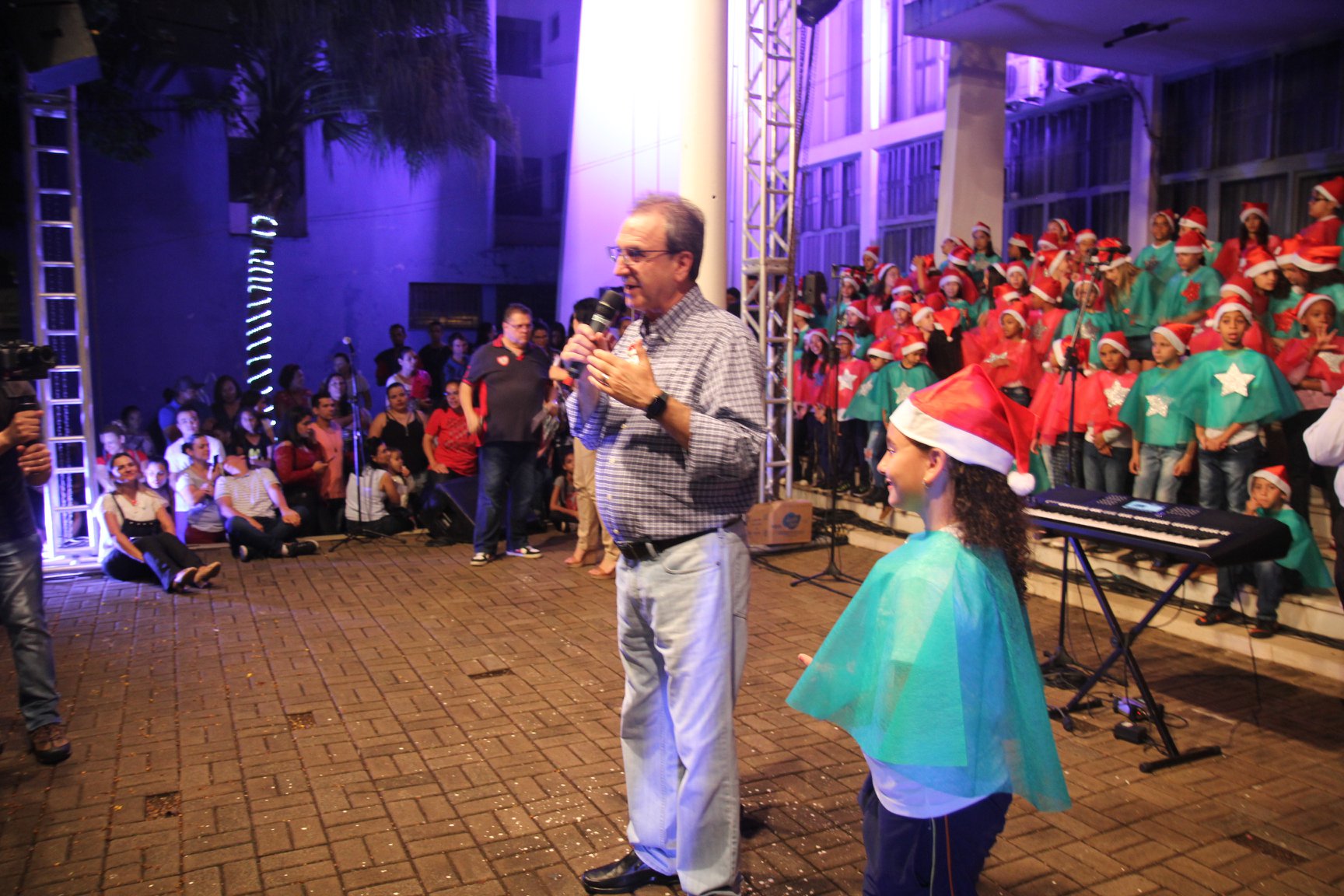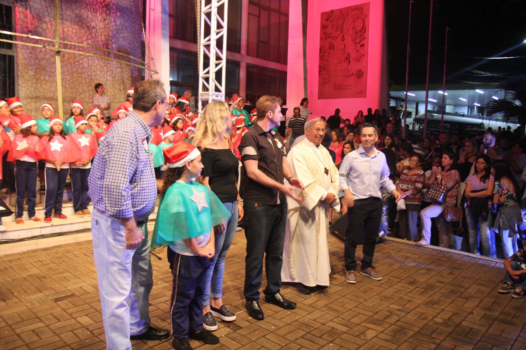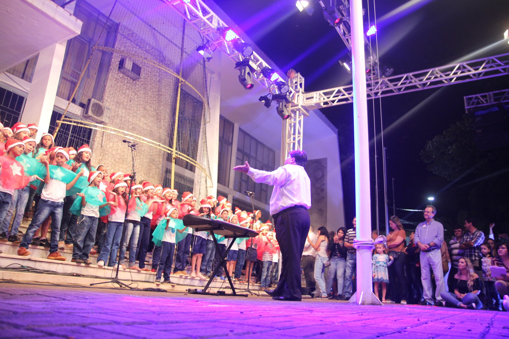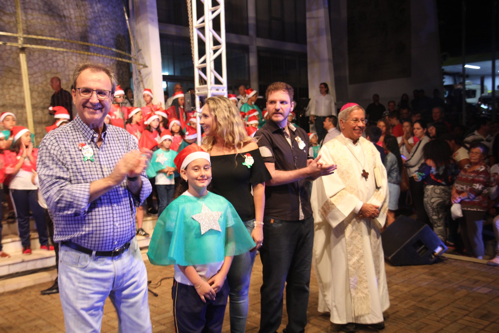 A participação muito aguardada pela população foi a apresentação do Coral formado pelos alunos das Escolas Municipais em tempo integral: Drº Acyr Ivo Carazzai; prof.ª Alice Correia Diniz; Prof. Ângelo Mazzarotto; Prof. Aníbal Campi; Prof. Atila Silveira Brasil; Vereador Damasco Adão Sotille; Prof.ª Eunice Gatti Gomes; Padre Antônio Lock; Noêmia Oliveira Bruno e Vitorino Gomes Henrique, regido pelo maestro Renato Navarro e sua equipe. O evento foi abençoado pelo Bispo Diocesano Dom Manuel Francisco, com a leitura do nascimento do menino Jesus, destacando o verdadeiro sentido do Natal. Foram várias cantigas de Natal que embalaram a todos tirando aplausos dos presentes. O ponto máximo da noite foi à chegada do Papai Noel com seus duendes, princesas e soldadinhos de chumbo. O prefeito Amin Hannouche, e a vice-prefeita Angélica Olchaneski, fizeram a entrega da chave para o Papai Noel e destacaram a alegria que sentiam neste momento em que o espírito natalino contagiava todos os corações. Estiveram presentes, o Presidente da Associação Comercial e Empresarial de nossa cidade, Fabiano Inoue, os Secretários municipais, Feira da Lua, Câmara de Vereadores representados pelos vereadores Dione Carlos, Sebastião Lucri e Luiz Carlos Amâncio, Rafael Hannouche e especialmente todas as famílias procopenses que deixaram suas casas e vieram com seus filhos para essa linda apresentação. Ainda nesta oportunidade foi apresentada a população a Unidade móvel Veterinária que logo mais estará atendendo os cães e gatos da cidade para a castração e cuidados básicos, em breve a cidade terá seu primeiro Centro de Recuperação de Cães e Gatos.