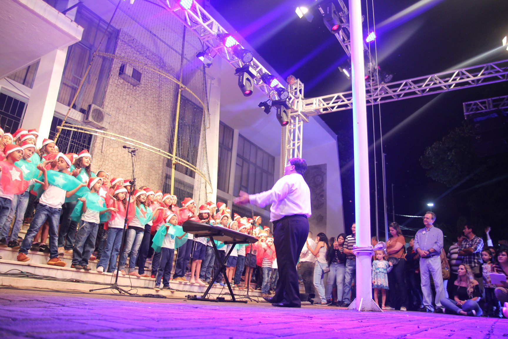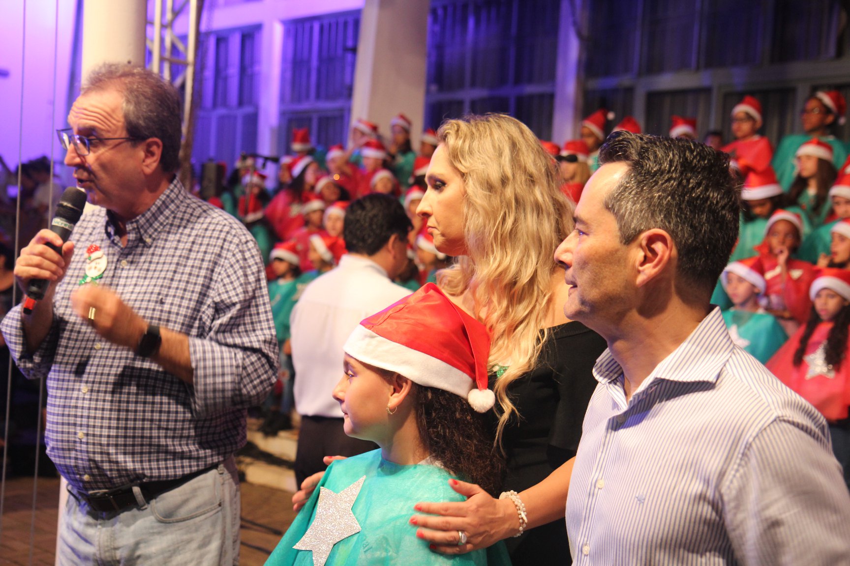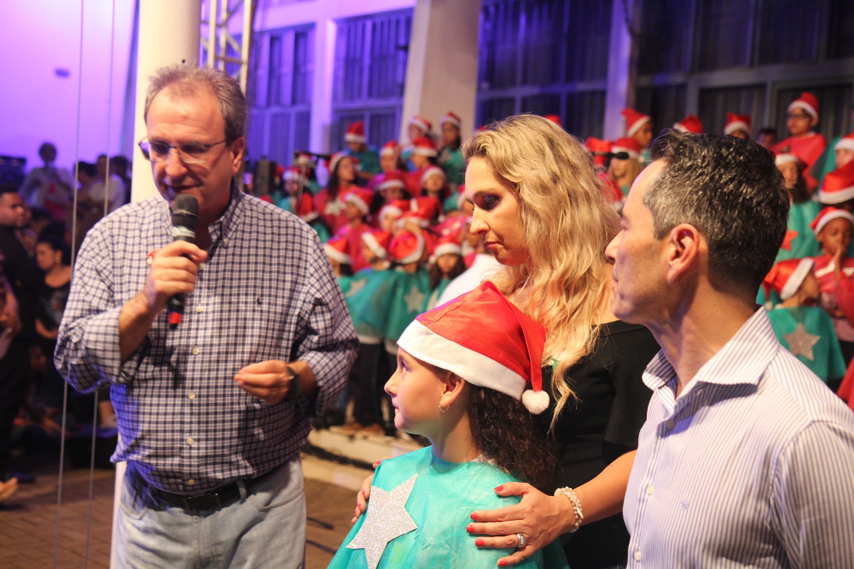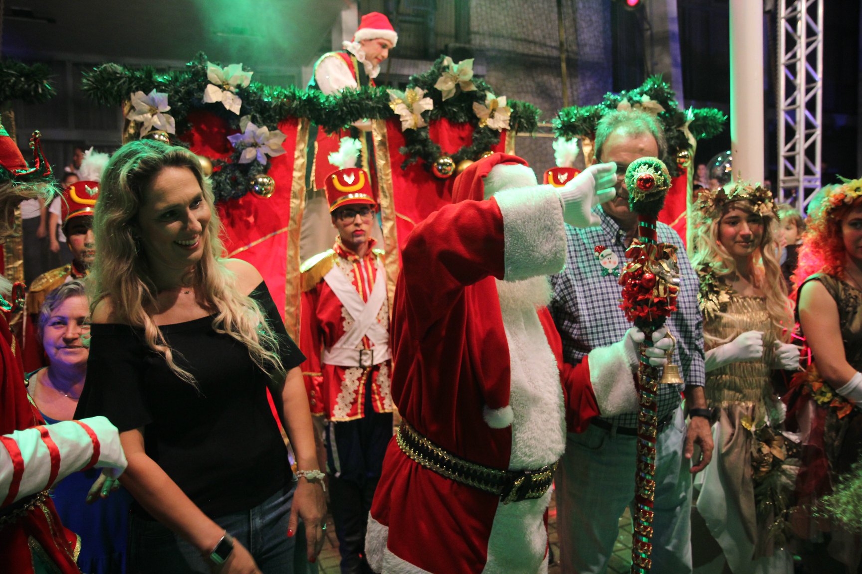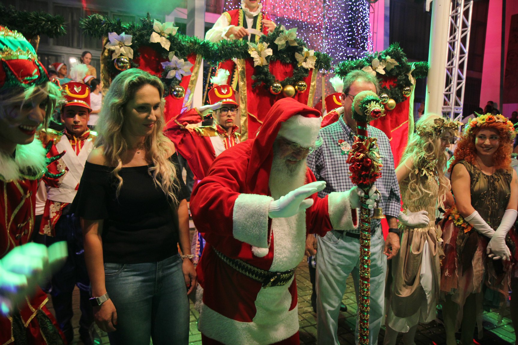 A participação muito aguardada pela população foi a apresentação do Coral formado pelos alunos das Escolas Municipais em tempo integral: Drº Acyr Ivo Carazzai; prof.ª Alice Correia Diniz; Prof. Ângelo Mazzarotto; Prof. Aníbal Campi; Prof. Atila Silveira Brasil; Vereador Damasco Adão Sotille; Prof.ª Eunice Gatti Gomes; Padre Antônio Lock; Noêmia Oliveira Bruno e Vitorino Gomes Henrique, regido pelo maestro Renato Navarro e sua equipe. O evento foi abençoado pelo Bispo Diocesano Dom Manuel Francisco, com a leitura do nascimento do menino Jesus, destacando o verdadeiro sentido do Natal. Foram várias cantigas de Natal que embalaram a todos tirando aplausos dos presentes. O ponto máximo da noite foi à chegada do Papai Noel com seus duendes, princesas e soldadinhos de chumbo. O prefeito Amin Hannouche, e a vice-prefeita Angélica Olchaneski, fizeram a entrega da chave para o Papai Noel e destacaram a alegria que sentiam neste momento em que o espírito natalino contagiava todos os corações. Estiveram presentes, o Presidente da Associação Comercial e Empresarial de nossa cidade, Fabiano Inoue, os Secretários municipais, Feira da Lua, Câmara de Vereadores representados pelos vereadores Dione Carlos, Sebastião Lucri e Luiz Carlos Amâncio, Rafael Hannouche e especialmente todas as famílias procopenses que deixaram suas casas e vieram com seus filhos para essa linda apresentação. Ainda nesta oportunidade foi apresentada a população a Unidade móvel Veterinária que logo mais estará atendendo os cães e gatos da cidade para a castração e cuidados básicos, em breve a cidade terá seu primeiro Centro de Recuperação de Cães e Gatos.