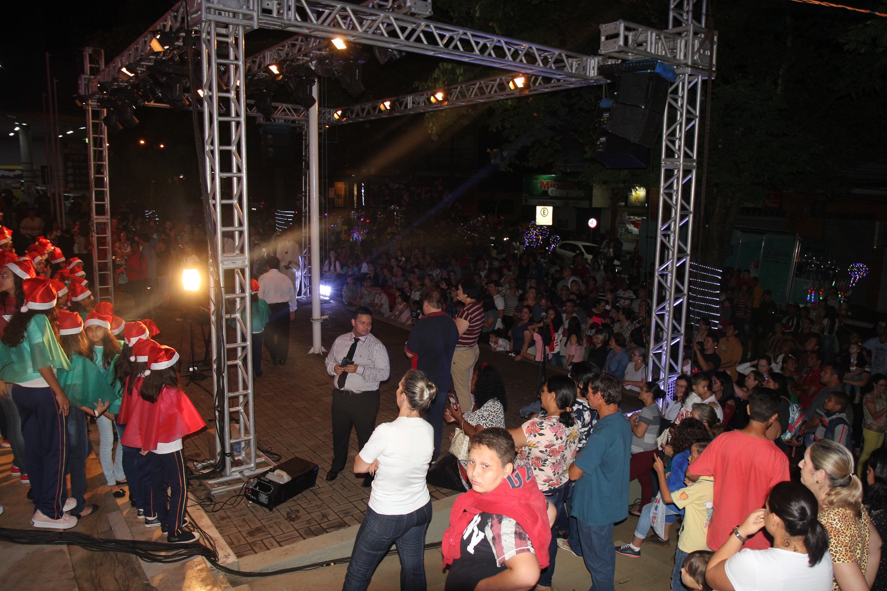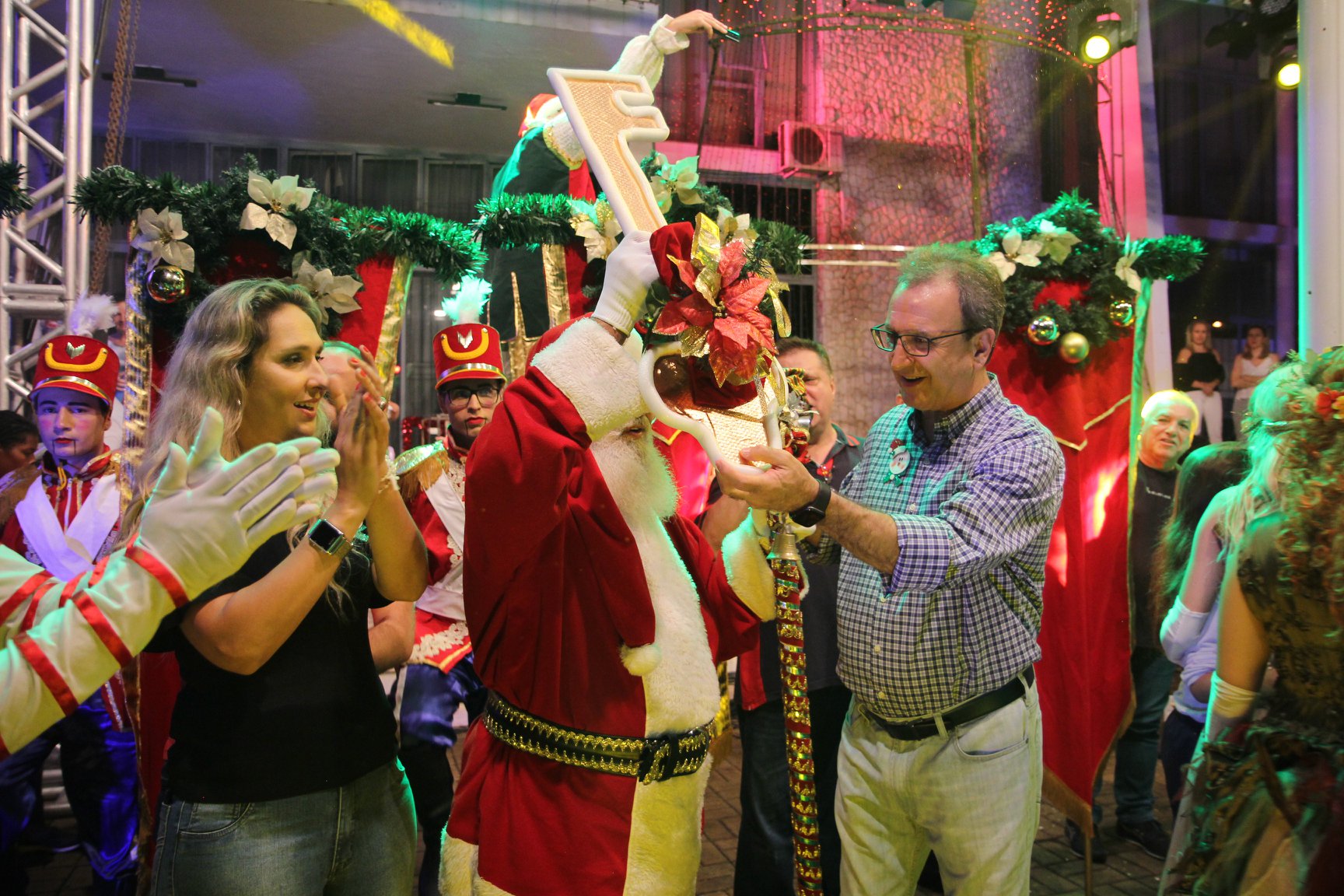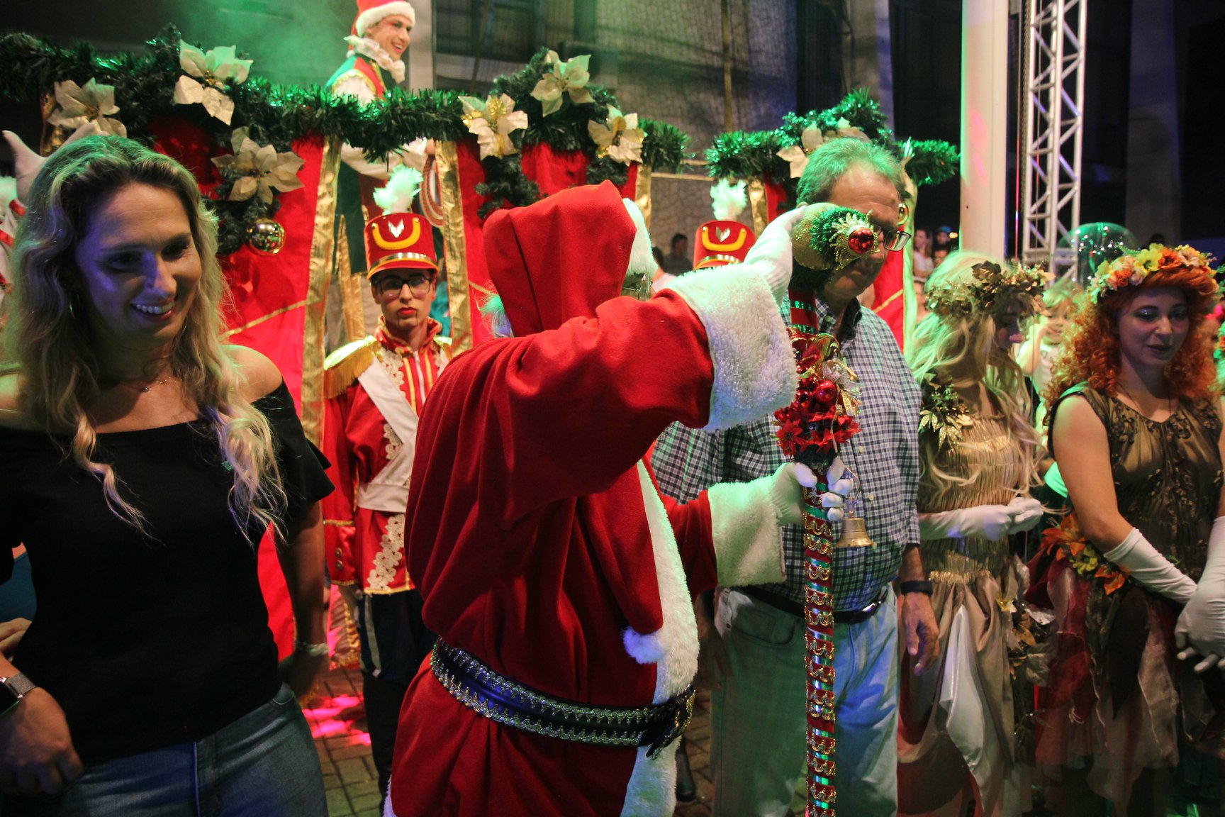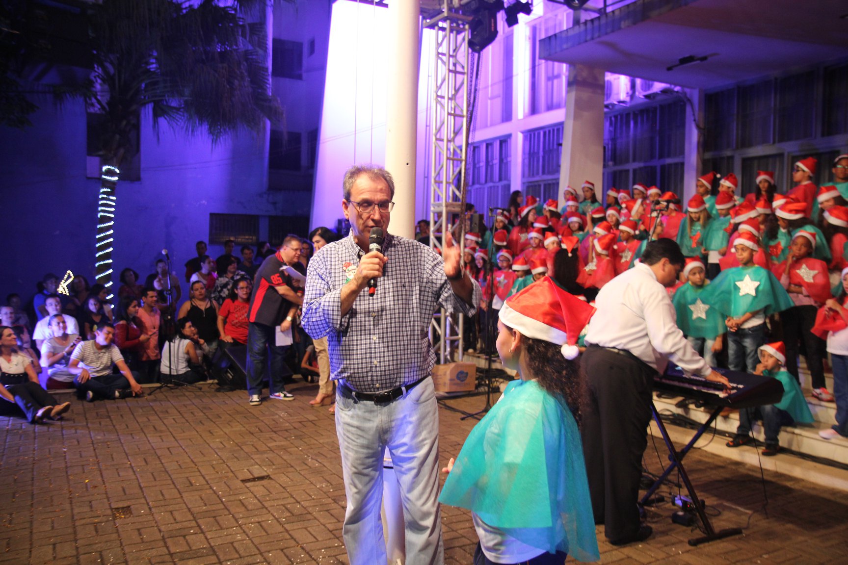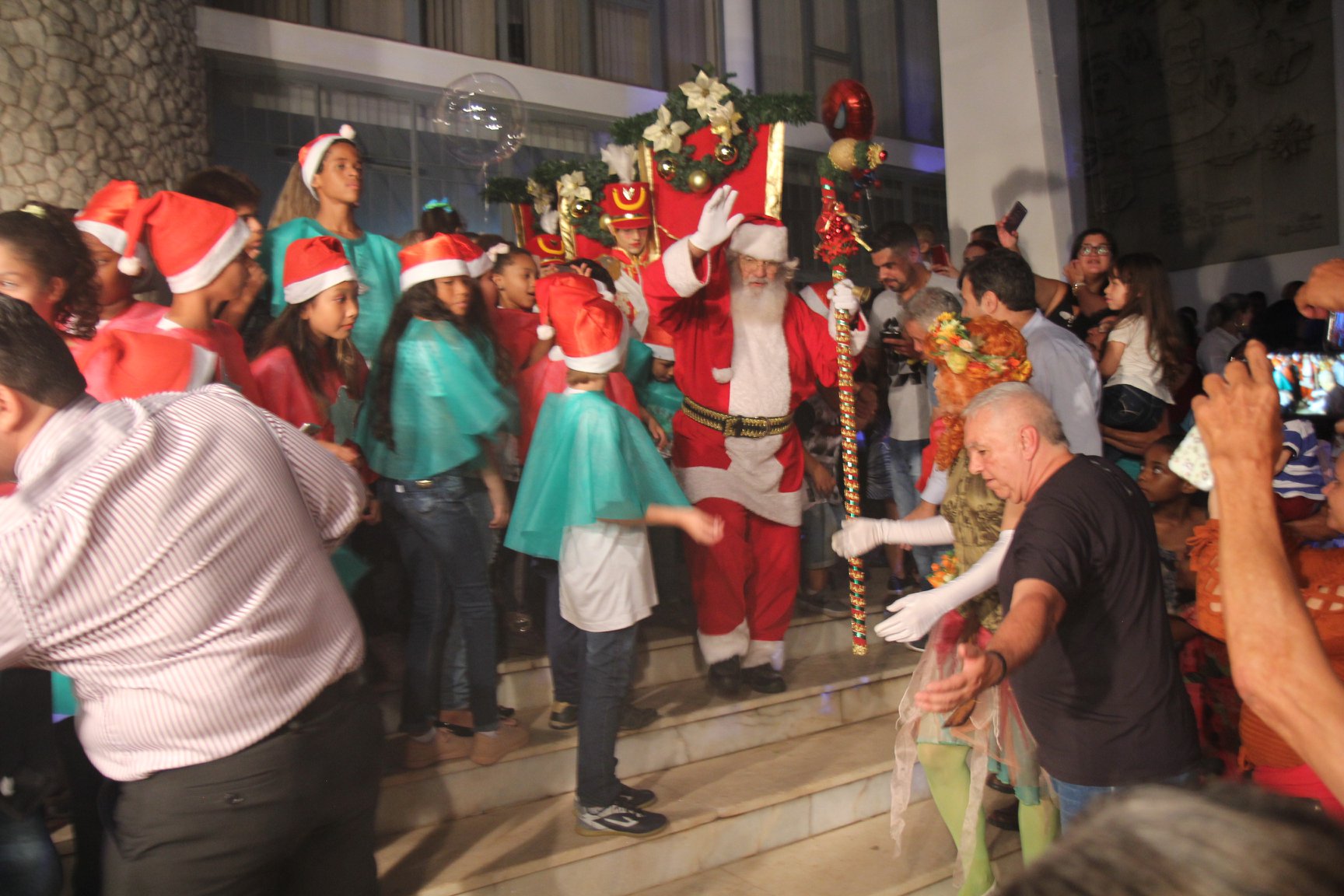 A participação muito aguardada pela população foi a apresentação do Coral formado pelos alunos das Escolas Municipais em tempo integral: Drº Acyr Ivo Carazzai; prof.ª Alice Correia Diniz; Prof. Ângelo Mazzarotto; Prof. Aníbal Campi; Prof. Atila Silveira Brasil; Vereador Damasco Adão Sotille; Prof.ª Eunice Gatti Gomes; Padre Antônio Lock; Noêmia Oliveira Bruno e Vitorino Gomes Henrique, regido pelo maestro Renato Navarro e sua equipe. O evento foi abençoado pelo Bispo Diocesano Dom Manuel Francisco, com a leitura do nascimento do menino Jesus, destacando o verdadeiro sentido do Natal. Foram várias cantigas de Natal que embalaram a todos tirando aplausos dos presentes. O ponto máximo da noite foi à chegada do Papai Noel com seus duendes, princesas e soldadinhos de chumbo. O prefeito Amin Hannouche, e a vice-prefeita Angélica Olchaneski, fizeram a entrega da chave para o Papai Noel e destacaram a alegria que sentiam neste momento em que o espírito natalino contagiava todos os corações. Estiveram presentes, o Presidente da Associação Comercial e Empresarial de nossa cidade, Fabiano Inoue, os Secretários municipais, Feira da Lua, Câmara de Vereadores representados pelos vereadores Dione Carlos, Sebastião Lucri e Luiz Carlos Amâncio, Rafael Hannouche e especialmente todas as famílias procopenses que deixaram suas casas e vieram com seus filhos para essa linda apresentação. Ainda nesta oportunidade foi apresentada a população a Unidade móvel Veterinária que logo mais estará atendendo os cães e gatos da cidade para a castração e cuidados básicos, em breve a cidade terá seu primeiro Centro de Recuperação de Cães e Gatos.