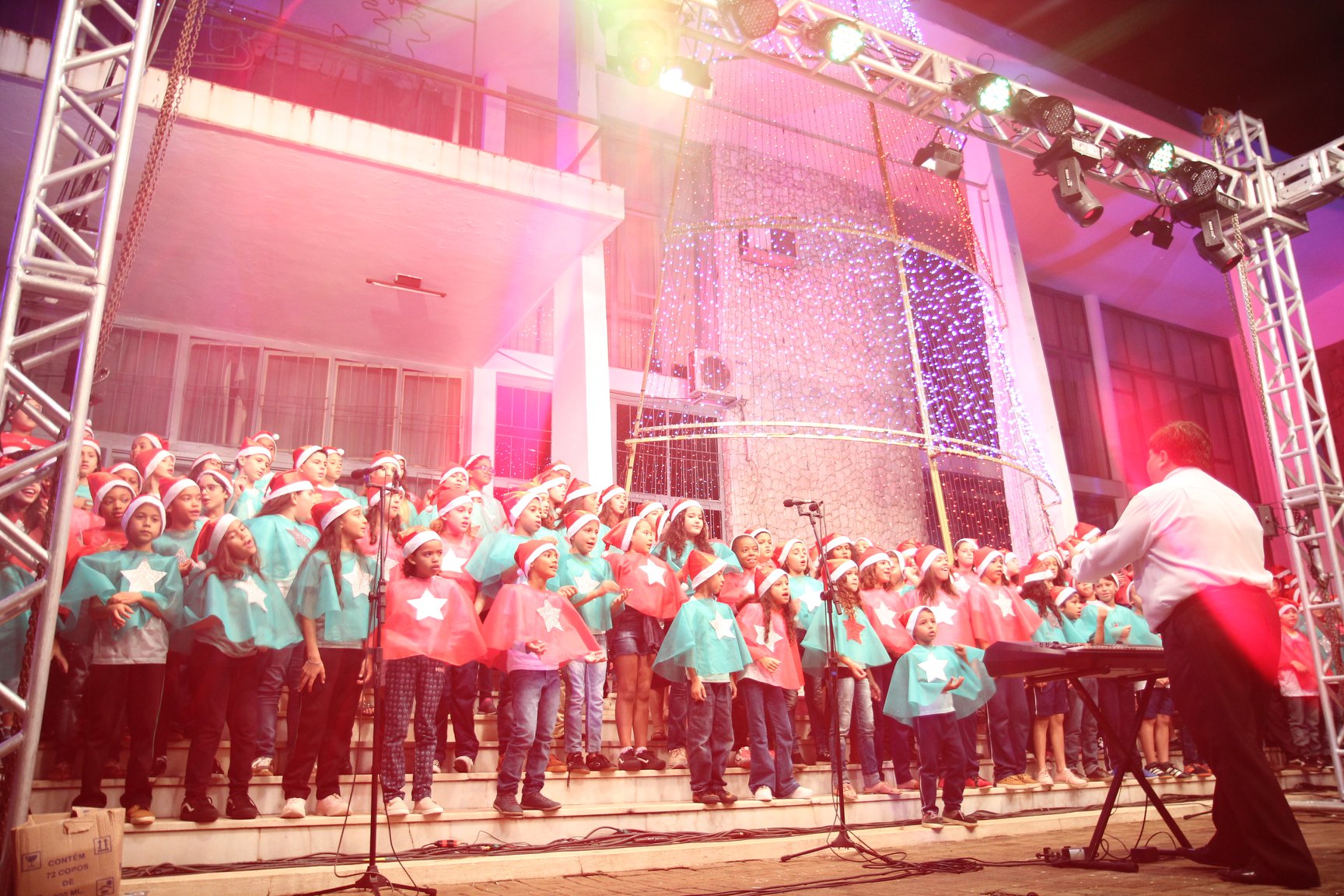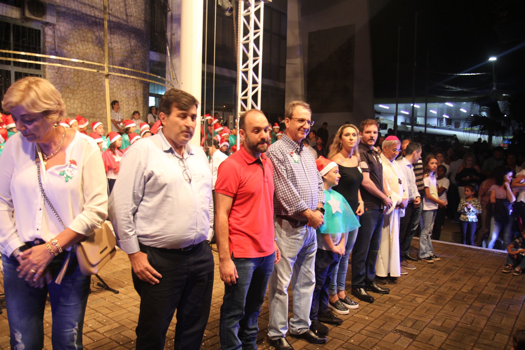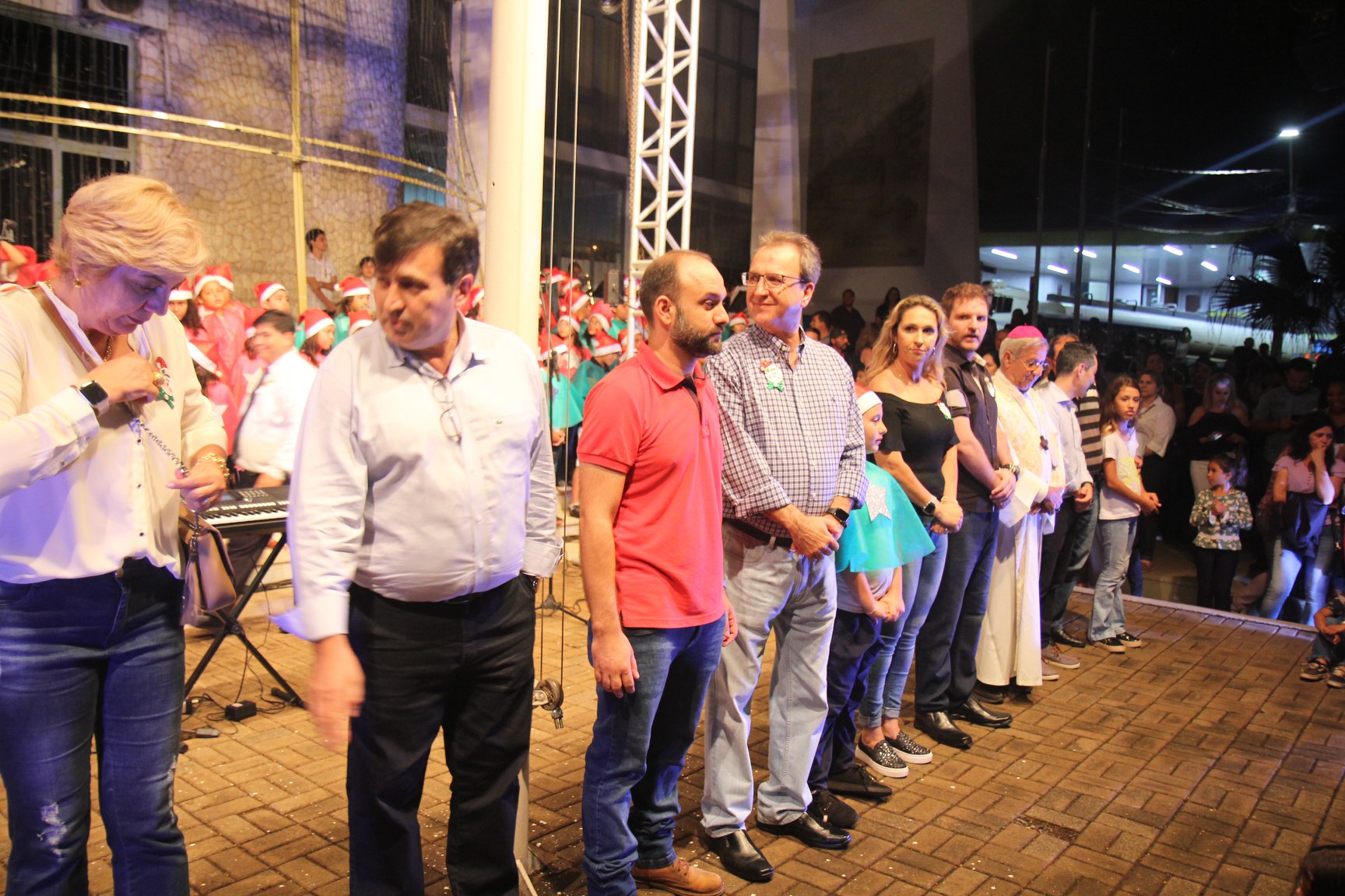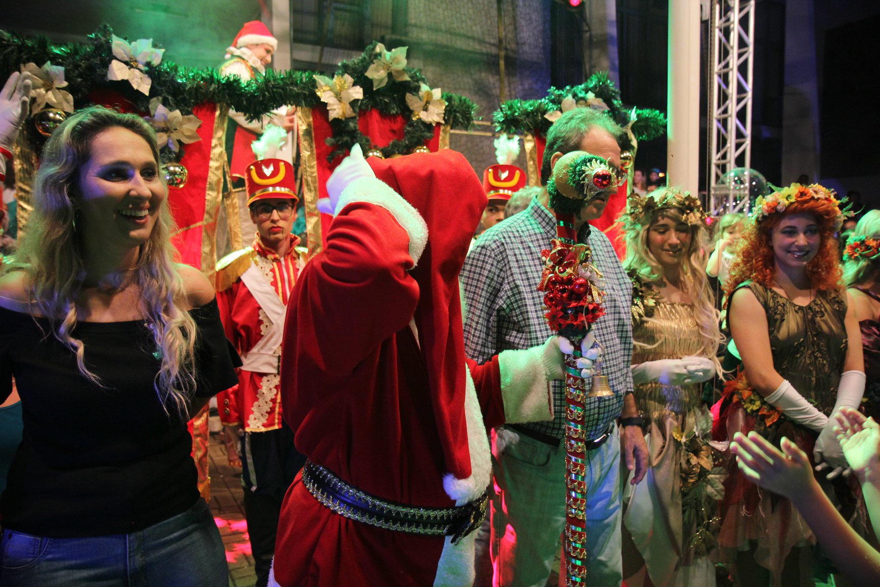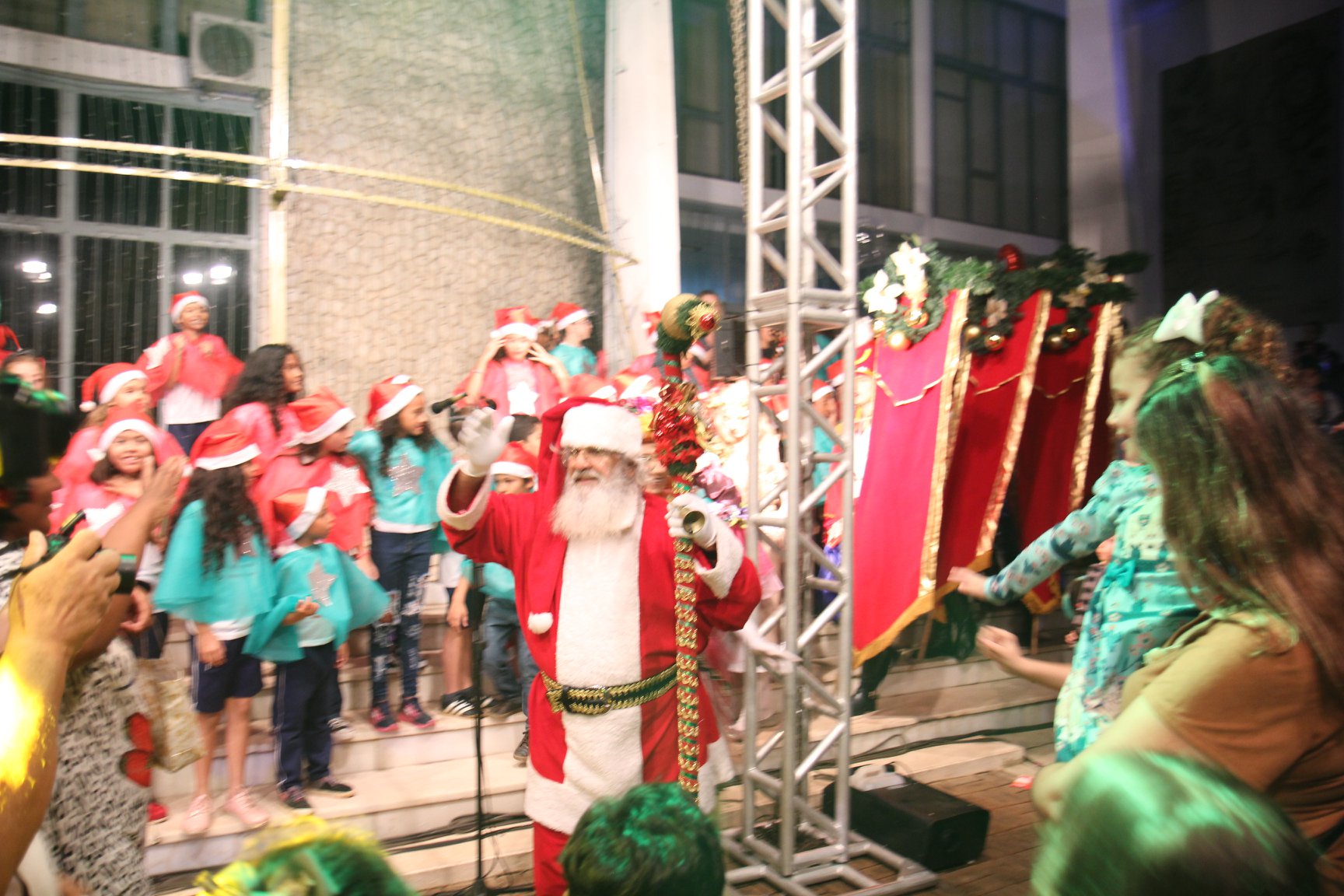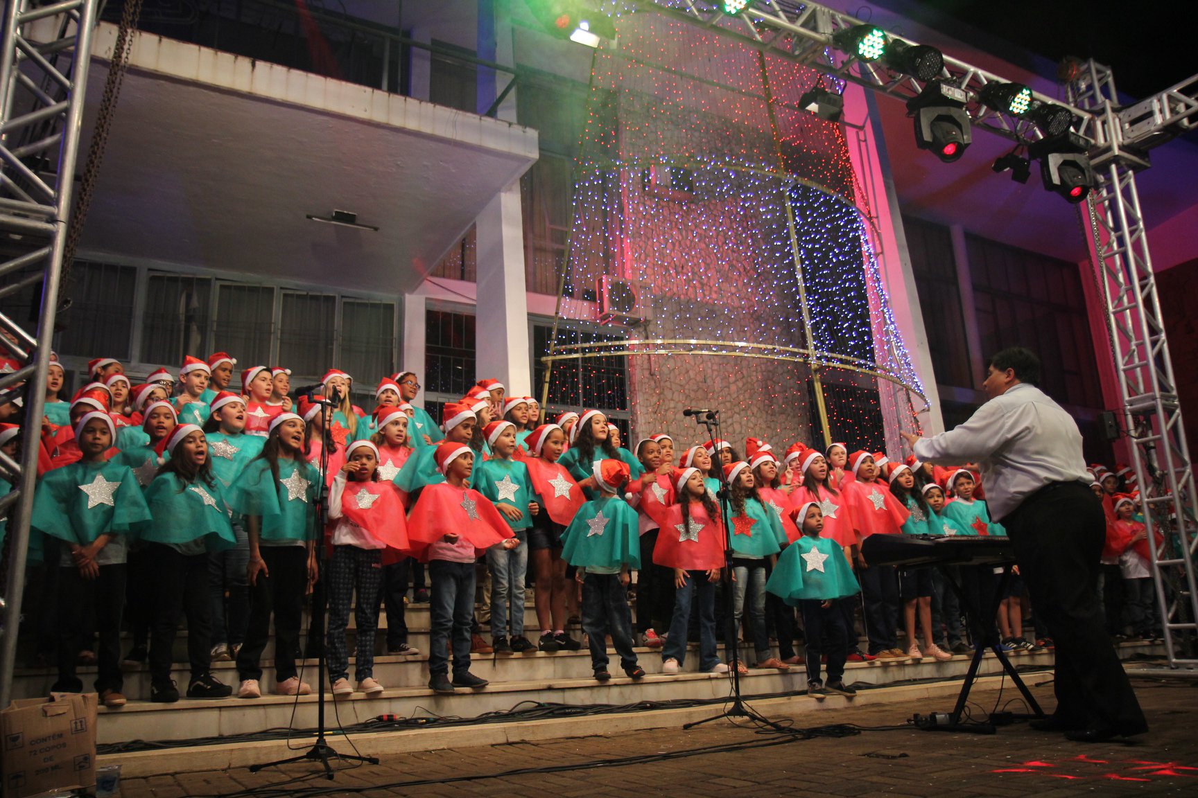 A participação muito aguardada pela população foi a apresentação do Coral formado pelos alunos das Escolas Municipais em tempo integral: Drº Acyr Ivo Carazzai; prof.ª Alice Correia Diniz; Prof. Ângelo Mazzarotto; Prof. Aníbal Campi; Prof. Atila Silveira Brasil; Vereador Damasco Adão Sotille; Prof.ª Eunice Gatti Gomes; Padre Antônio Lock; Noêmia Oliveira Bruno e Vitorino Gomes Henrique, regido pelo maestro Renato Navarro e sua equipe. O evento foi abençoado pelo Bispo Diocesano Dom Manuel Francisco, com a leitura do nascimento do menino Jesus, destacando o verdadeiro sentido do Natal. Foram várias cantigas de Natal que embalaram a todos tirando aplausos dos presentes. O ponto máximo da noite foi à chegada do Papai Noel com seus duendes, princesas e soldadinhos de chumbo. O prefeito Amin Hannouche, e a vice-prefeita Angélica Olchaneski, fizeram a entrega da chave para o Papai Noel e destacaram a alegria que sentiam neste momento em que o espírito natalino contagiava todos os corações. Estiveram presentes, o Presidente da Associação Comercial e Empresarial de nossa cidade, Fabiano Inoue, os Secretários municipais, Feira da Lua, Câmara de Vereadores representados pelos vereadores Dione Carlos, Sebastião Lucri e Luiz Carlos Amâncio, Rafael Hannouche e especialmente todas as famílias procopenses que deixaram suas casas e vieram com seus filhos para essa linda apresentação. Ainda nesta oportunidade foi apresentada a população a Unidade móvel Veterinária que logo mais estará atendendo os cães e gatos da cidade para a castração e cuidados básicos, em breve a cidade terá seu primeiro Centro de Recuperação de Cães e Gatos.