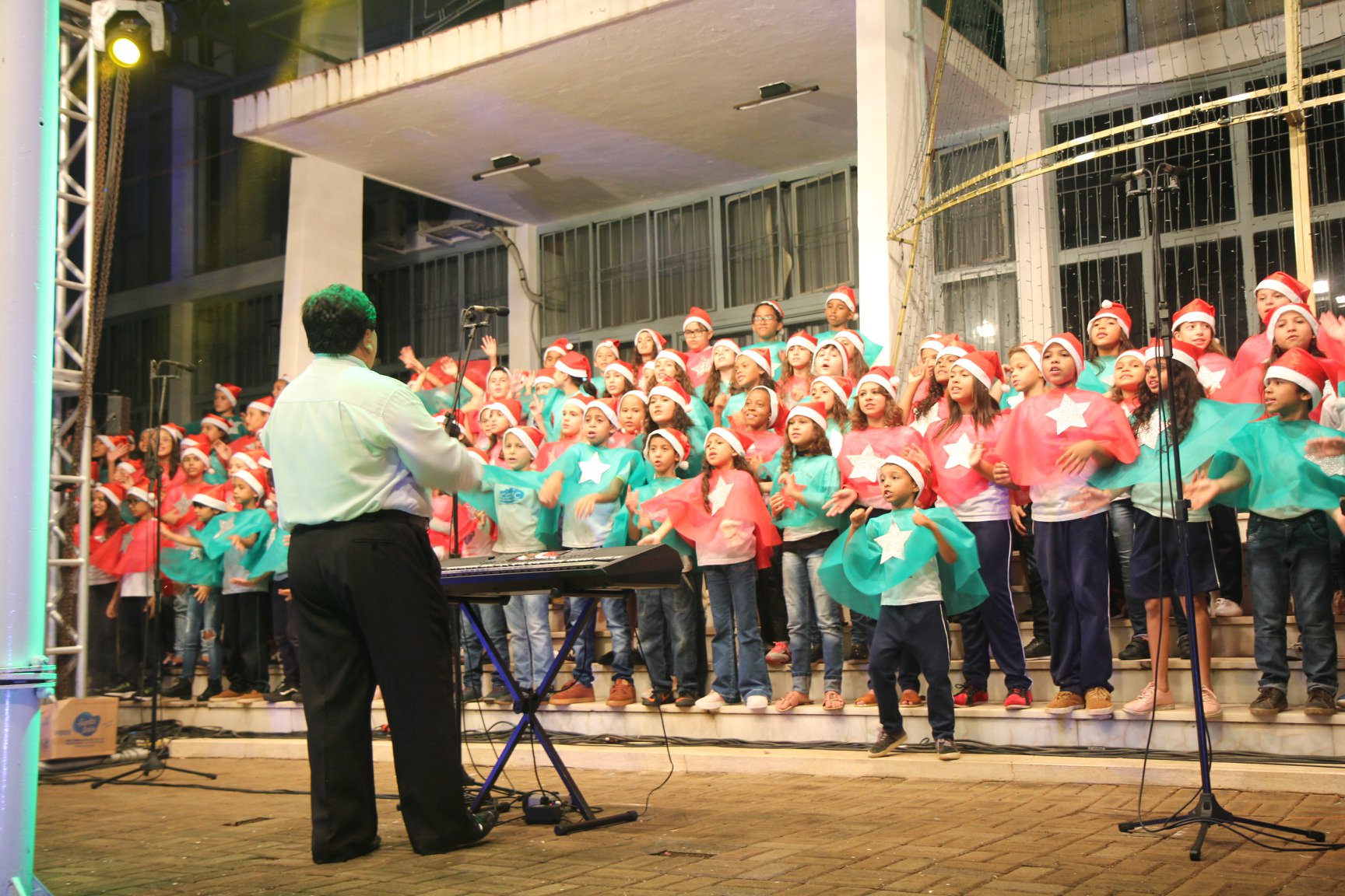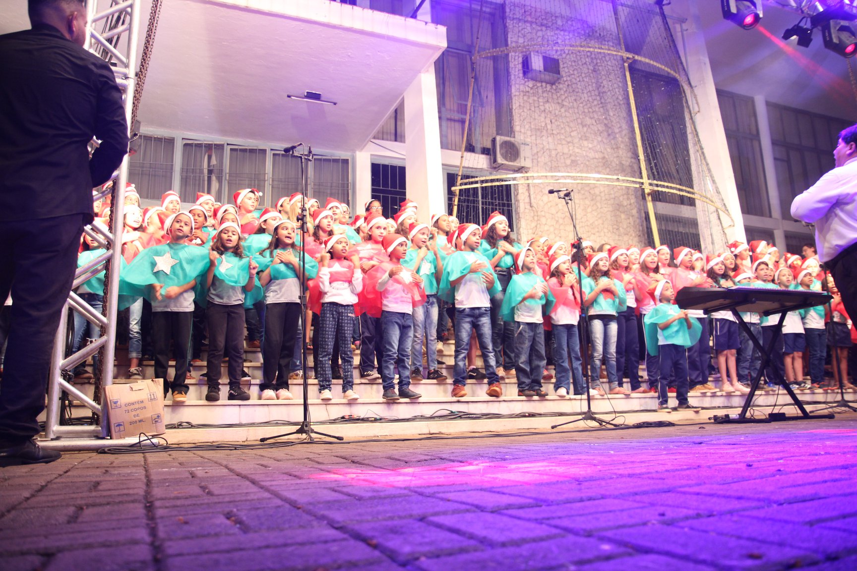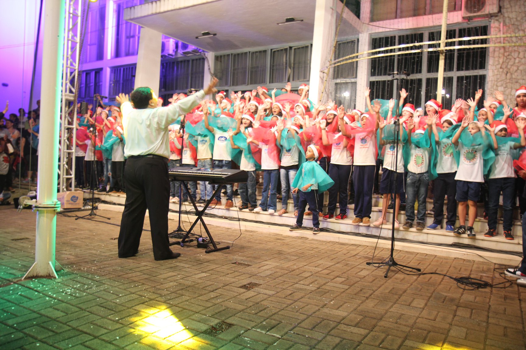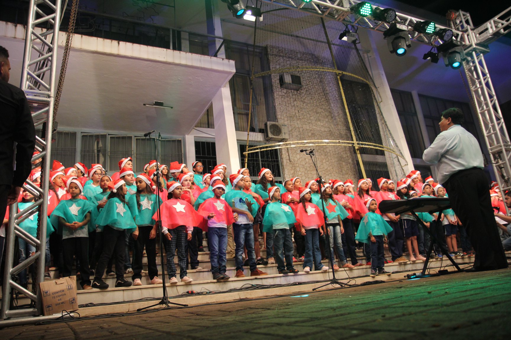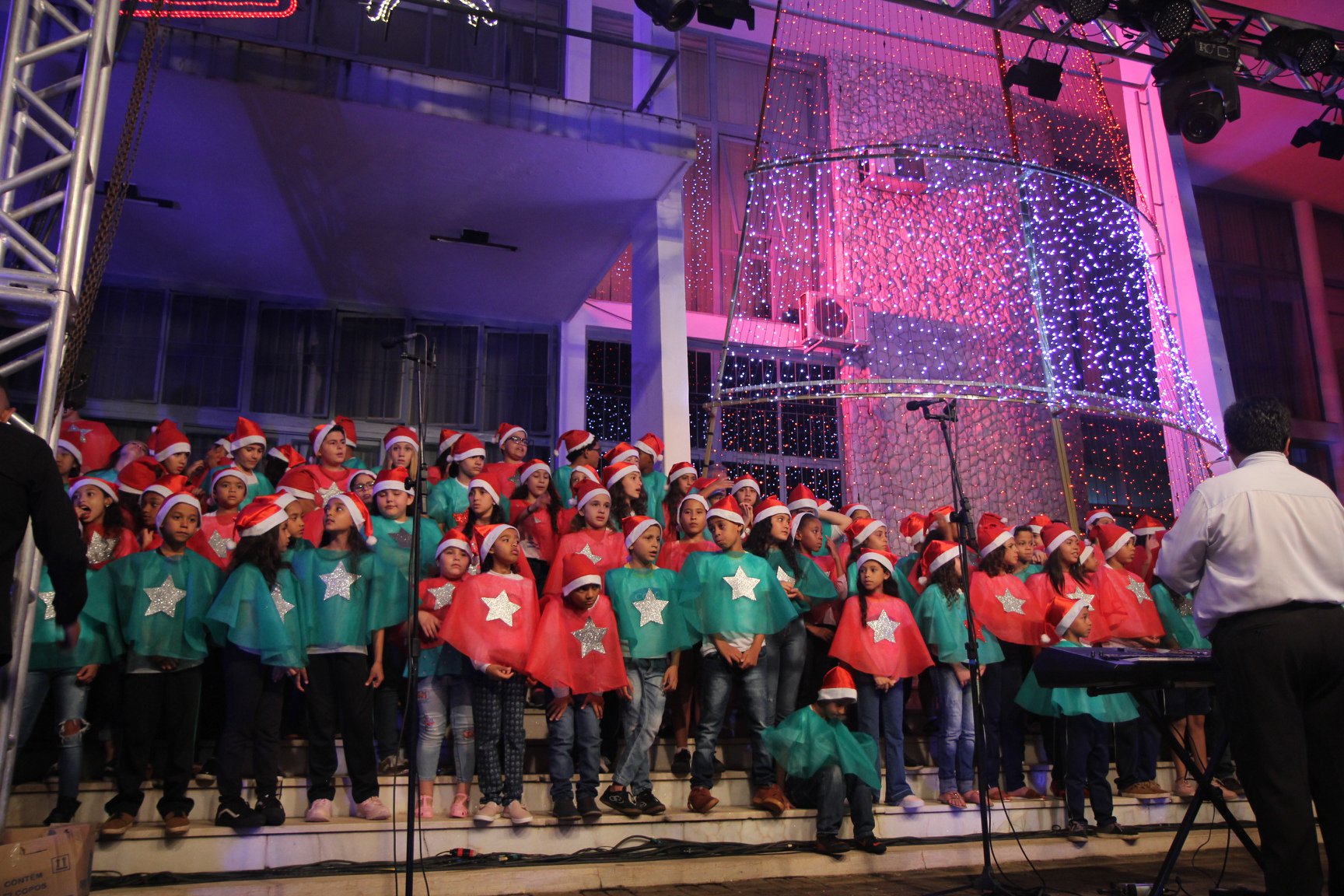 A participação muito aguardada pela população foi a apresentação do Coral formado pelos alunos das Escolas Municipais em tempo integral: Drº Acyr Ivo Carazzai; prof.ª Alice Correia Diniz; Prof. Ângelo Mazzarotto; Prof. Aníbal Campi; Prof. Atila Silveira Brasil; Vereador Damasco Adão Sotille; Prof.ª Eunice Gatti Gomes; Padre Antônio Lock; Noêmia Oliveira Bruno e Vitorino Gomes Henrique, regido pelo maestro Renato Navarro e sua equipe. O evento foi abençoado pelo Bispo Diocesano Dom Manuel Francisco, com a leitura do nascimento do menino Jesus, destacando o verdadeiro sentido do Natal. Foram várias cantigas de Natal que embalaram a todos tirando aplausos dos presentes. O ponto máximo da noite foi à chegada do Papai Noel com seus duendes, princesas e soldadinhos de chumbo. O prefeito Amin Hannouche, e a vice-prefeita Angélica Olchaneski, fizeram a entrega da chave para o Papai Noel e destacaram a alegria que sentiam neste momento em que o espírito natalino contagiava todos os corações. Estiveram presentes, o Presidente da Associação Comercial e Empresarial de nossa cidade, Fabiano Inoue, os Secretários municipais, Feira da Lua, Câmara de Vereadores representados pelos vereadores Dione Carlos, Sebastião Lucri e Luiz Carlos Amâncio, Rafael Hannouche e especialmente todas as famílias procopenses que deixaram suas casas e vieram com seus filhos para essa linda apresentação. Ainda nesta oportunidade foi apresentada a população a Unidade móvel Veterinária que logo mais estará atendendo os cães e gatos da cidade para a castração e cuidados básicos, em breve a cidade terá seu primeiro Centro de Recuperação de Cães e Gatos.
