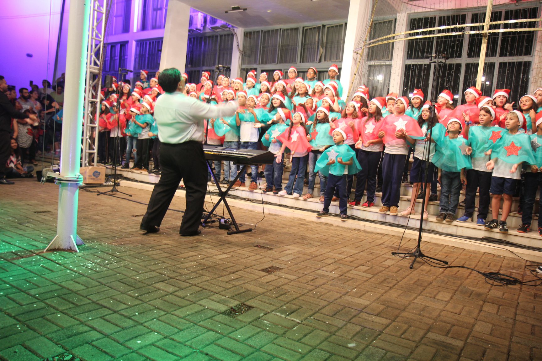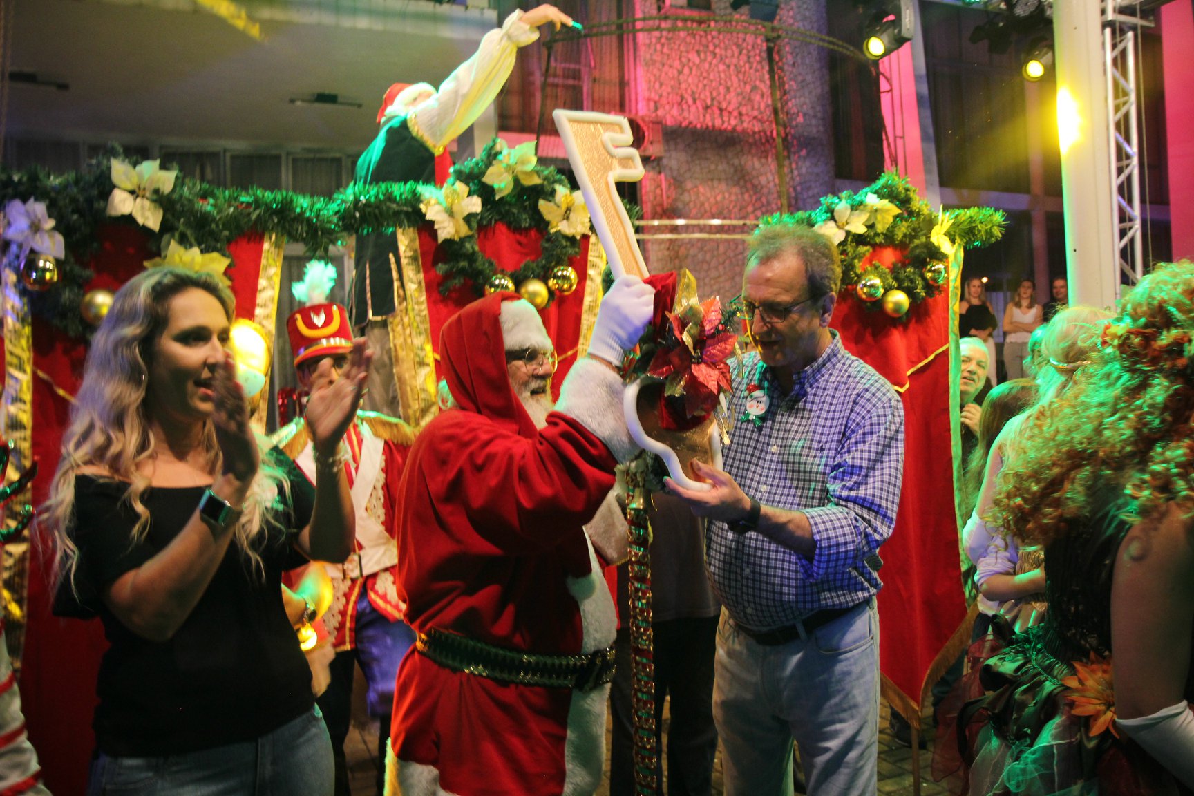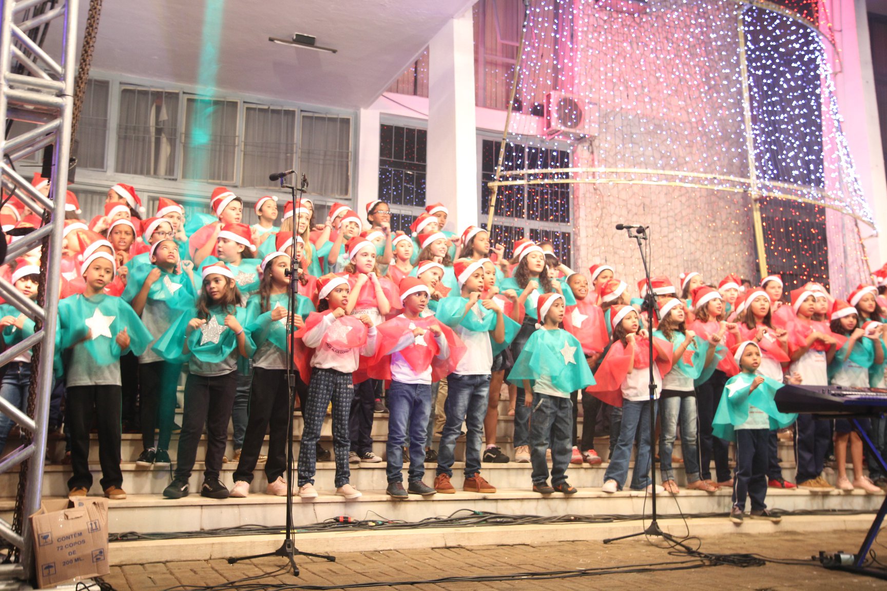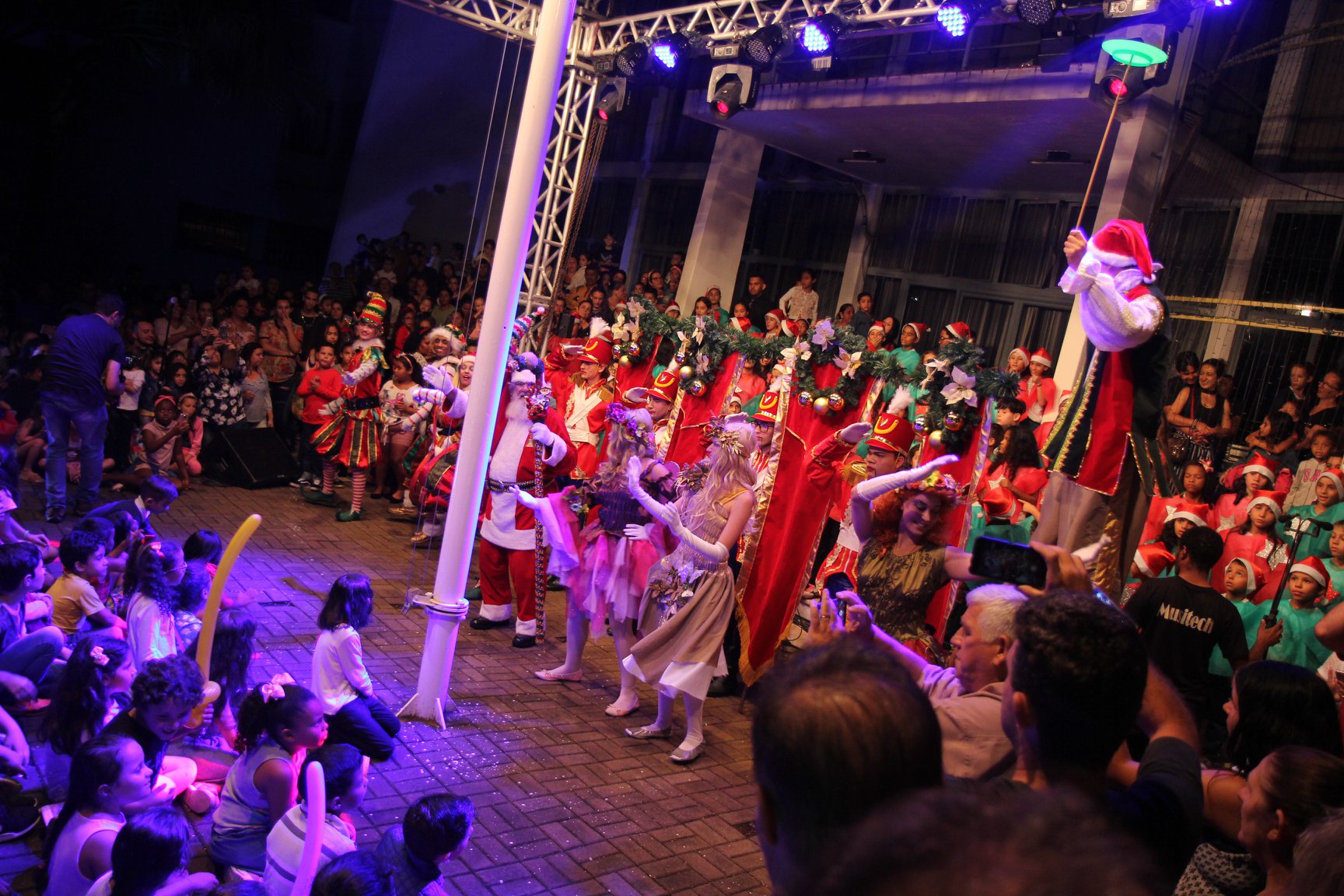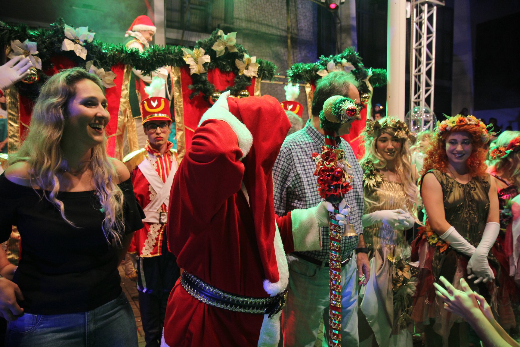 A participação muito aguardada pela população foi a apresentação do Coral formado pelos alunos das Escolas Municipais em tempo integral: Drº Acyr Ivo Carazzai; prof.ª Alice Correia Diniz; Prof. Ângelo Mazzarotto; Prof. Aníbal Campi; Prof. Atila Silveira Brasil; Vereador Damasco Adão Sotille; Prof.ª Eunice Gatti Gomes; Padre Antônio Lock; Noêmia Oliveira Bruno e Vitorino Gomes Henrique, regido pelo maestro Renato Navarro e sua equipe. O evento foi abençoado pelo Bispo Diocesano Dom Manuel Francisco, com a leitura do nascimento do menino Jesus, destacando o verdadeiro sentido do Natal. Foram várias cantigas de Natal que embalaram a todos tirando aplausos dos presentes. O ponto máximo da noite foi à chegada do Papai Noel com seus duendes, princesas e soldadinhos de chumbo. O prefeito Amin Hannouche, e a vice-prefeita Angélica Olchaneski, fizeram a entrega da chave para o Papai Noel e destacaram a alegria que sentiam neste momento em que o espírito natalino contagiava todos os corações. Estiveram presentes, o Presidente da Associação Comercial e Empresarial de nossa cidade, Fabiano Inoue, os Secretários municipais, Feira da Lua, Câmara de Vereadores representados pelos vereadores Dione Carlos, Sebastião Lucri e Luiz Carlos Amâncio, Rafael Hannouche e especialmente todas as famílias procopenses que deixaram suas casas e vieram com seus filhos para essa linda apresentação. Ainda nesta oportunidade foi apresentada a população a Unidade móvel Veterinária que logo mais estará atendendo os cães e gatos da cidade para a castração e cuidados básicos, em breve a cidade terá seu primeiro Centro de Recuperação de Cães e Gatos.