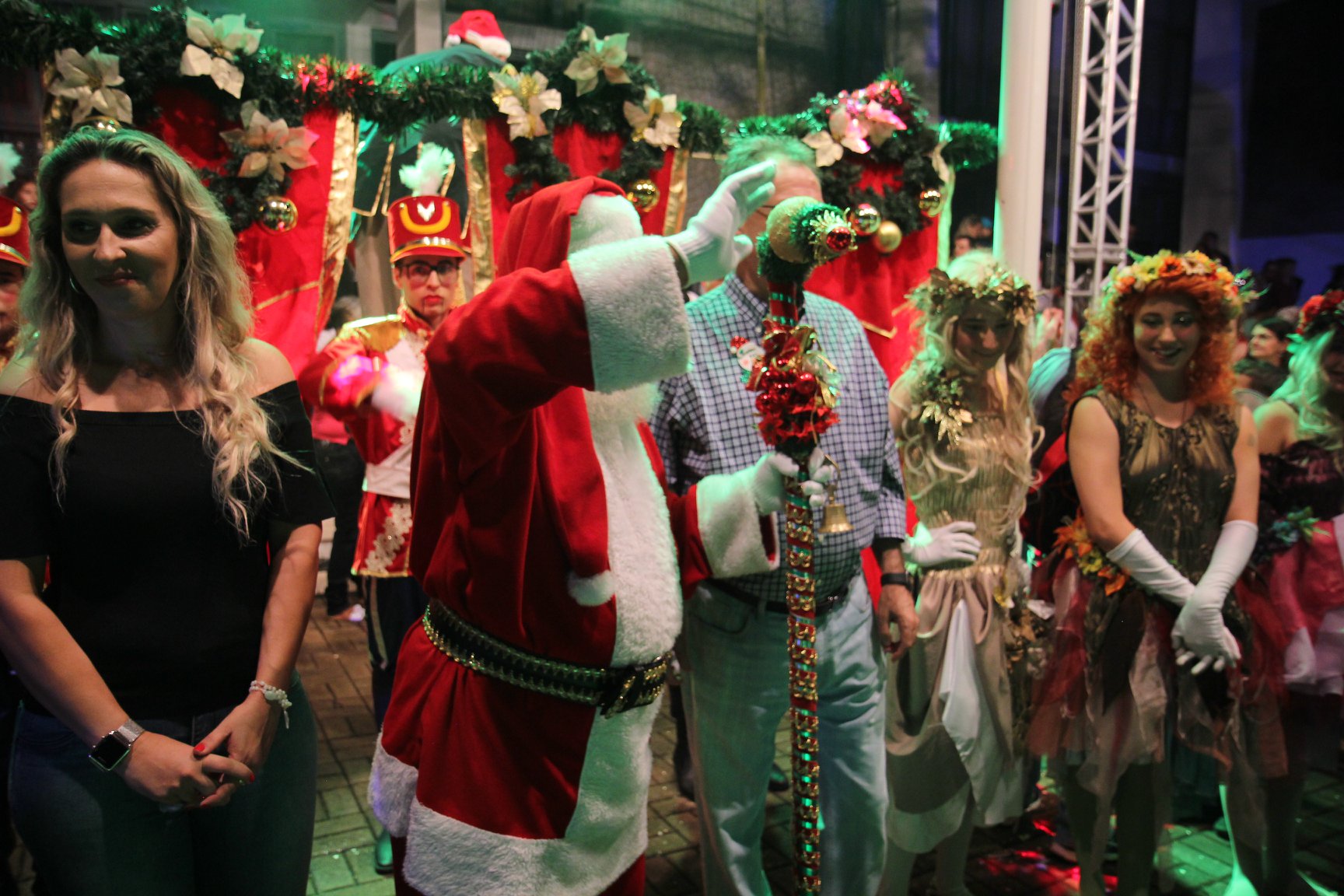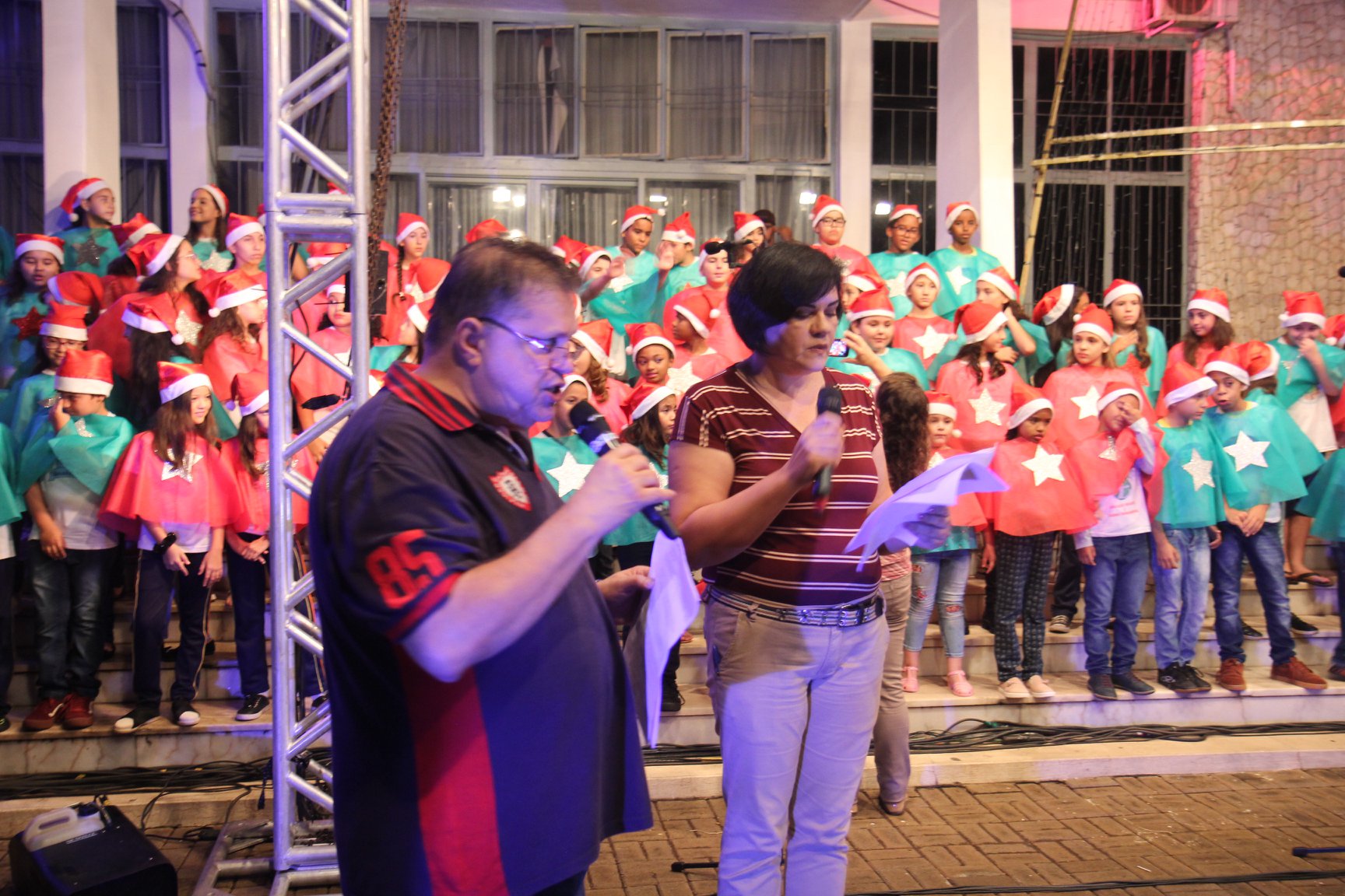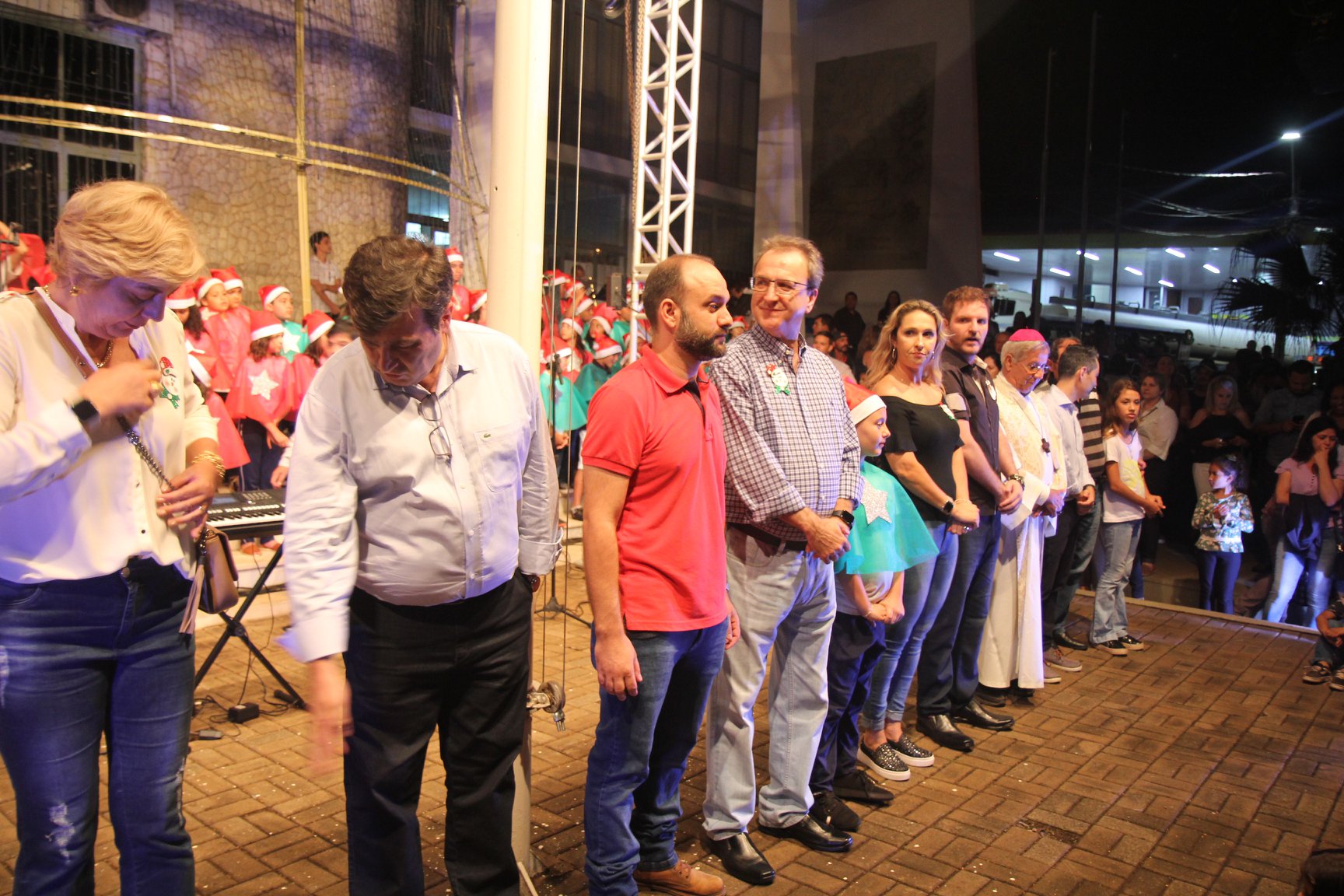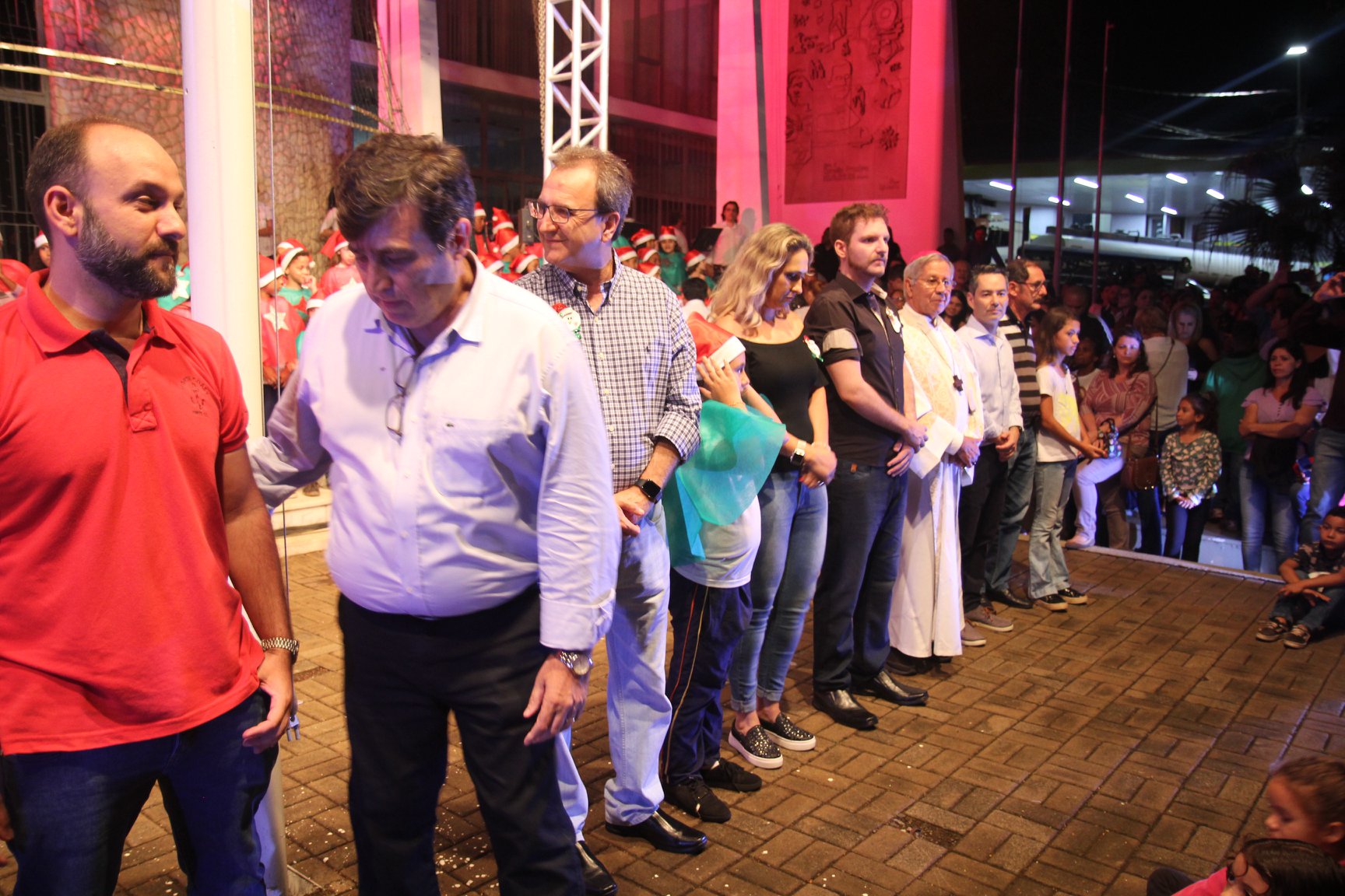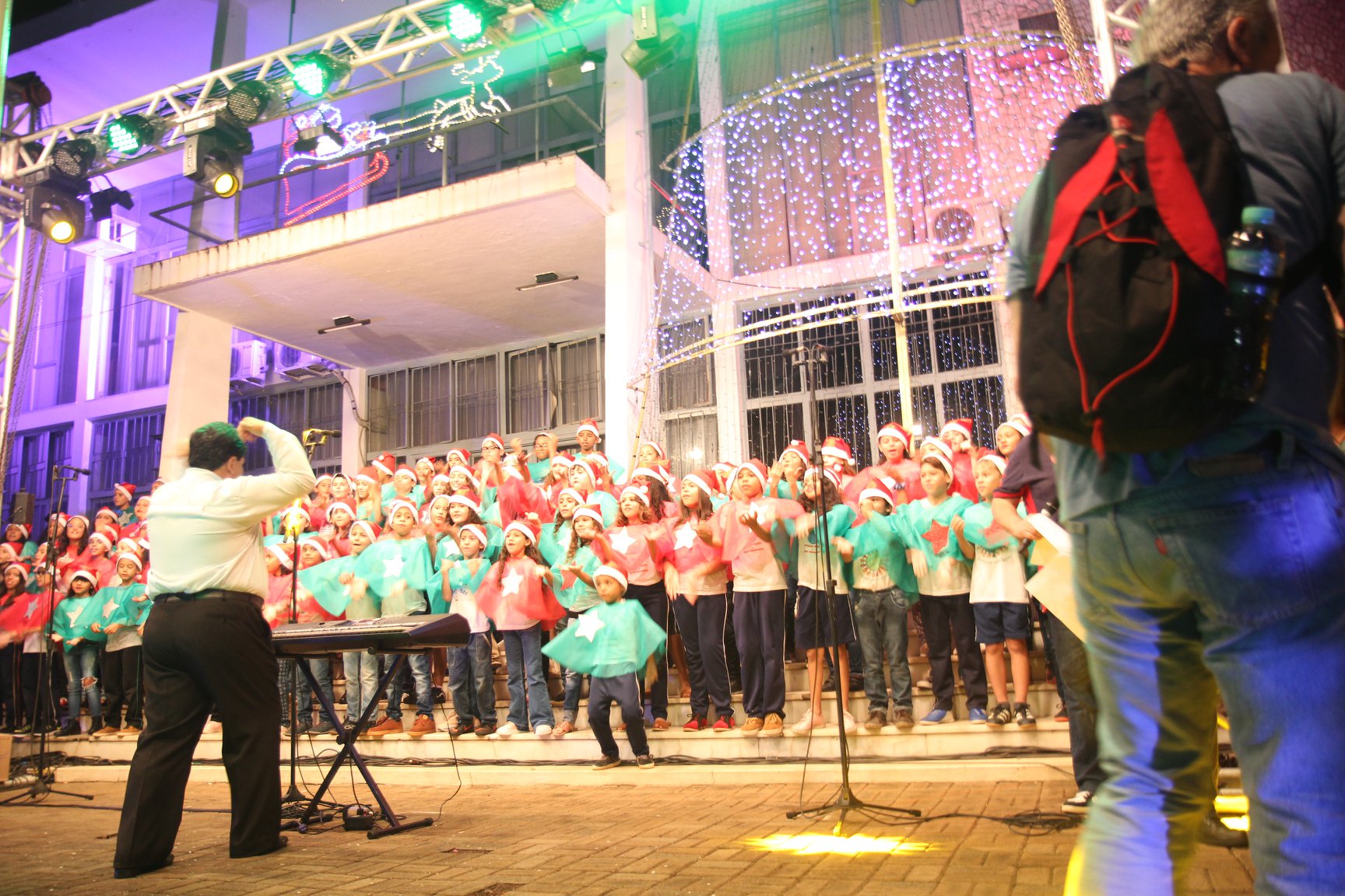 A participação muito aguardada pela população foi a apresentação do Coral formado pelos alunos das Escolas Municipais em tempo integral: Drº Acyr Ivo Carazzai; prof.ª Alice Correia Diniz; Prof. Ângelo Mazzarotto; Prof. Aníbal Campi; Prof. Atila Silveira Brasil; Vereador Damasco Adão Sotille; Prof.ª Eunice Gatti Gomes; Padre Antônio Lock; Noêmia Oliveira Bruno e Vitorino Gomes Henrique, regido pelo maestro Renato Navarro e sua equipe. O evento foi abençoado pelo Bispo Diocesano Dom Manuel Francisco, com a leitura do nascimento do menino Jesus, destacando o verdadeiro sentido do Natal. Foram várias cantigas de Natal que embalaram a todos tirando aplausos dos presentes. O ponto máximo da noite foi à chegada do Papai Noel com seus duendes, princesas e soldadinhos de chumbo. O prefeito Amin Hannouche, e a vice-prefeita Angélica Olchaneski, fizeram a entrega da chave para o Papai Noel e destacaram a alegria que sentiam neste momento em que o espírito natalino contagiava todos os corações. Estiveram presentes, o Presidente da Associação Comercial e Empresarial de nossa cidade, Fabiano Inoue, os Secretários municipais, Feira da Lua, Câmara de Vereadores representados pelos vereadores Dione Carlos, Sebastião Lucri e Luiz Carlos Amâncio, Rafael Hannouche e especialmente todas as famílias procopenses que deixaram suas casas e vieram com seus filhos para essa linda apresentação. Ainda nesta oportunidade foi apresentada a população a Unidade móvel Veterinária que logo mais estará atendendo os cães e gatos da cidade para a castração e cuidados básicos, em breve a cidade terá seu primeiro Centro de Recuperação de Cães e Gatos.