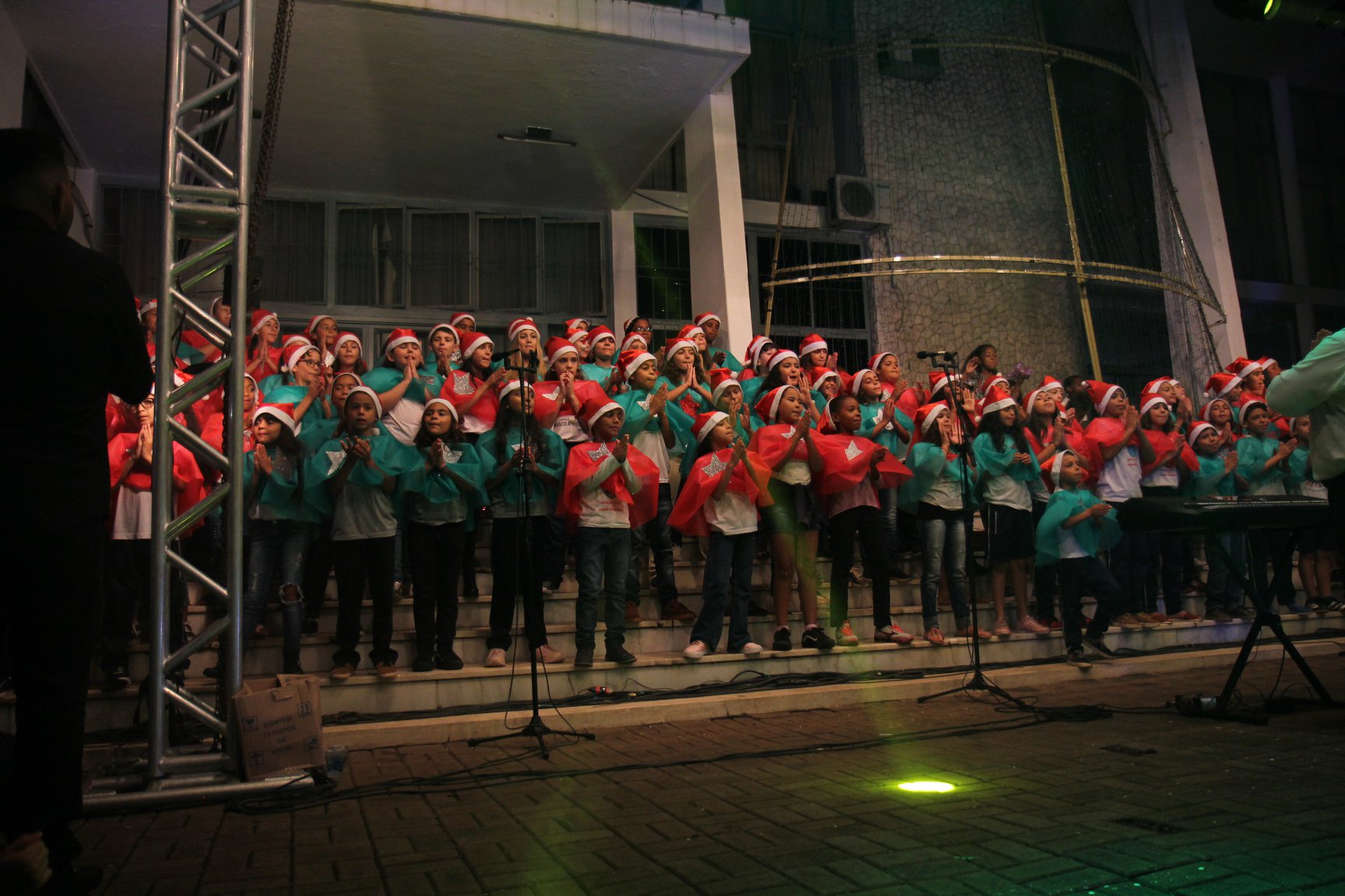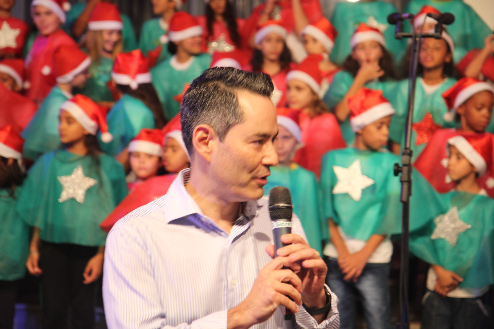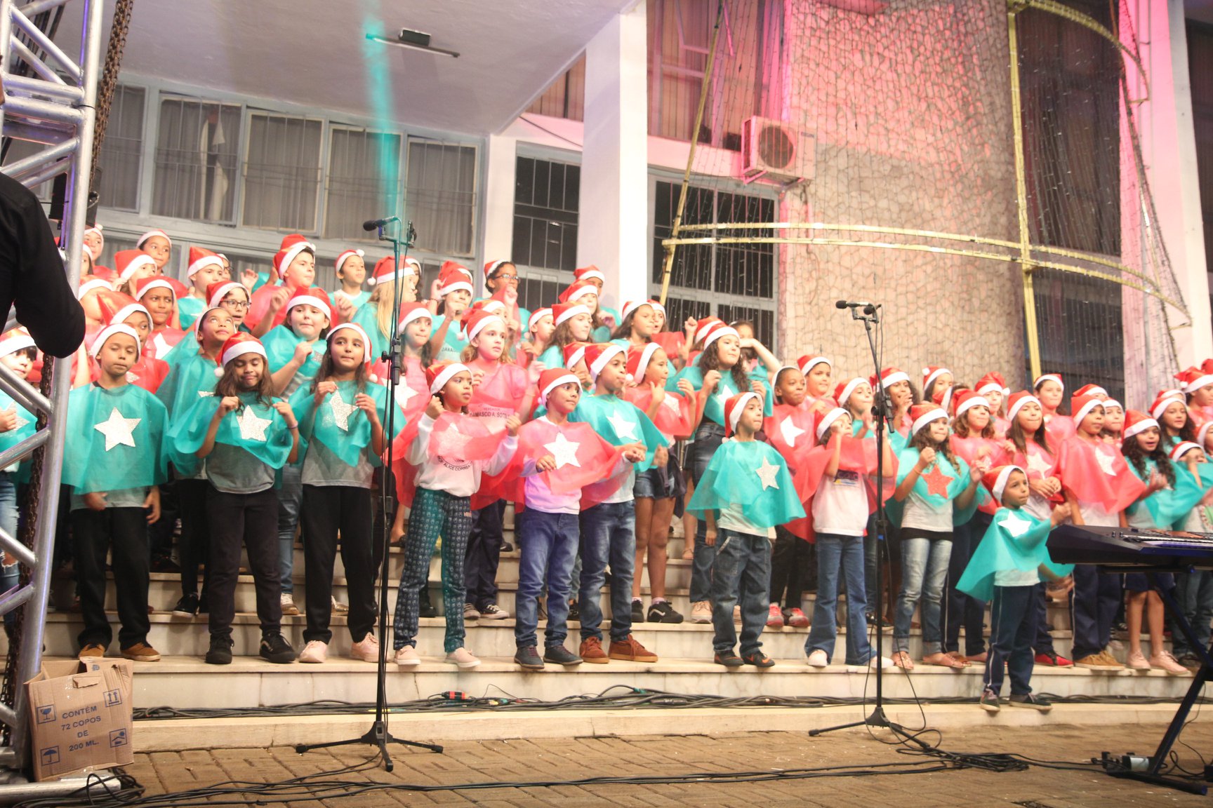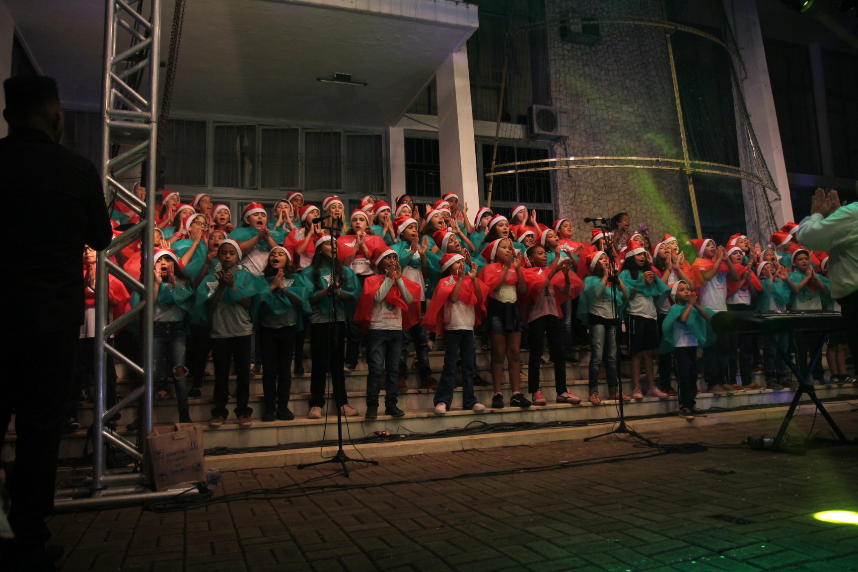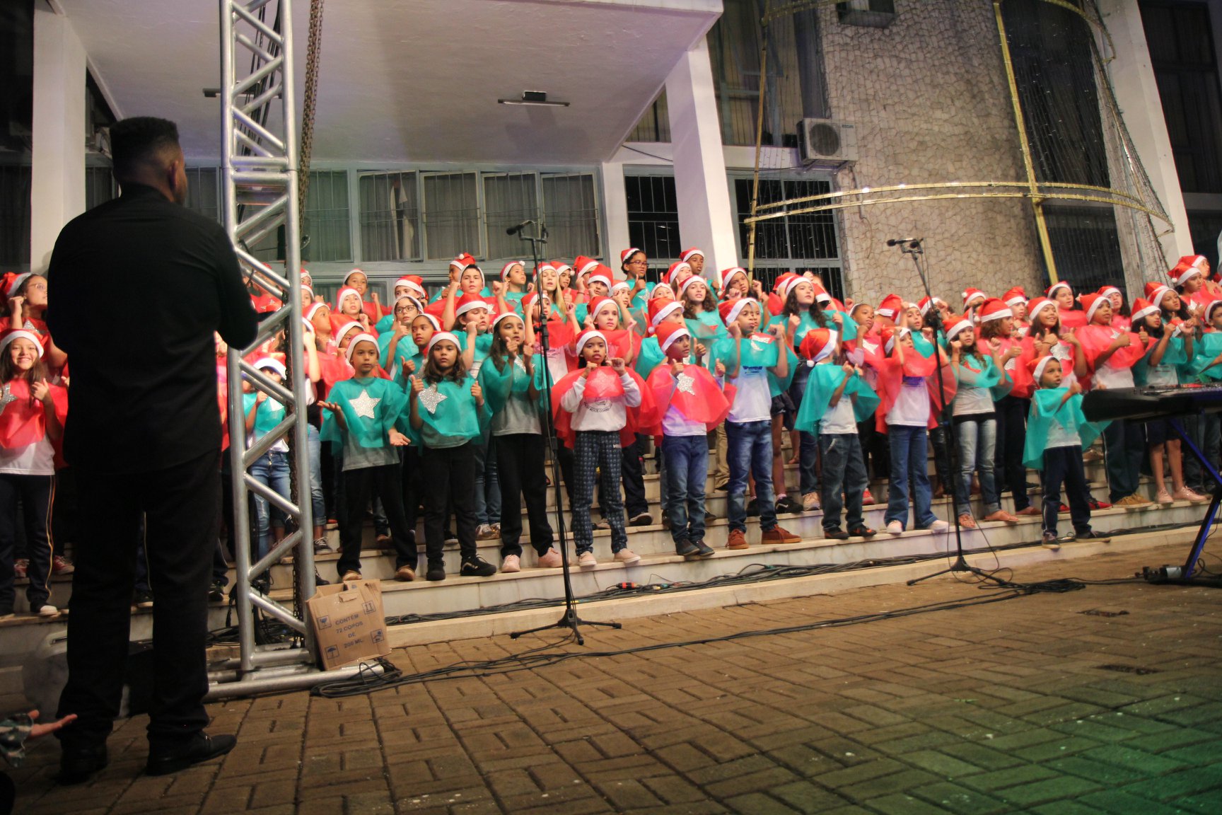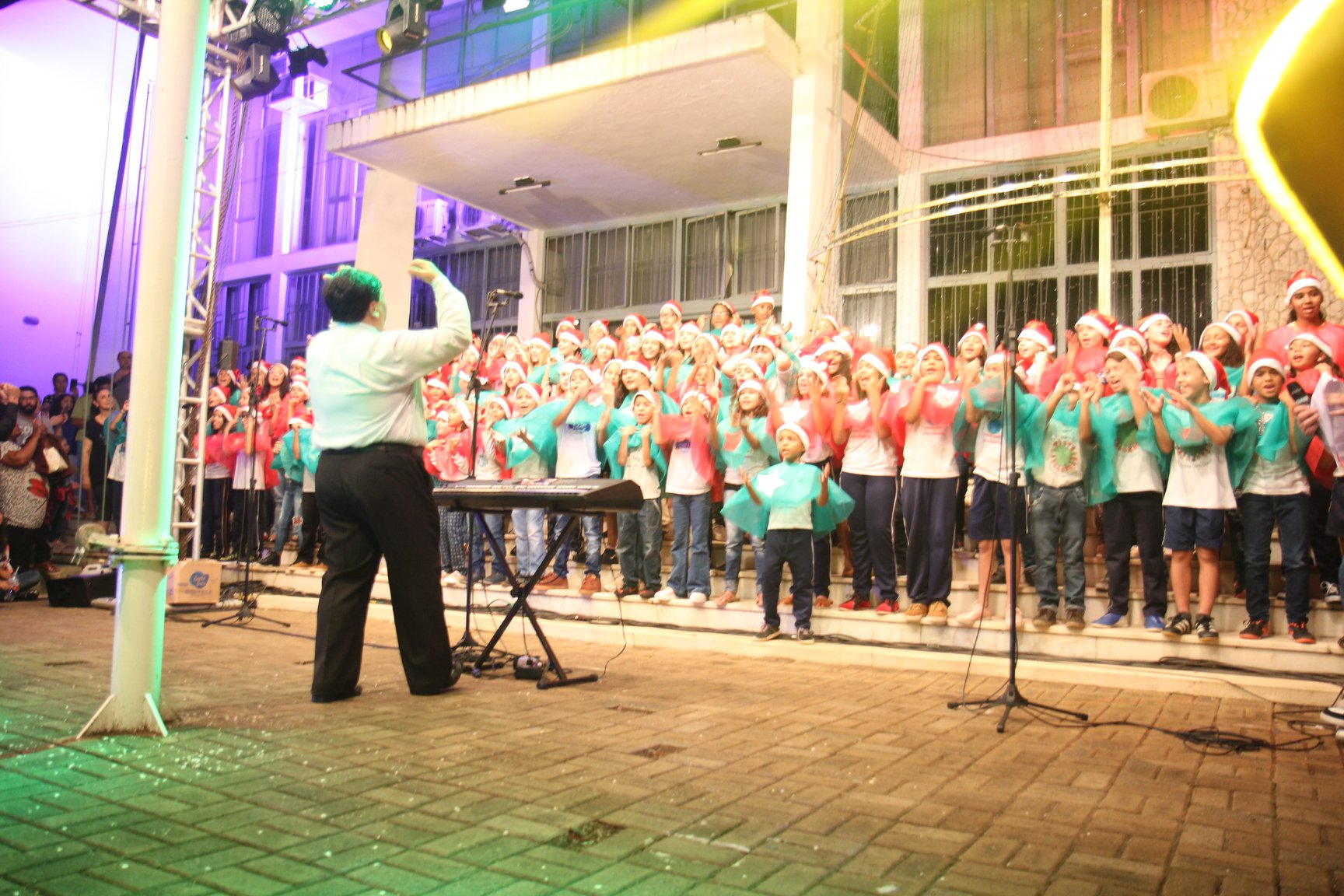 A participação muito aguardada pela população foi a apresentação do Coral formado pelos alunos das Escolas Municipais em tempo integral: Drº Acyr Ivo Carazzai; prof.ª Alice Correia Diniz; Prof. Ângelo Mazzarotto; Prof. Aníbal Campi; Prof. Atila Silveira Brasil; Vereador Damasco Adão Sotille; Prof.ª Eunice Gatti Gomes; Padre Antônio Lock; Noêmia Oliveira Bruno e Vitorino Gomes Henrique, regido pelo maestro Renato Navarro e sua equipe. O evento foi abençoado pelo Bispo Diocesano Dom Manuel Francisco, com a leitura do nascimento do menino Jesus, destacando o verdadeiro sentido do Natal. Foram várias cantigas de Natal que embalaram a todos tirando aplausos dos presentes. O ponto máximo da noite foi à chegada do Papai Noel com seus duendes, princesas e soldadinhos de chumbo. O prefeito Amin Hannouche, e a vice-prefeita Angélica Olchaneski, fizeram a entrega da chave para o Papai Noel e destacaram a alegria que sentiam neste momento em que o espírito natalino contagiava todos os corações. Estiveram presentes, o Presidente da Associação Comercial e Empresarial de nossa cidade, Fabiano Inoue, os Secretários municipais, Feira da Lua, Câmara de Vereadores representados pelos vereadores Dione Carlos, Sebastião Lucri e Luiz Carlos Amâncio, Rafael Hannouche e especialmente todas as famílias procopenses que deixaram suas casas e vieram com seus filhos para essa linda apresentação. Ainda nesta oportunidade foi apresentada a população a Unidade móvel Veterinária que logo mais estará atendendo os cães e gatos da cidade para a castração e cuidados básicos, em breve a cidade terá seu primeiro Centro de Recuperação de Cães e Gatos.