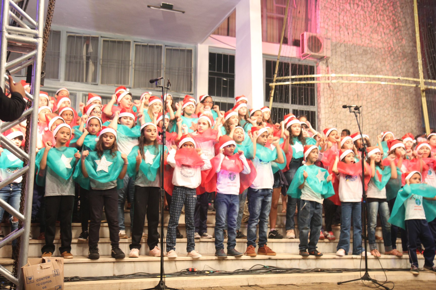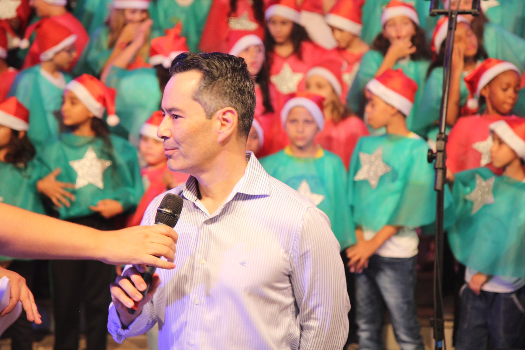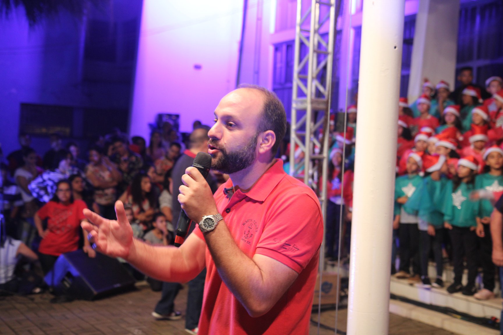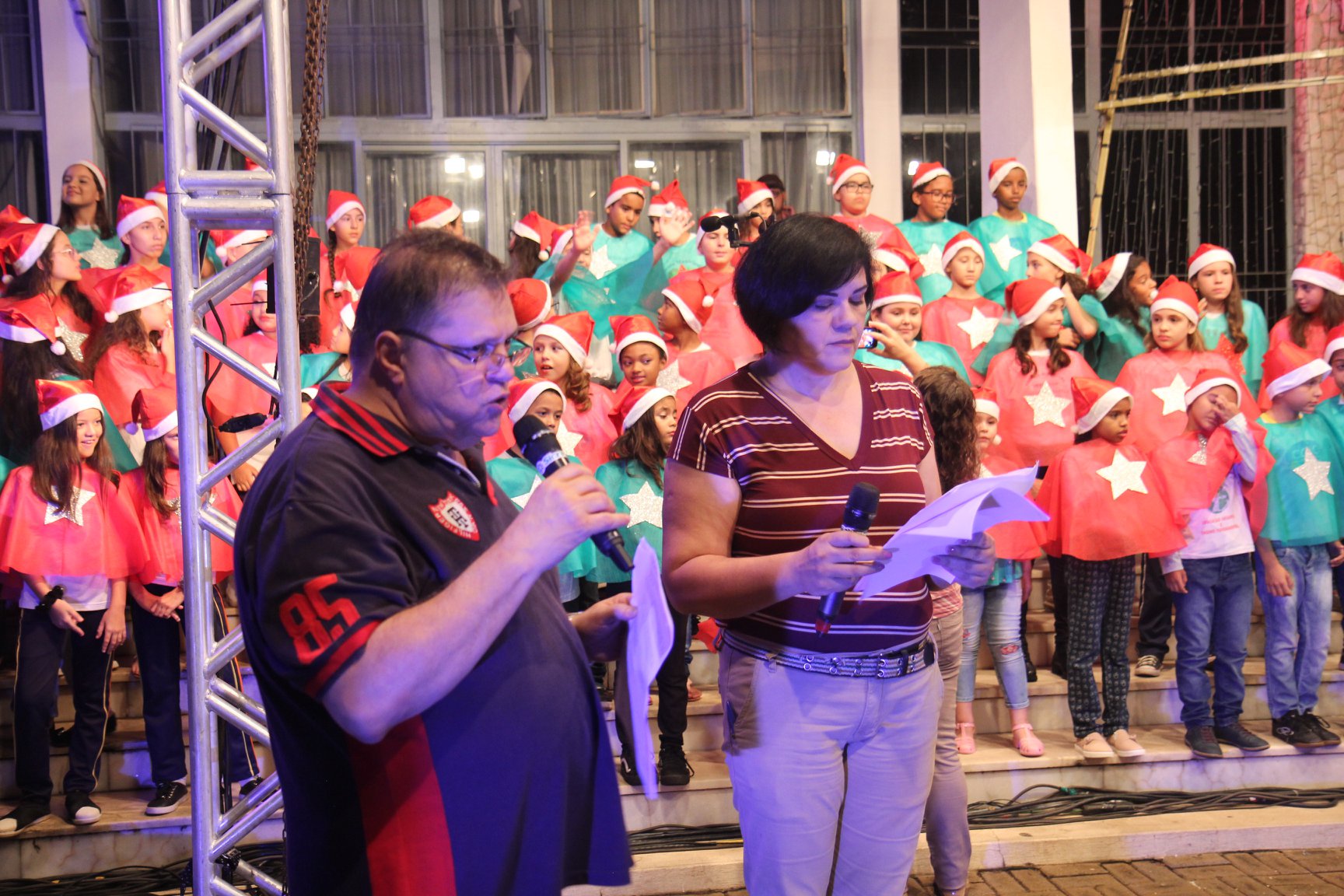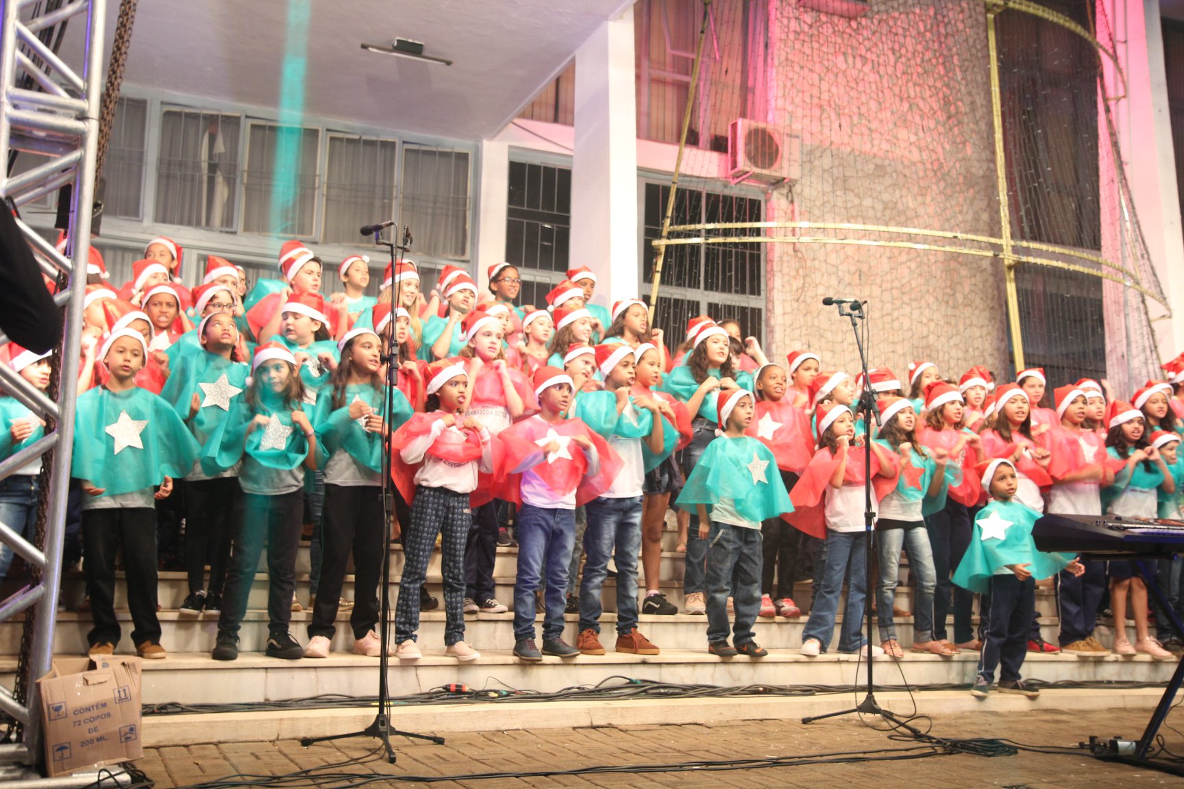 A participação muito aguardada pela população foi a apresentação do Coral formado pelos alunos das Escolas Municipais em tempo integral: Drº Acyr Ivo Carazzai; prof.ª Alice Correia Diniz; Prof. Ângelo Mazzarotto; Prof. Aníbal Campi; Prof. Atila Silveira Brasil; Vereador Damasco Adão Sotille; Prof.ª Eunice Gatti Gomes; Padre Antônio Lock; Noêmia Oliveira Bruno e Vitorino Gomes Henrique, regido pelo maestro Renato Navarro e sua equipe. O evento foi abençoado pelo Bispo Diocesano Dom Manuel Francisco, com a leitura do nascimento do menino Jesus, destacando o verdadeiro sentido do Natal. Foram várias cantigas de Natal que embalaram a todos tirando aplausos dos presentes. O ponto máximo da noite foi à chegada do Papai Noel com seus duendes, princesas e soldadinhos de chumbo. O prefeito Amin Hannouche, e a vice-prefeita Angélica Olchaneski, fizeram a entrega da chave para o Papai Noel e destacaram a alegria que sentiam neste momento em que o espírito natalino contagiava todos os corações. Estiveram presentes, o Presidente da Associação Comercial e Empresarial de nossa cidade, Fabiano Inoue, os Secretários municipais, Feira da Lua, Câmara de Vereadores representados pelos vereadores Dione Carlos, Sebastião Lucri e Luiz Carlos Amâncio, Rafael Hannouche e especialmente todas as famílias procopenses que deixaram suas casas e vieram com seus filhos para essa linda apresentação. Ainda nesta oportunidade foi apresentada a população a Unidade móvel Veterinária que logo mais estará atendendo os cães e gatos da cidade para a castração e cuidados básicos, em breve a cidade terá seu primeiro Centro de Recuperação de Cães e Gatos.
