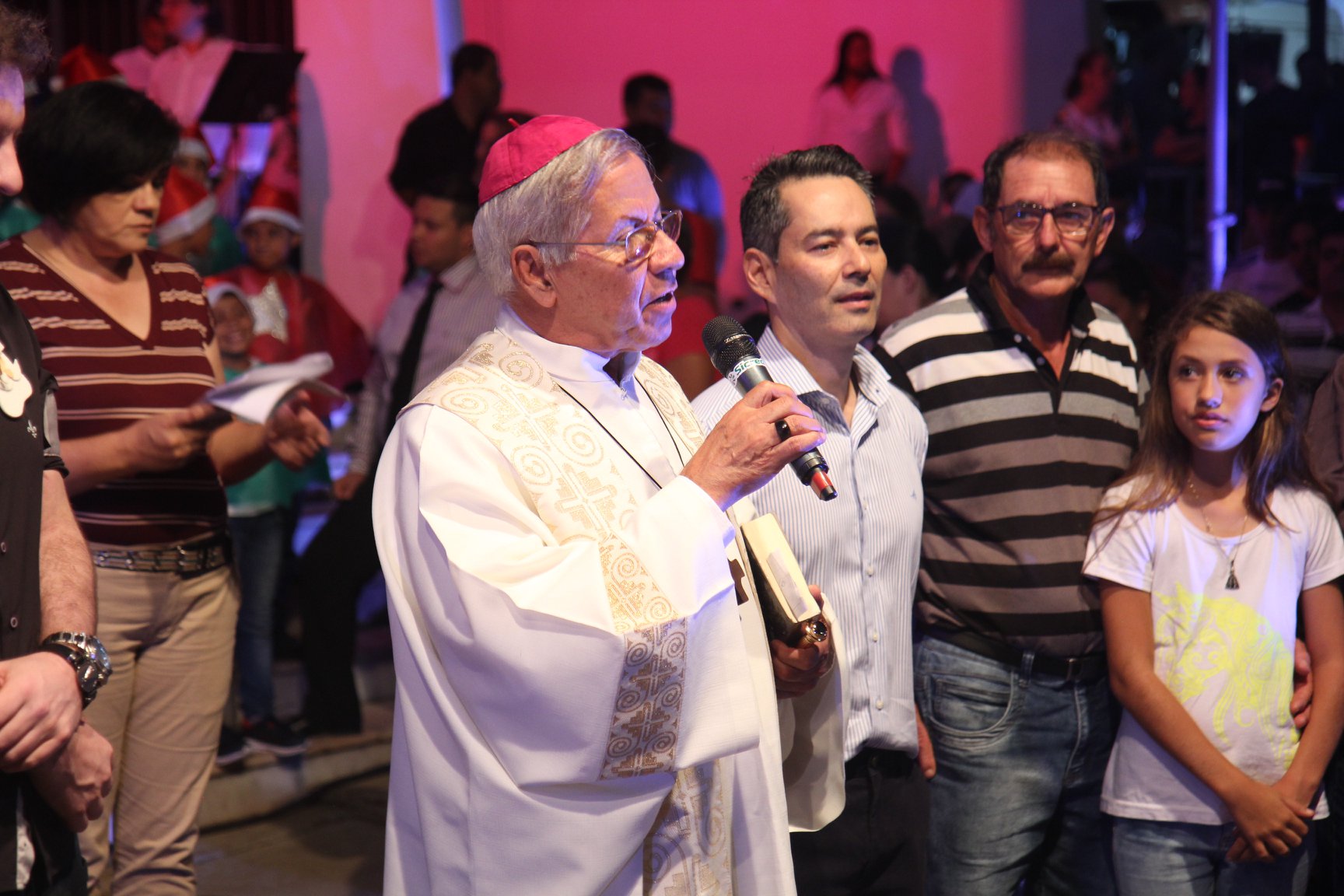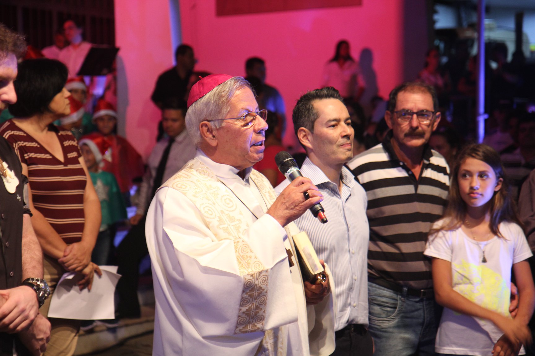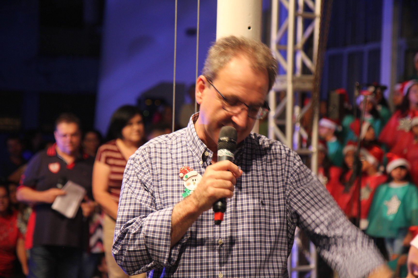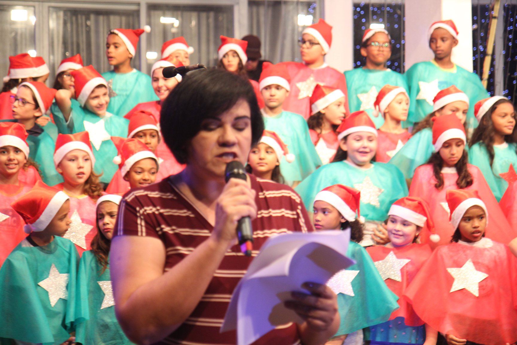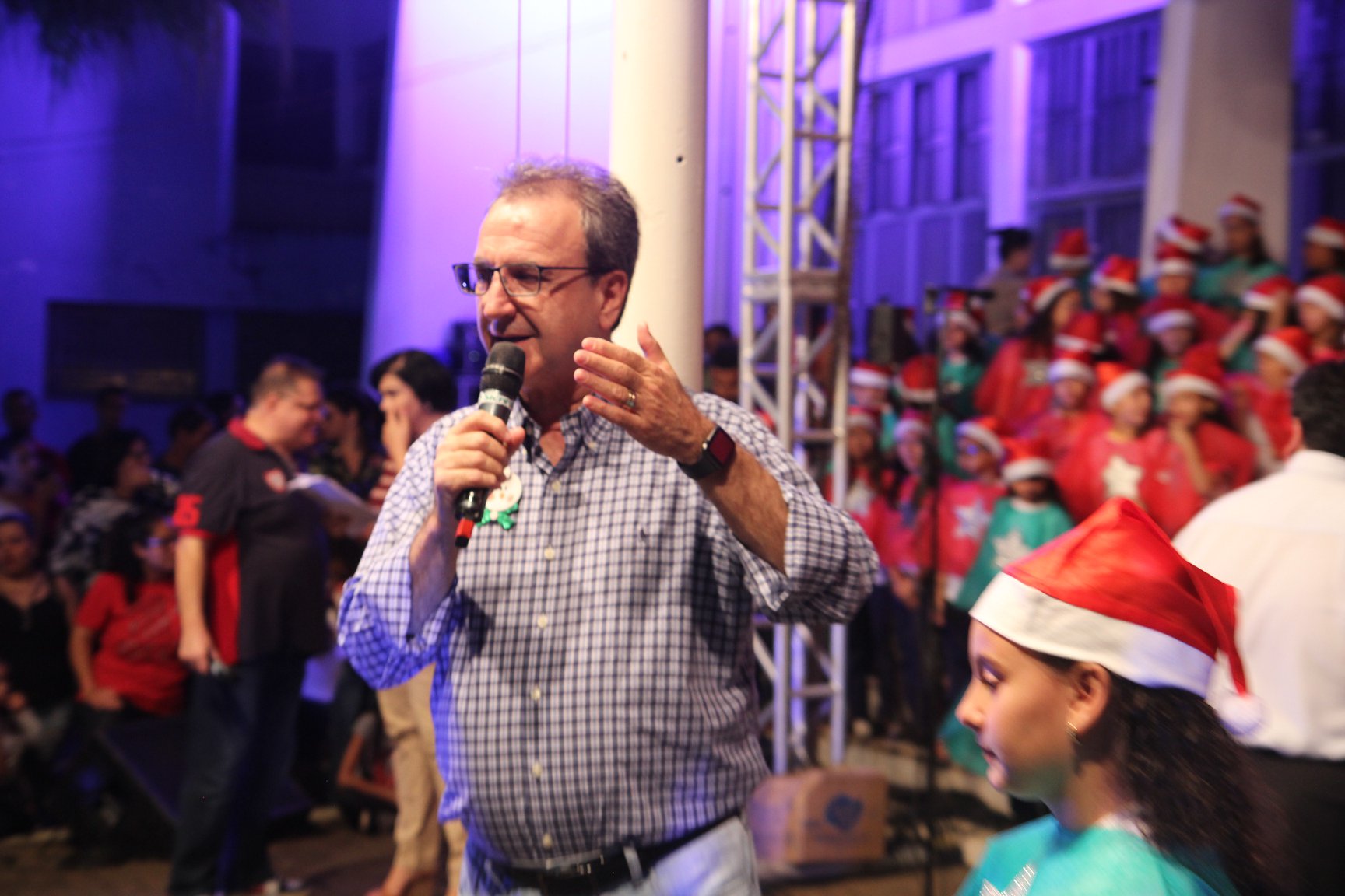 A participação muito aguardada pela população foi a apresentação do Coral formado pelos alunos das Escolas Municipais em tempo integral: Drº Acyr Ivo Carazzai; prof.ª Alice Correia Diniz; Prof. Ângelo Mazzarotto; Prof. Aníbal Campi; Prof. Atila Silveira Brasil; Vereador Damasco Adão Sotille; Prof.ª Eunice Gatti Gomes; Padre Antônio Lock; Noêmia Oliveira Bruno e Vitorino Gomes Henrique, regido pelo maestro Renato Navarro e sua equipe. O evento foi abençoado pelo Bispo Diocesano Dom Manuel Francisco, com a leitura do nascimento do menino Jesus, destacando o verdadeiro sentido do Natal. Foram várias cantigas de Natal que embalaram a todos tirando aplausos dos presentes. O ponto máximo da noite foi à chegada do Papai Noel com seus duendes, princesas e soldadinhos de chumbo. O prefeito Amin Hannouche, e a vice-prefeita Angélica Olchaneski, fizeram a entrega da chave para o Papai Noel e destacaram a alegria que sentiam neste momento em que o espírito natalino contagiava todos os corações. Estiveram presentes, o Presidente da Associação Comercial e Empresarial de nossa cidade, Fabiano Inoue, os Secretários municipais, Feira da Lua, Câmara de Vereadores representados pelos vereadores Dione Carlos, Sebastião Lucri e Luiz Carlos Amâncio, Rafael Hannouche e especialmente todas as famílias procopenses que deixaram suas casas e vieram com seus filhos para essa linda apresentação. Ainda nesta oportunidade foi apresentada a população a Unidade móvel Veterinária que logo mais estará atendendo os cães e gatos da cidade para a castração e cuidados básicos, em breve a cidade terá seu primeiro Centro de Recuperação de Cães e Gatos.