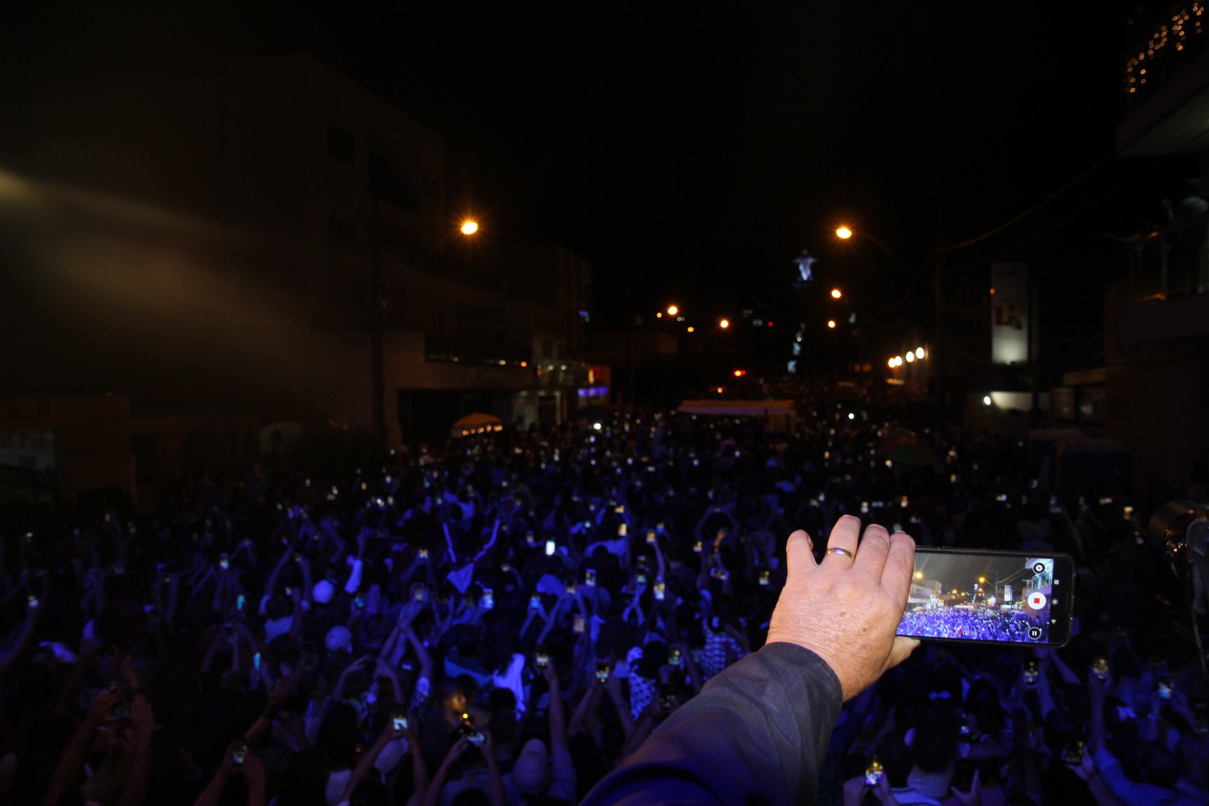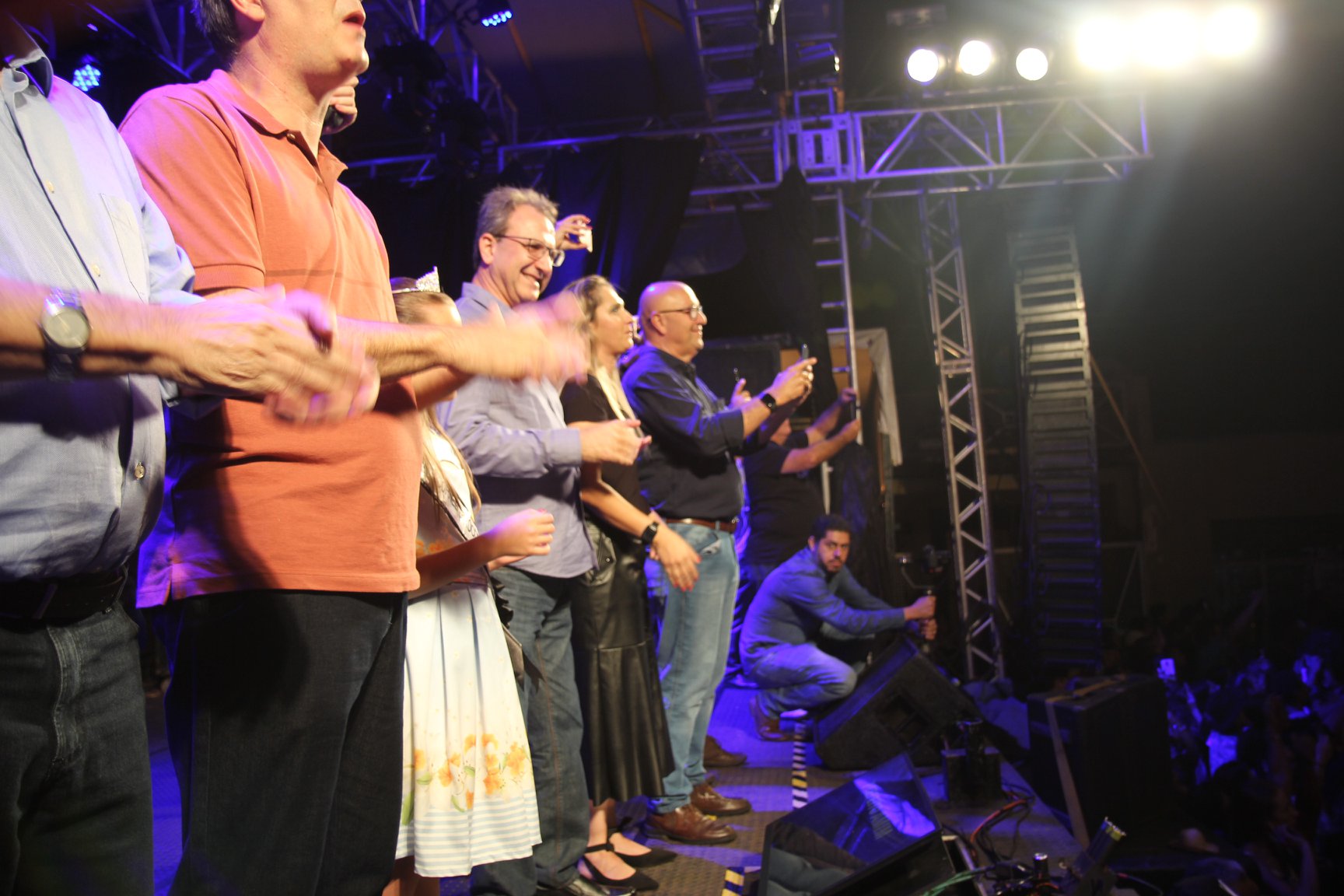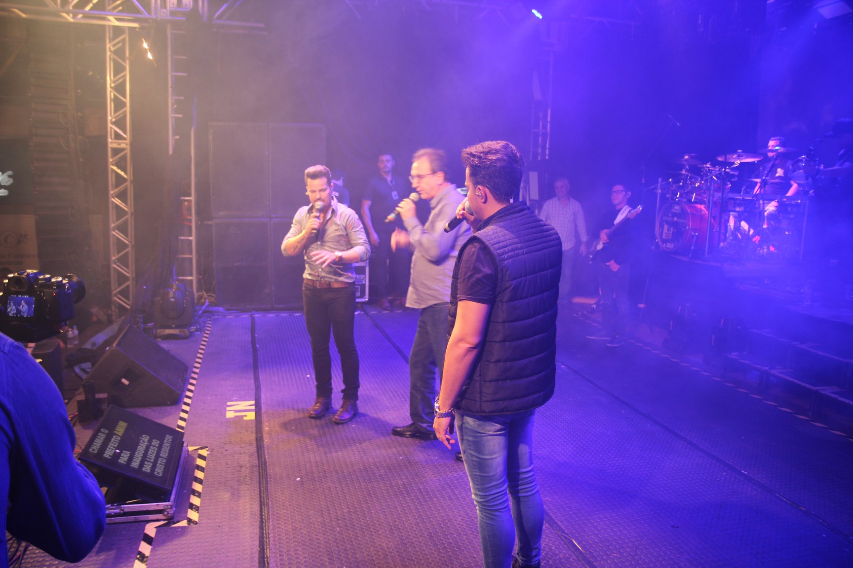 Neste sábado (14), uma grande multidão se reuniu em frente ao Ginásio de Esportes Quinzão, para a inauguração da nova iluminação do Monumento Cristo Rei. A inauguração contou com um super show da dupla João Neto e Frederico, que animou toda a população de Cornélio Procópio e região que prestigiou o evento. Estiveram presentes, o prefeito Amin Hannouche, vice-prefeita Angélica Olchaneski, deputado Estadual Luiz Claudio Romanelli, o presidente da Câmara de Vereadores, Edmar Gomes Filho, vereador Rafael Hannouche, vereador Gilmar Lavorato e o vereador Luiz Carlos Amâncio representando todo o Legislativo e demais autoridades.