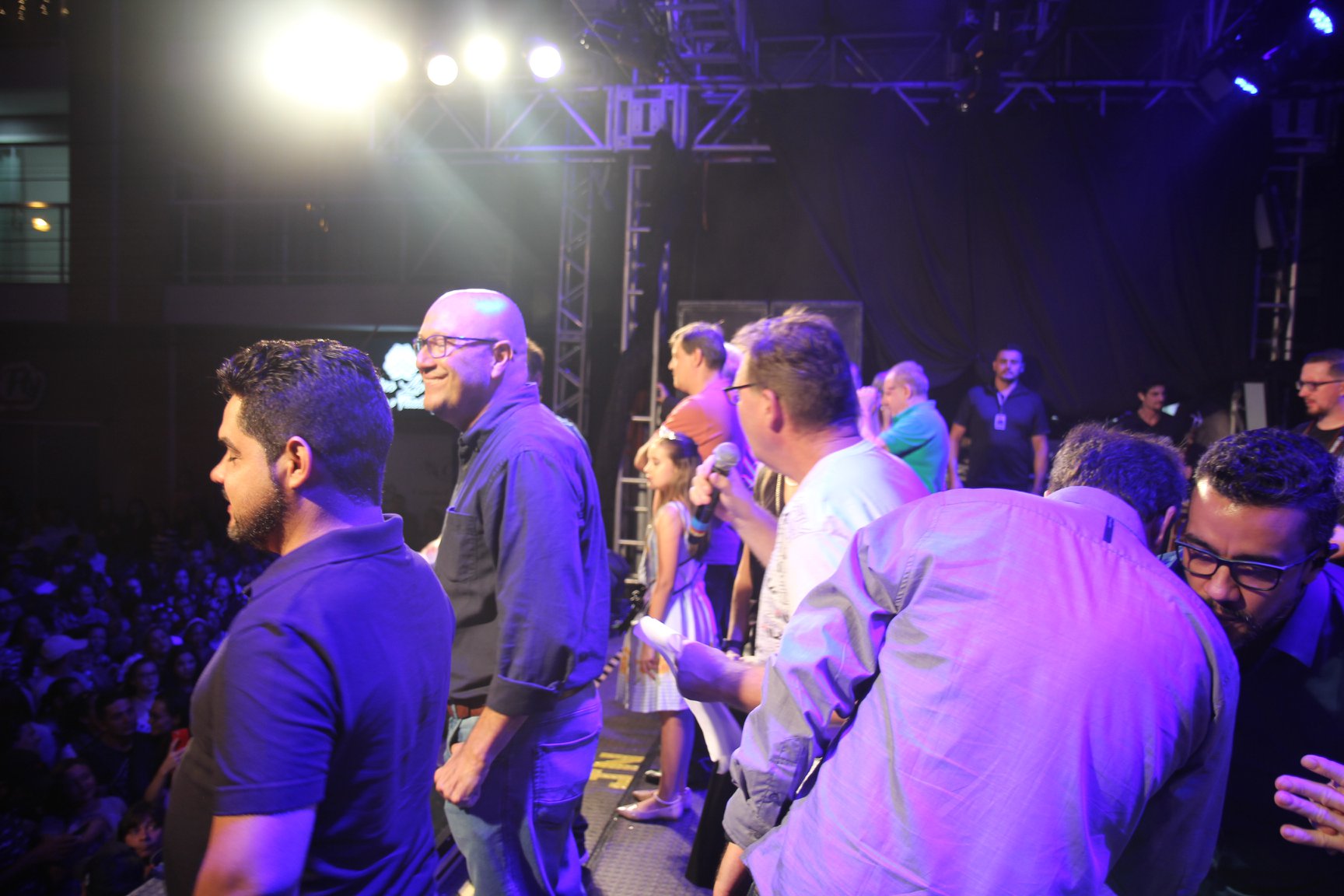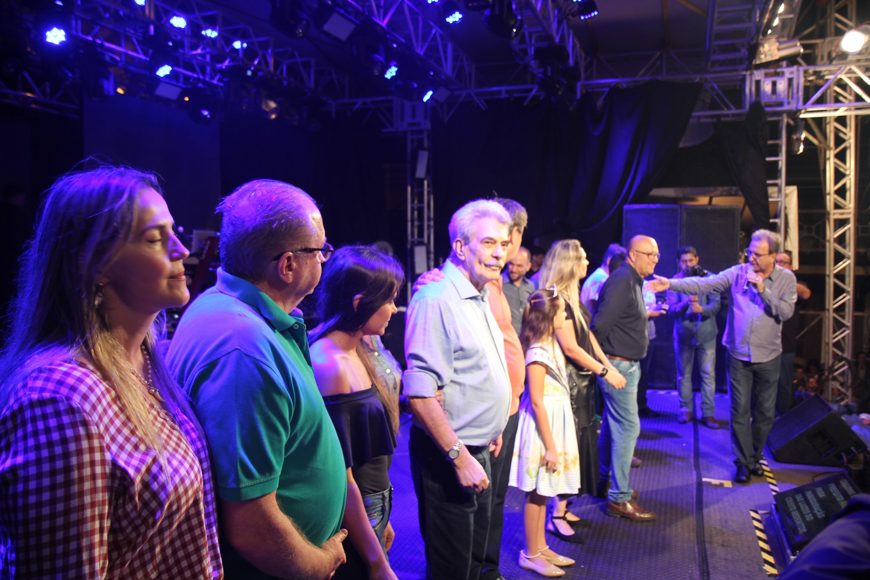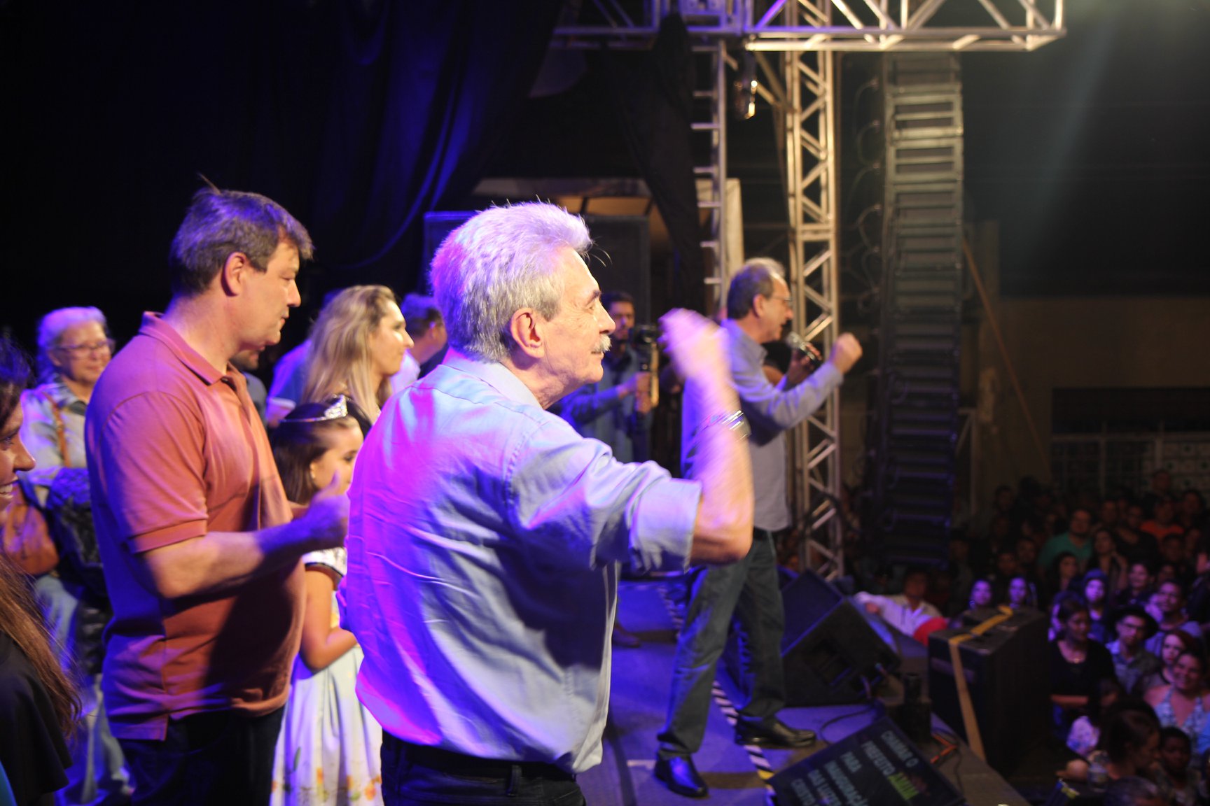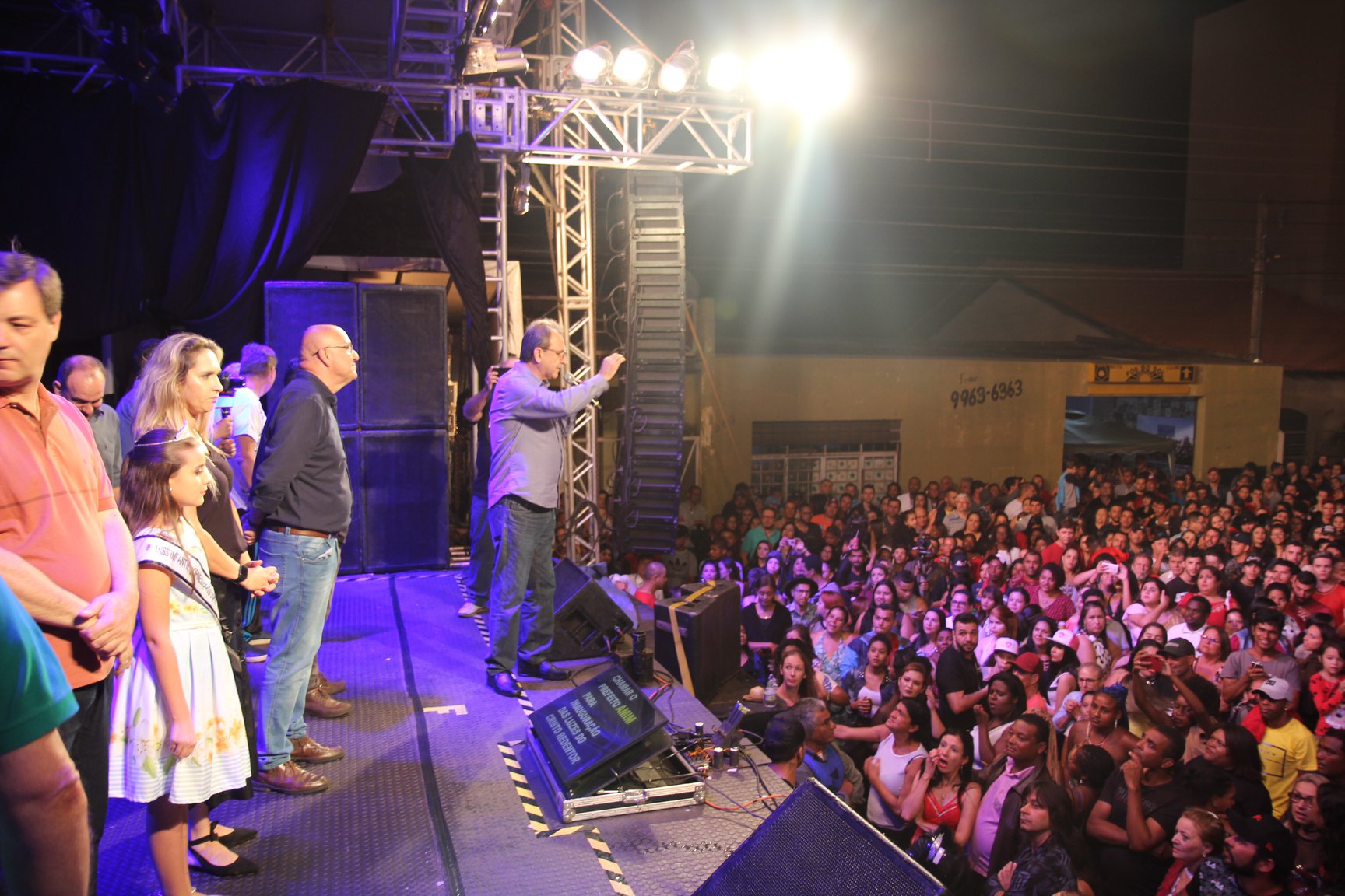 Neste sábado (14), uma grande multidão se reuniu em frente ao Ginásio de Esportes Quinzão, para a inauguração da nova iluminação do Monumento Cristo Rei. A inauguração contou com um super show da dupla João Neto e Frederico, que animou toda a população de Cornélio Procópio e região que prestigiou o evento. Estiveram presentes, o prefeito Amin Hannouche, vice-prefeita Angélica Olchaneski, deputado Estadual Luiz Claudio Romanelli, o presidente da Câmara de Vereadores, Edmar Gomes Filho, vereador Rafael Hannouche, vereador Gilmar Lavorato e o vereador Luiz Carlos Amâncio representando todo o Legislativo e demais autoridades.