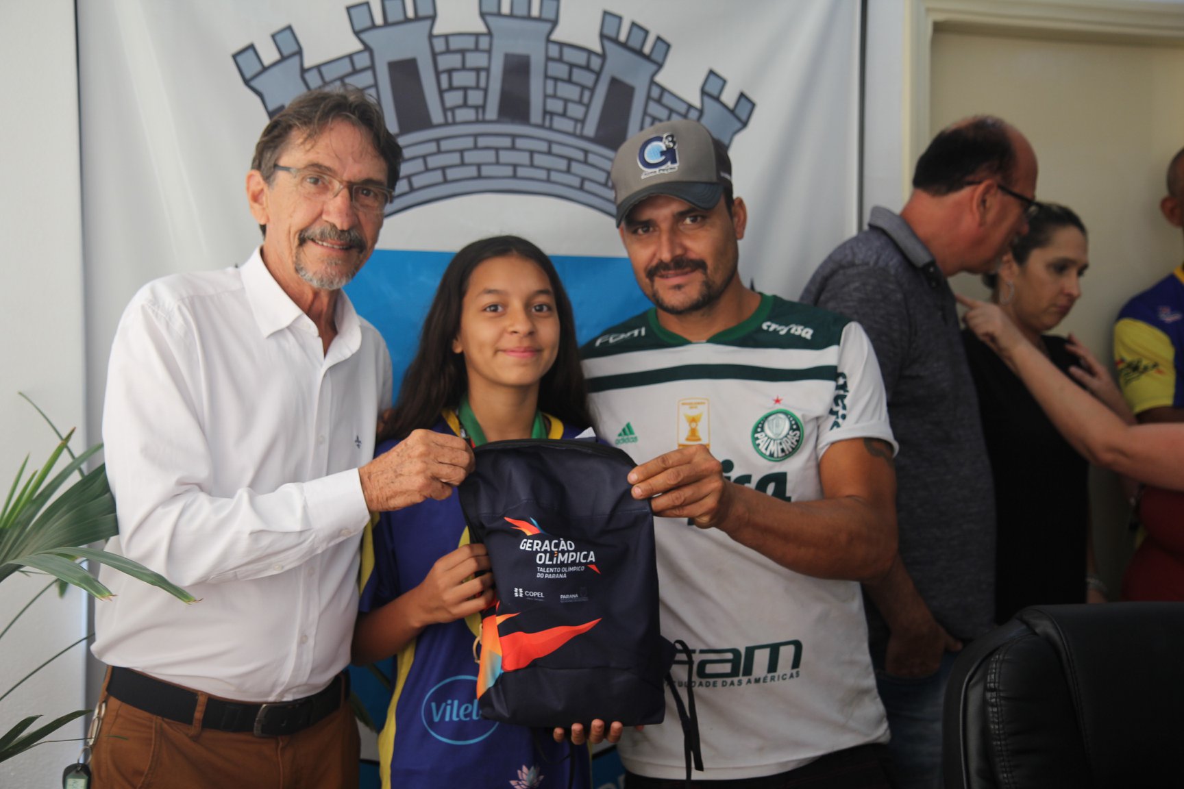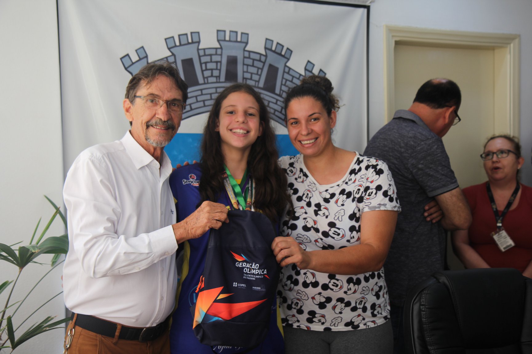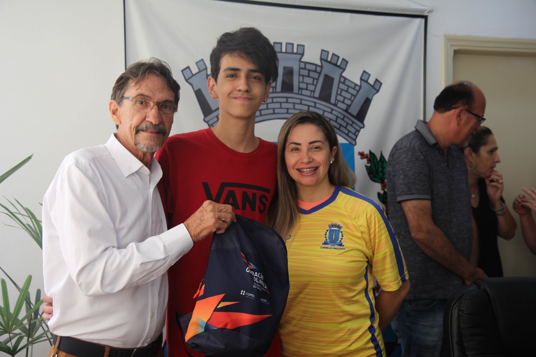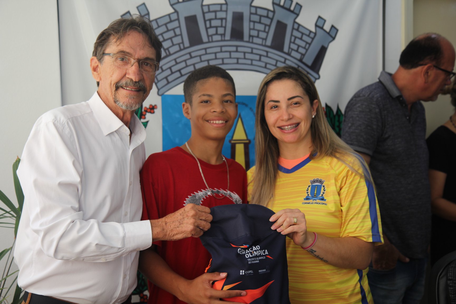 Os atletas foram recepcionados no gabinete da prefeitura de Cornélio Procópio, e receberam kits esportivos