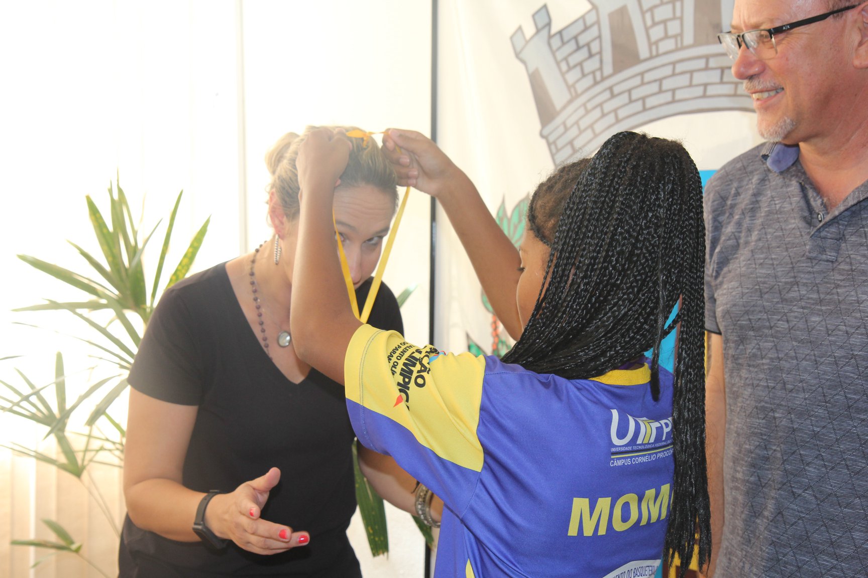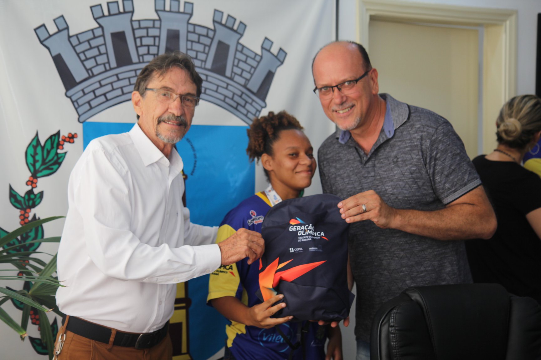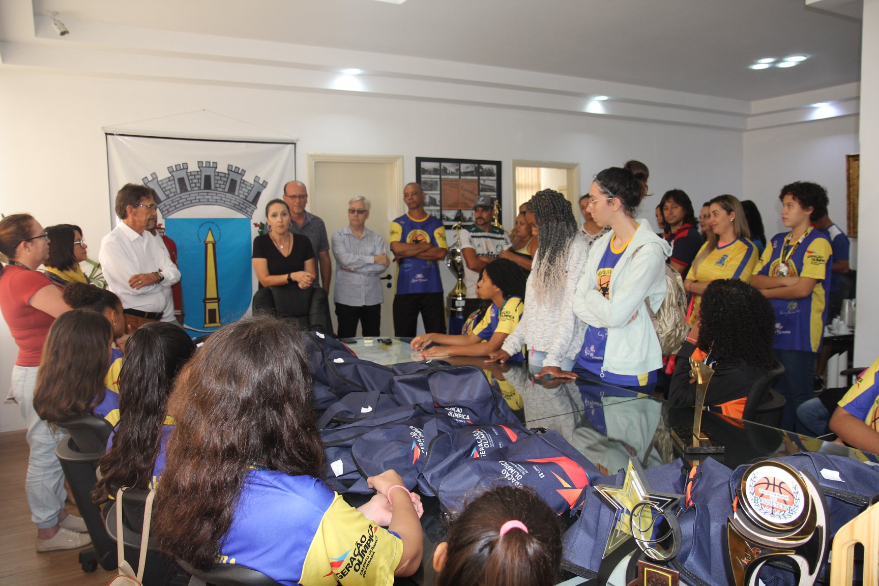 Os atletas foram recepcionados no gabinete da prefeitura de Cornélio Procópio, e receberam kits esportivos