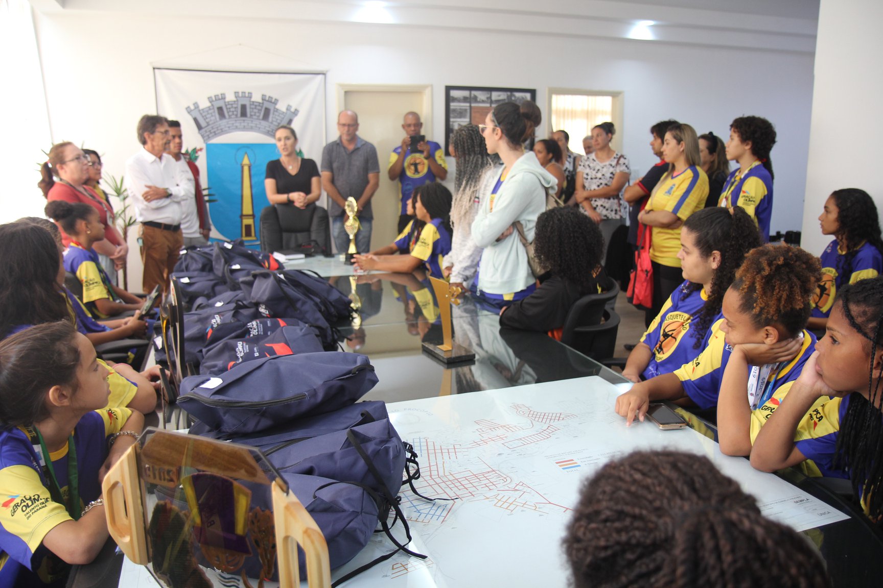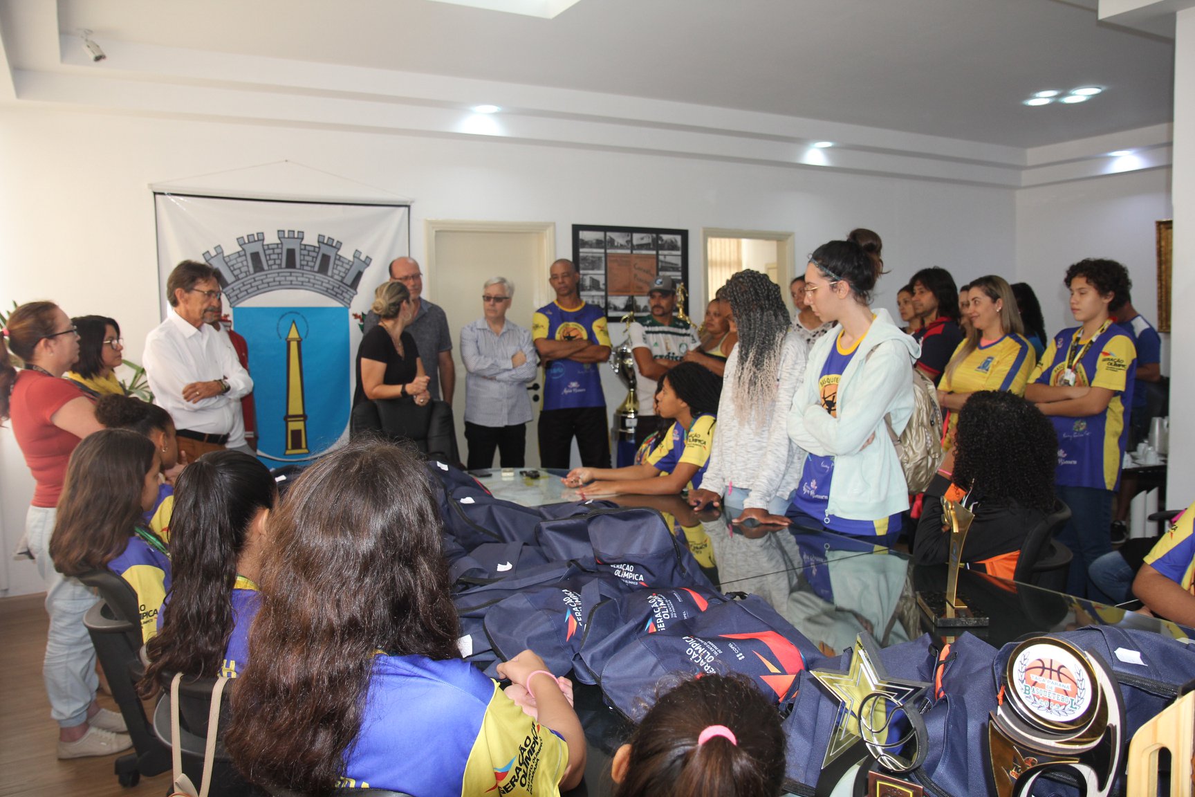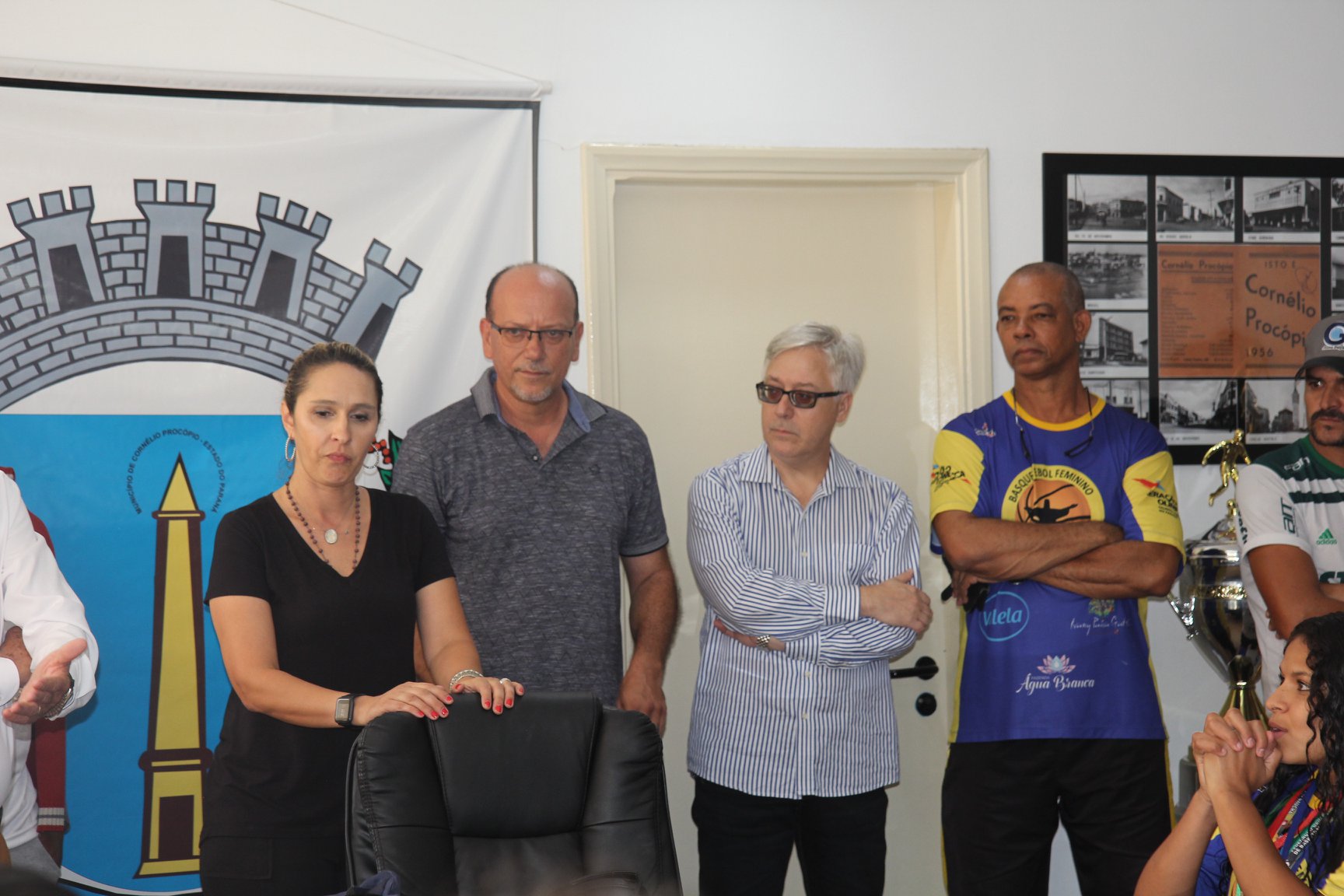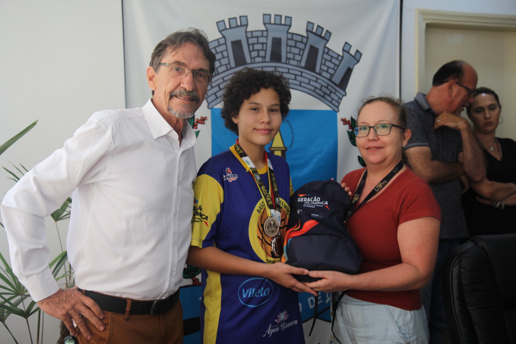 Os atletas foram recepcionados no gabinete da prefeitura de Cornélio Procópio, e receberam kits esportivos