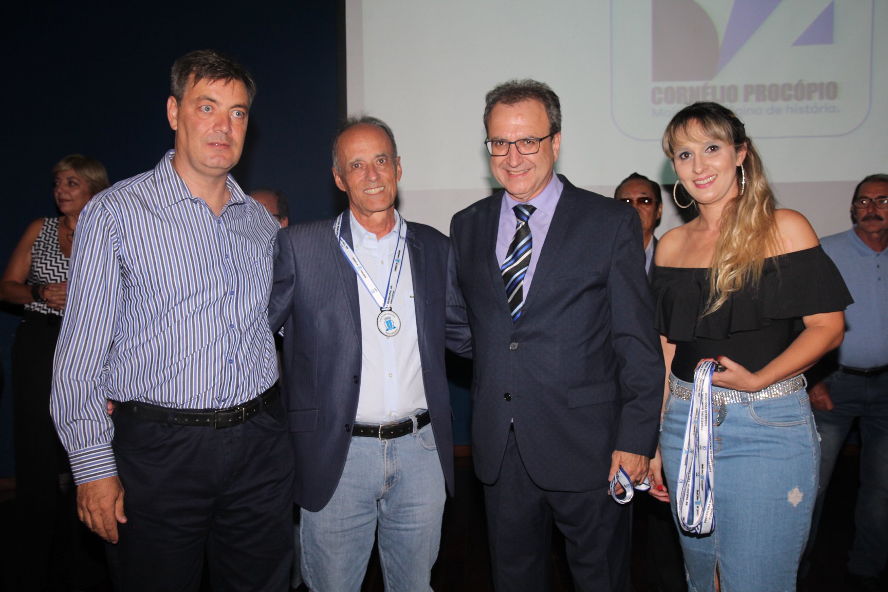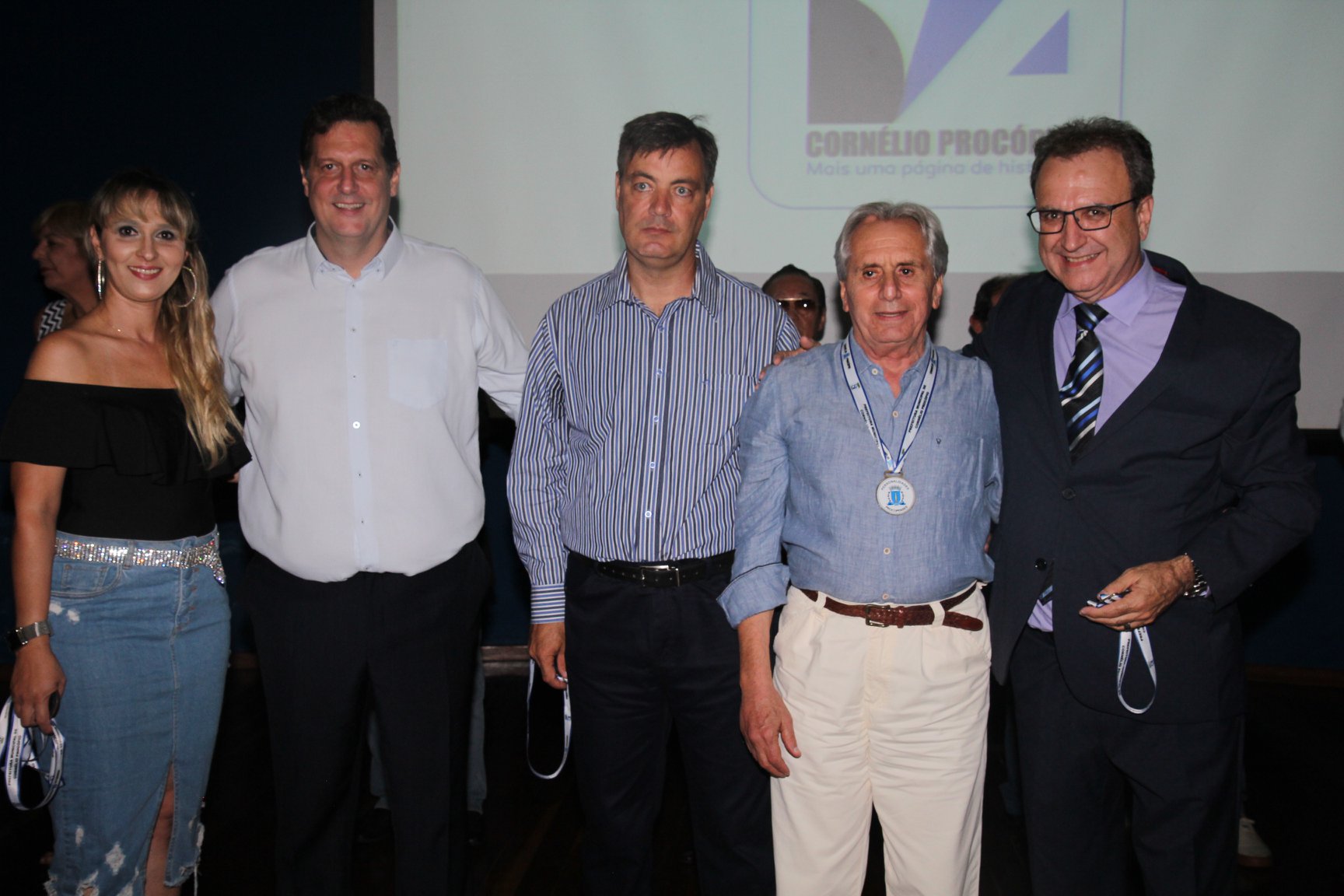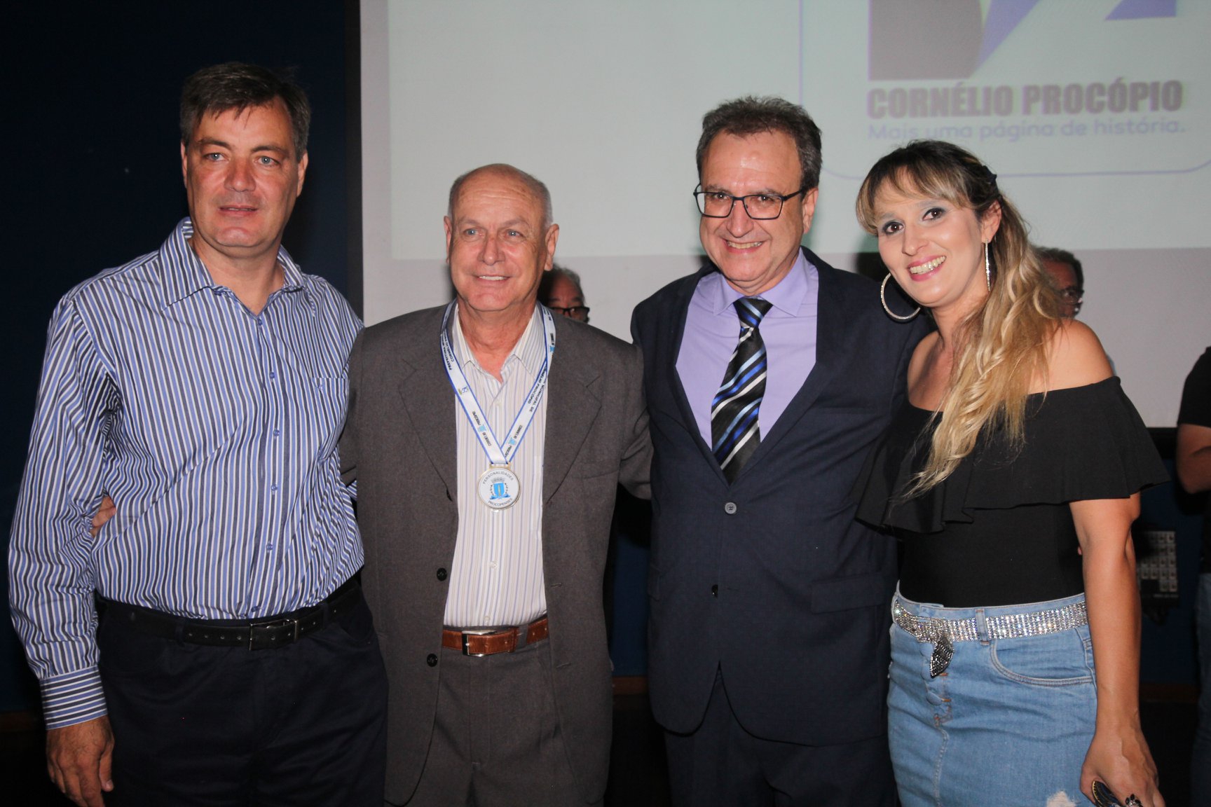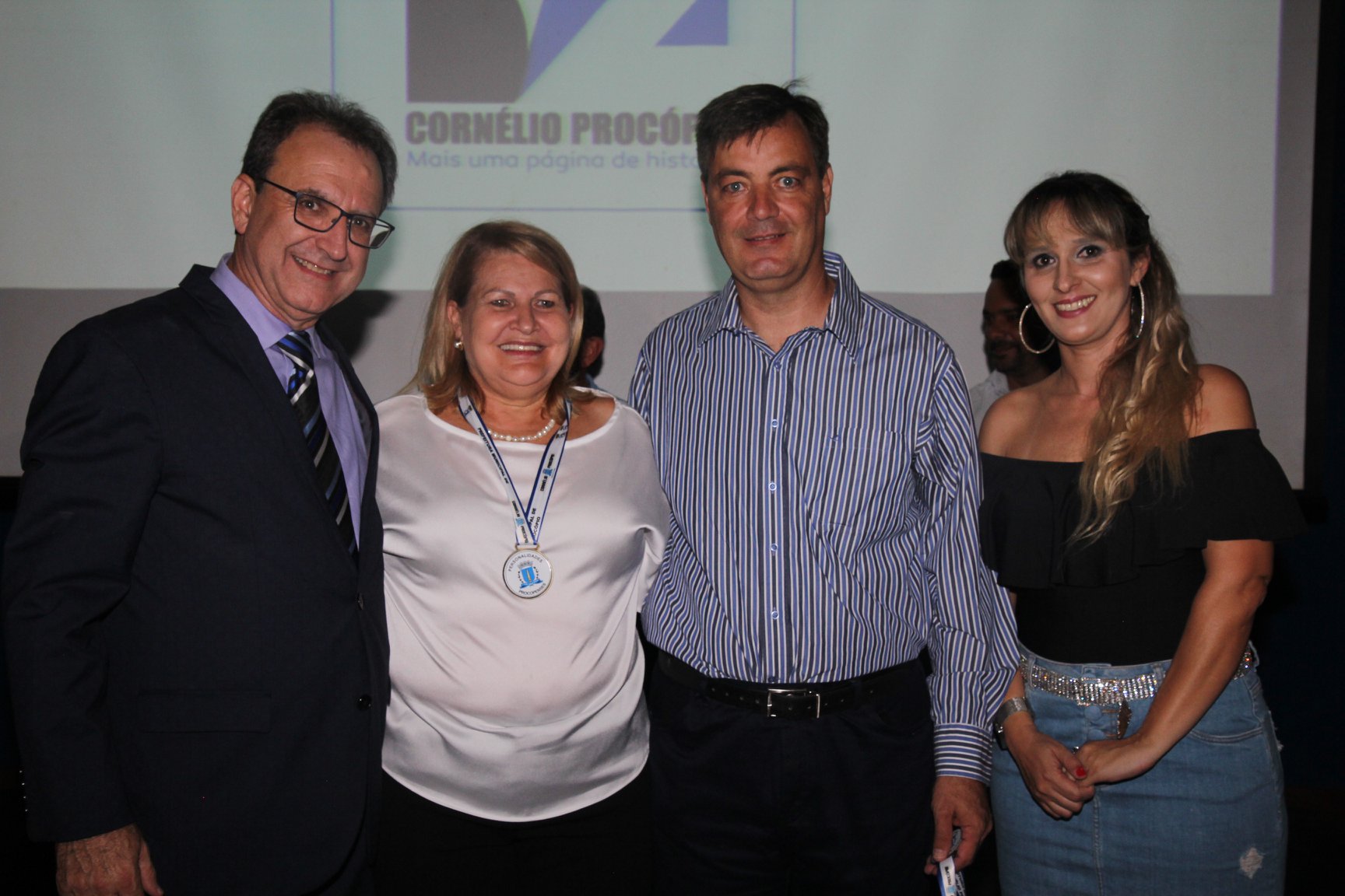 Cornélio Procópio – Pelo segundo ano consecutivo, a programação de aniversário de Cornélio Procópio premiou procopenses que se destacaram ao longo dos últimos anos. O evento marca o encerramento da programação dos 81 anos e é realizado sempre no dia 14 de fevereiro. O anfiteatro da Universidade Tecnológica Federal do Paraná, UTFPR ficou pequeno para receber os homenageados e seus familiares. Os convidados foram recebidos com apresentações musicais da Banda Santa Cecília. O poeta João Anastácio declamou poesias e o Coral Cristo Rei encerrou a programação. Para o prefeito Amin Hannouche, as homenagens emocionaram os convidados deste ano. “Nosso reconhecimento ao trabalho e a dedicação de todos estes procopenses no desenvolvimento de nossa cidade ao longo destes anos”, afirmou. Ao lado do presidente da Câmara, Edmar Gomes, da Vice-prefeita Angélica Olchaneski e outras autoridades, o prefeito Amin Hannouche entregou dezenas de Medalhas e Certificados aos homenageados. A benção ecumênica foi presidida pelo Bispo Diocesano, Dom Manoel Francisco e pelo Pastor Carlos Roberto Fernandes. Os homenageados foram representados pela professora Dina Brito e pelo poeta Gilberto Mensato.