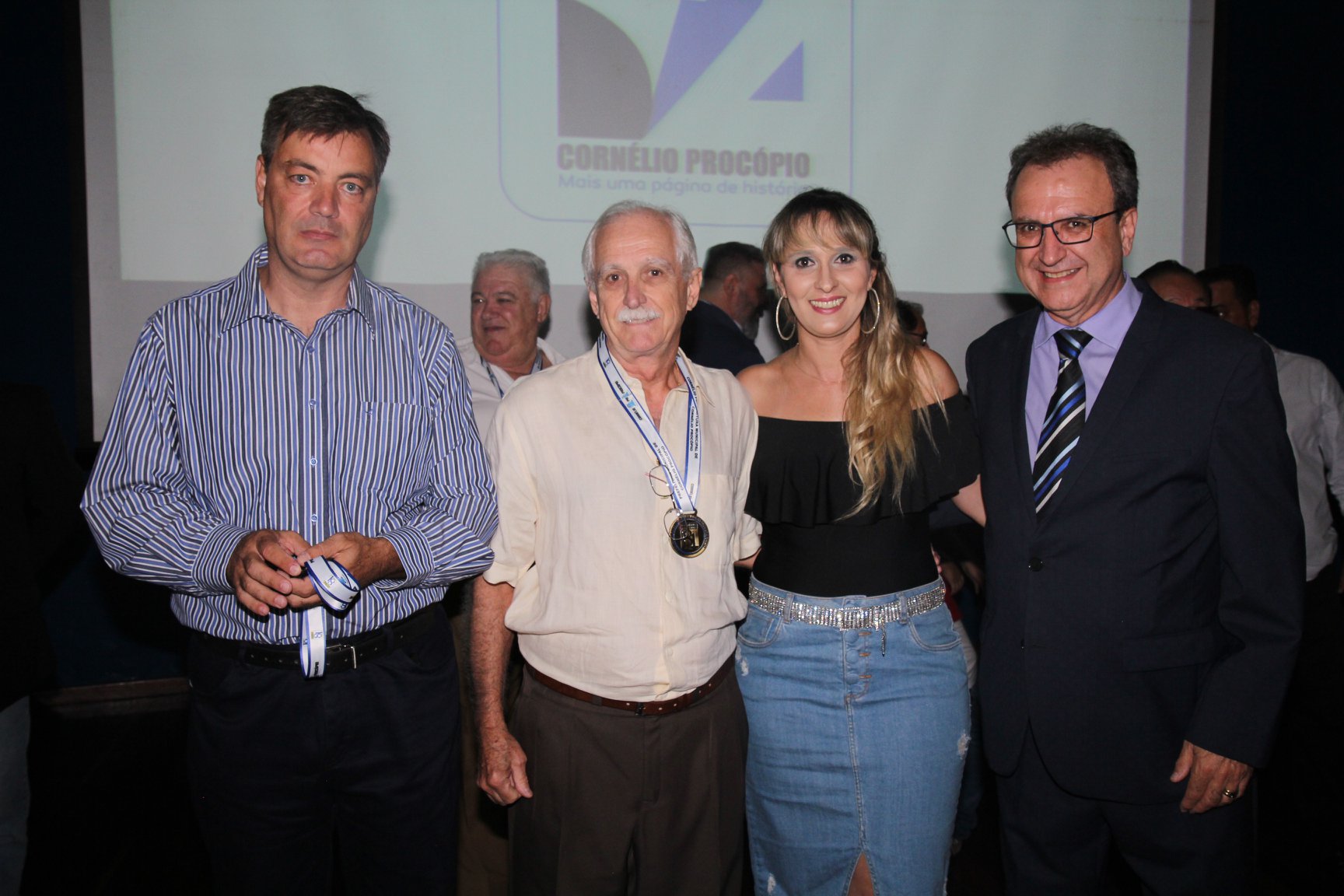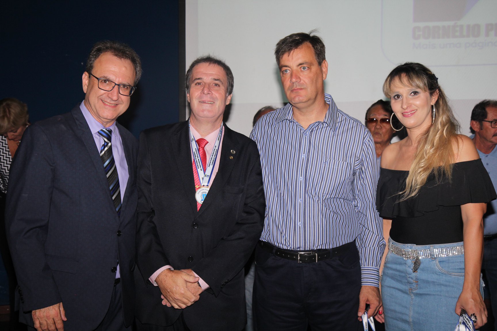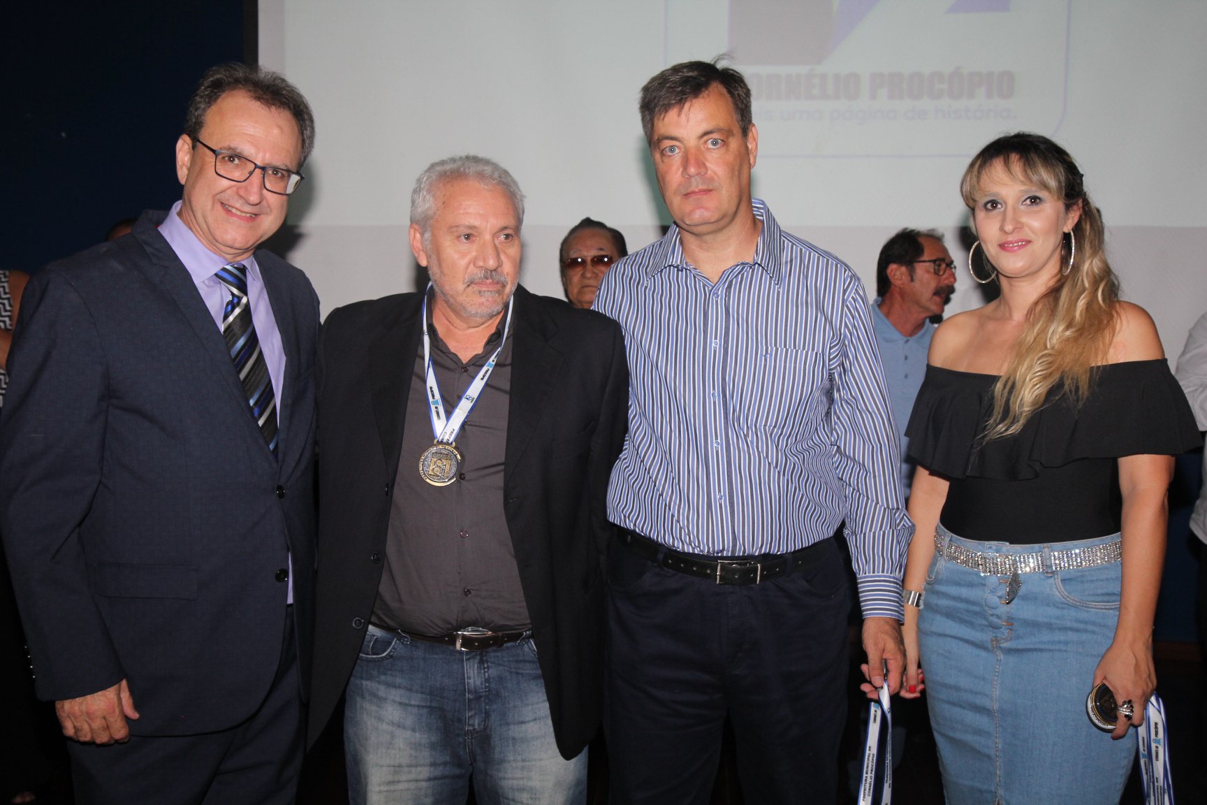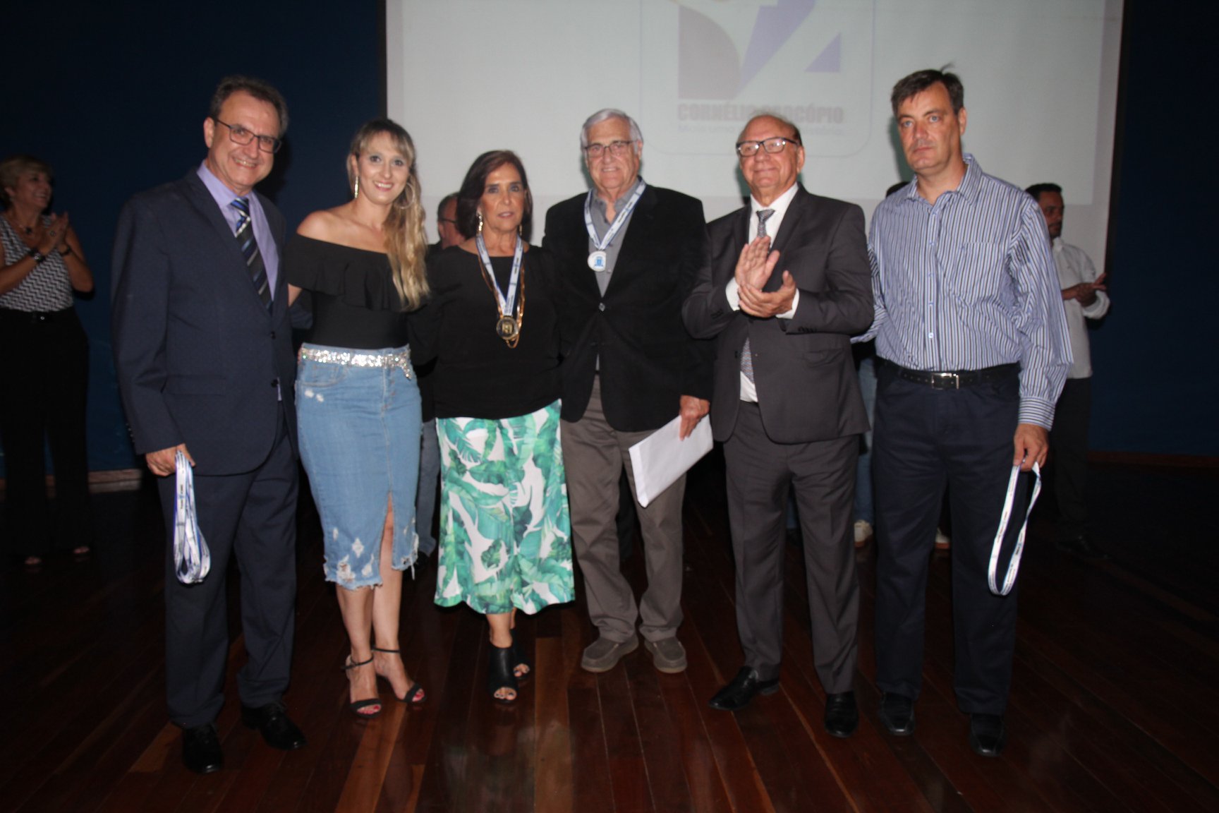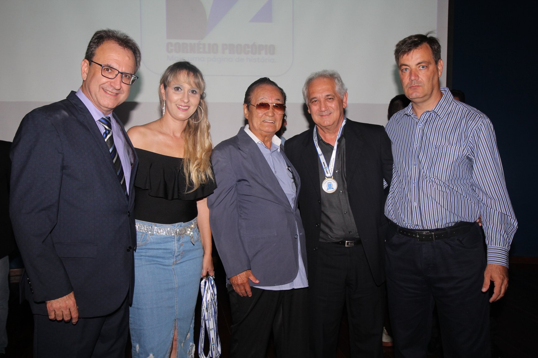 Cornélio Procópio – Pelo segundo ano consecutivo, a programação de aniversário de Cornélio Procópio premiou procopenses que se destacaram ao longo dos últimos anos. O evento marca o encerramento da programação dos 81 anos e é realizado sempre no dia 14 de fevereiro. O anfiteatro da Universidade Tecnológica Federal do Paraná, UTFPR ficou pequeno para receber os homenageados e seus familiares. Os convidados foram recebidos com apresentações musicais da Banda Santa Cecília. O poeta João Anastácio declamou poesias e o Coral Cristo Rei encerrou a programação. Para o prefeito Amin Hannouche, as homenagens emocionaram os convidados deste ano. “Nosso reconhecimento ao trabalho e a dedicação de todos estes procopenses no desenvolvimento de nossa cidade ao longo destes anos”, afirmou. Ao lado do presidente da Câmara, Edmar Gomes, da Vice-prefeita Angélica Olchaneski e outras autoridades, o prefeito Amin Hannouche entregou dezenas de Medalhas e Certificados aos homenageados. A benção ecumênica foi presidida pelo Bispo Diocesano, Dom Manoel Francisco e pelo Pastor Carlos Roberto Fernandes. Os homenageados foram representados pela professora Dina Brito e pelo poeta Gilberto Mensato.