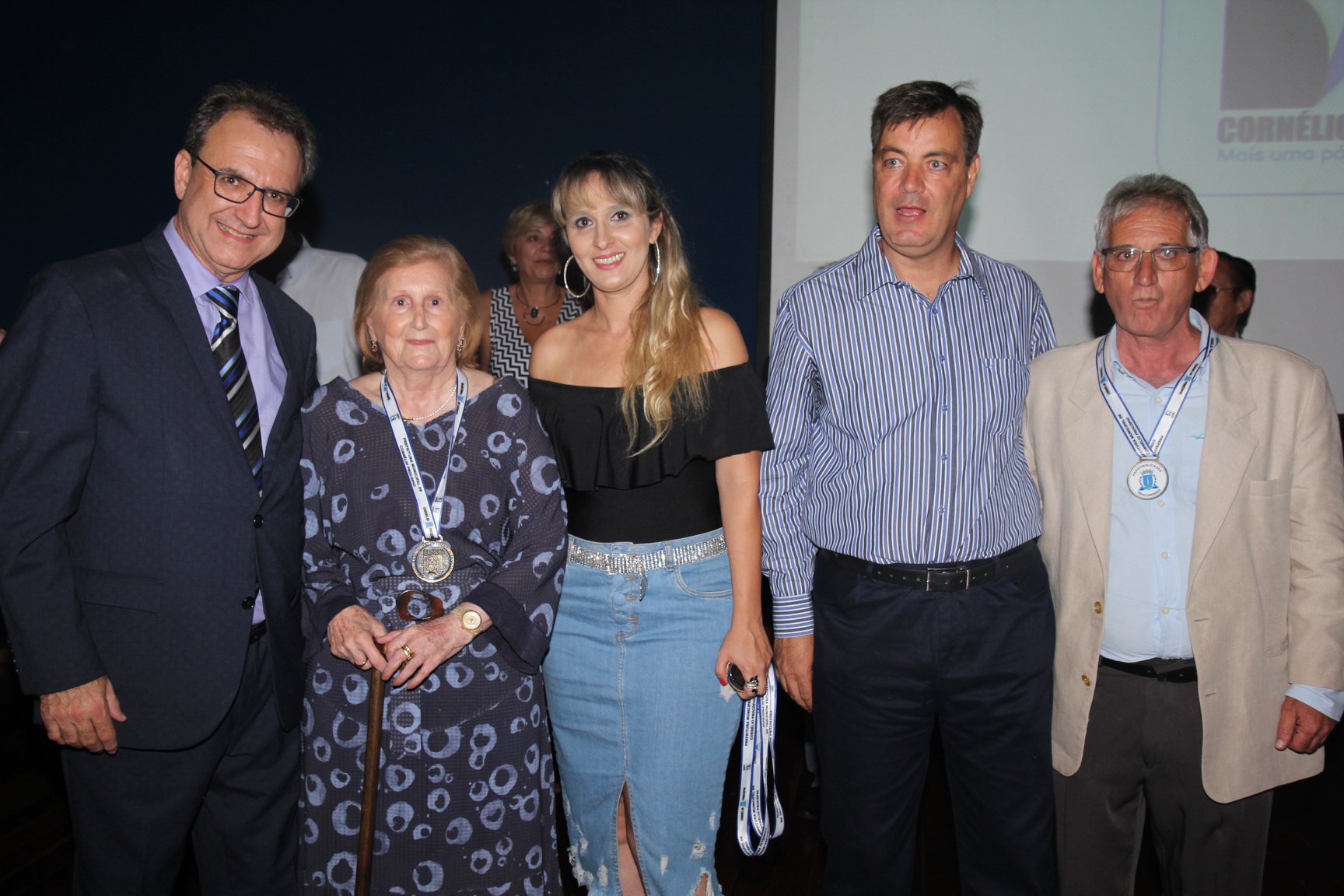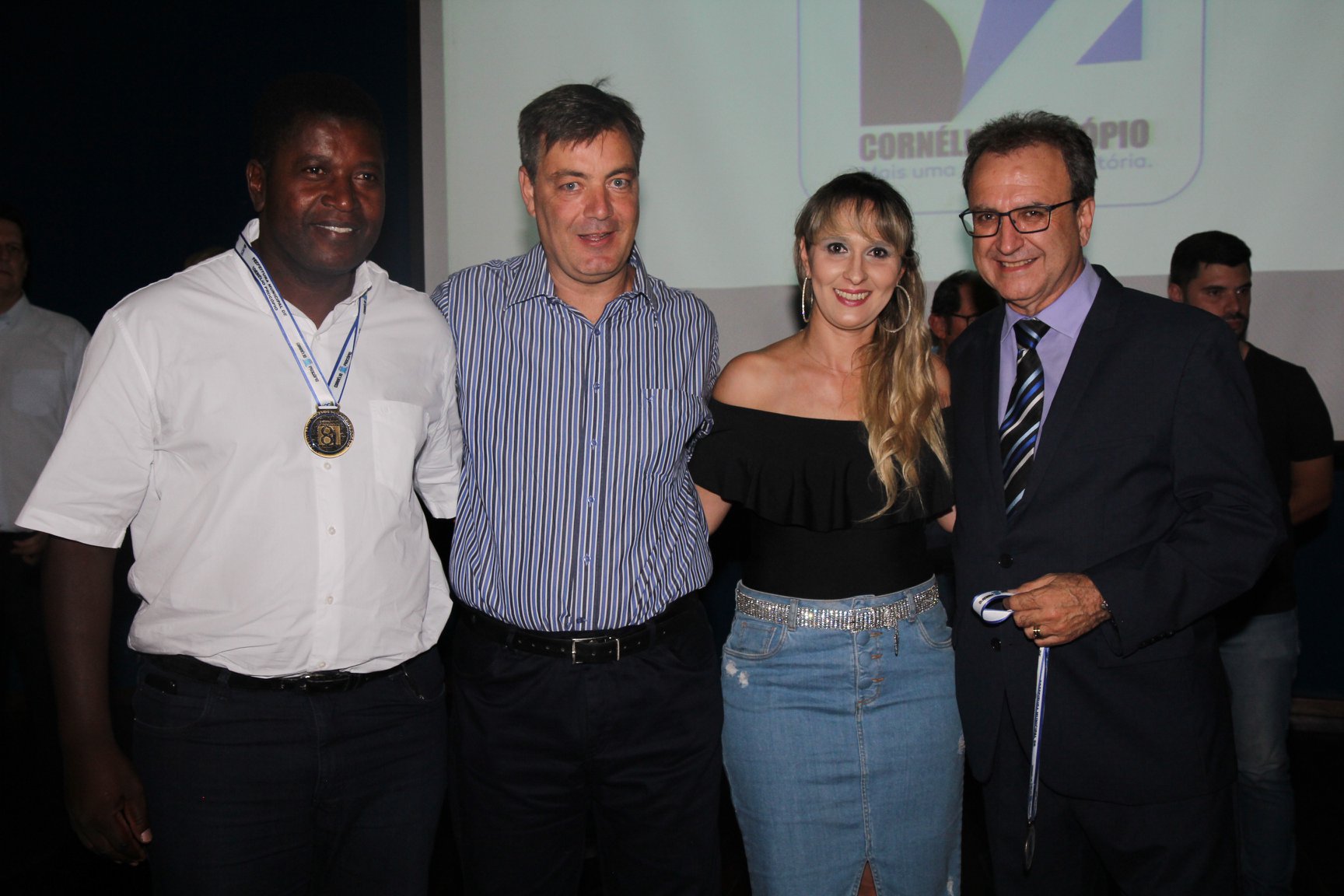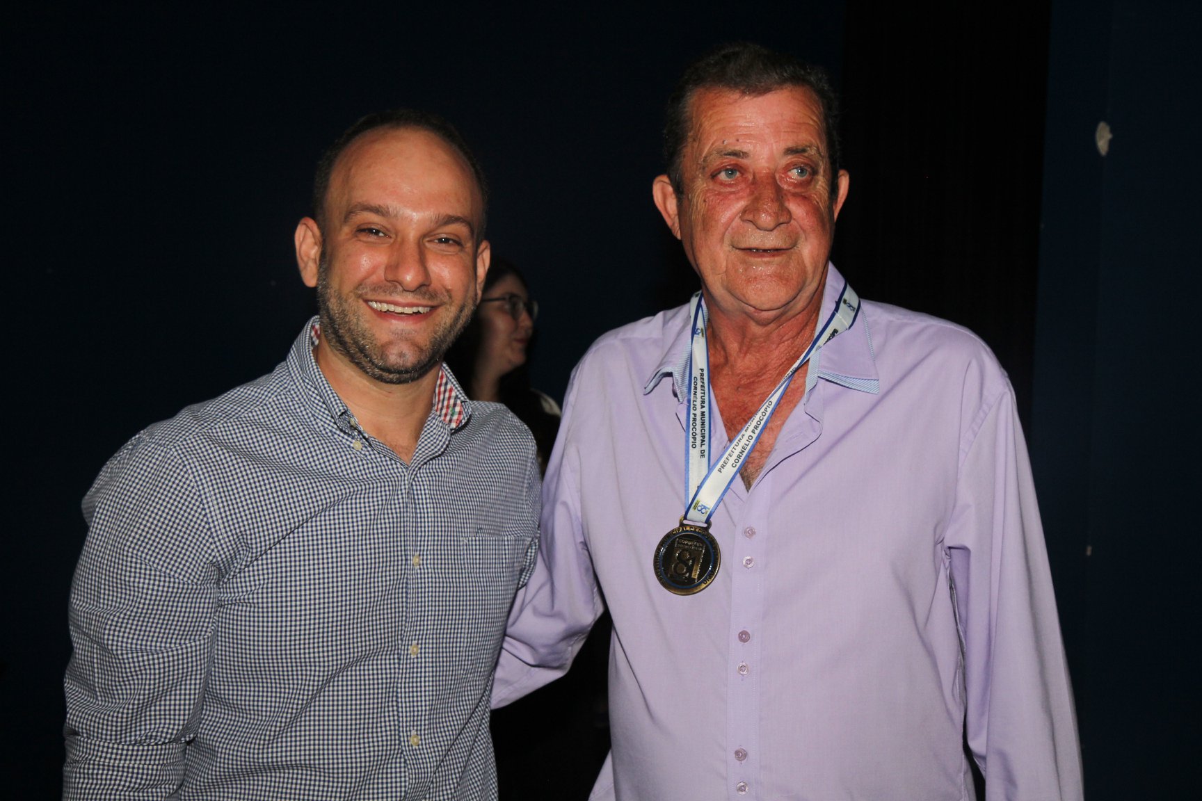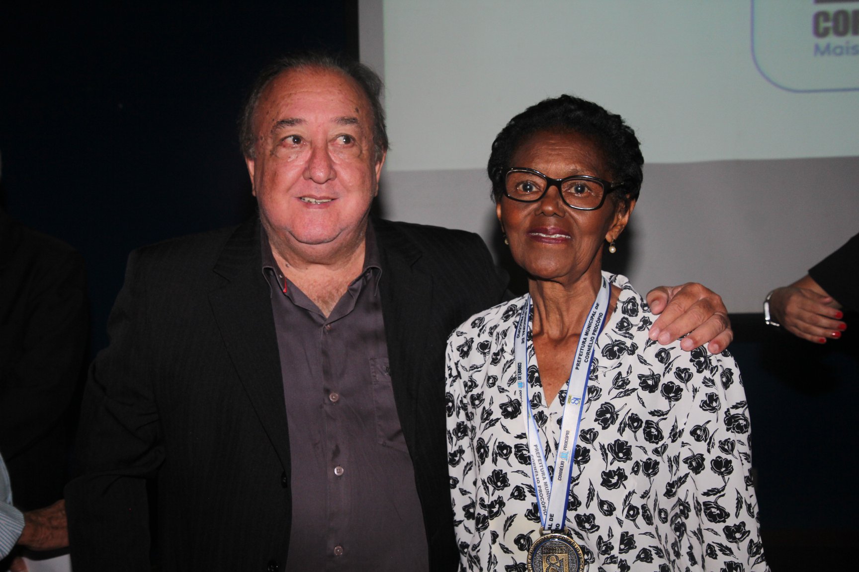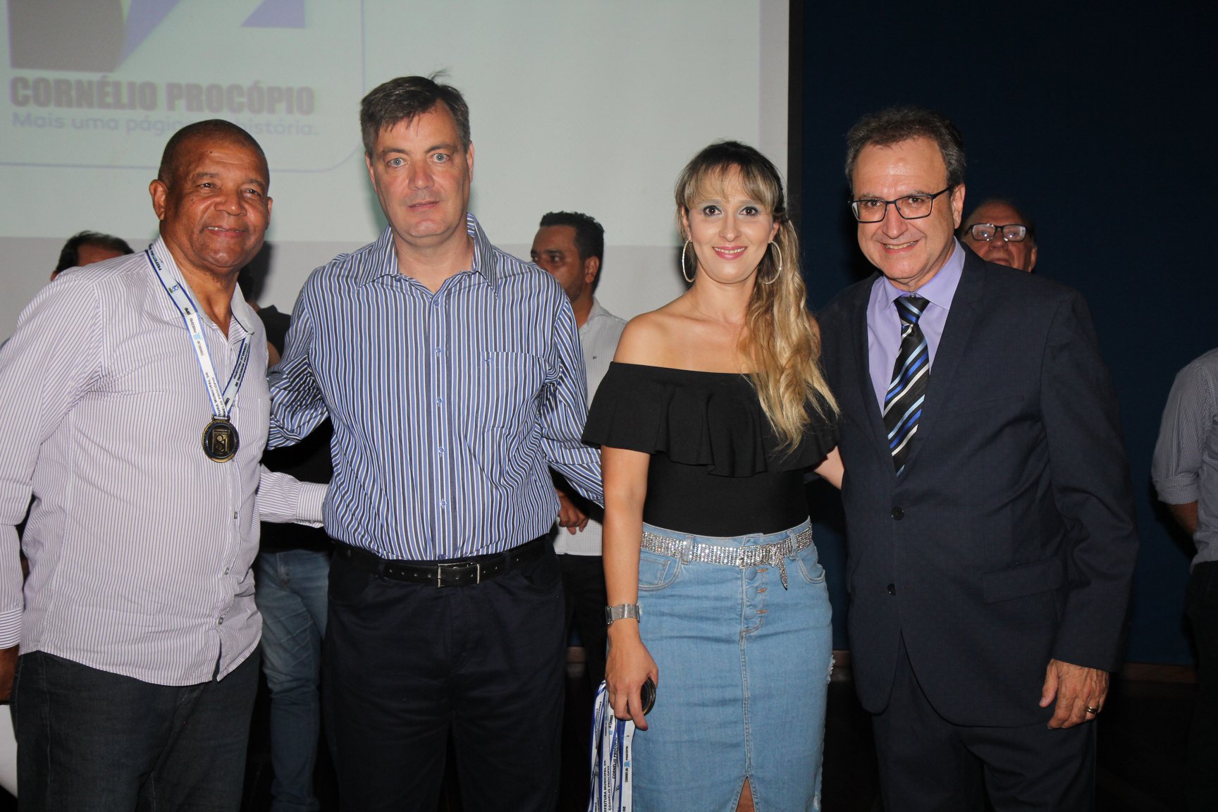 Cornélio Procópio – Pelo segundo ano consecutivo, a programação de aniversário de Cornélio Procópio premiou procopenses que se destacaram ao longo dos últimos anos. O evento marca o encerramento da programação dos 81 anos e é realizado sempre no dia 14 de fevereiro. O anfiteatro da Universidade Tecnológica Federal do Paraná, UTFPR ficou pequeno para receber os homenageados e seus familiares. Os convidados foram recebidos com apresentações musicais da Banda Santa Cecília. O poeta João Anastácio declamou poesias e o Coral Cristo Rei encerrou a programação. Para o prefeito Amin Hannouche, as homenagens emocionaram os convidados deste ano. “Nosso reconhecimento ao trabalho e a dedicação de todos estes procopenses no desenvolvimento de nossa cidade ao longo destes anos”, afirmou. Ao lado do presidente da Câmara, Edmar Gomes, da Vice-prefeita Angélica Olchaneski e outras autoridades, o prefeito Amin Hannouche entregou dezenas de Medalhas e Certificados aos homenageados. A benção ecumênica foi presidida pelo Bispo Diocesano, Dom Manoel Francisco e pelo Pastor Carlos Roberto Fernandes. Os homenageados foram representados pela professora Dina Brito e pelo poeta Gilberto Mensato.