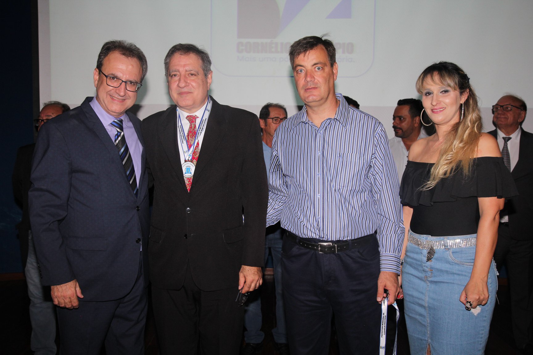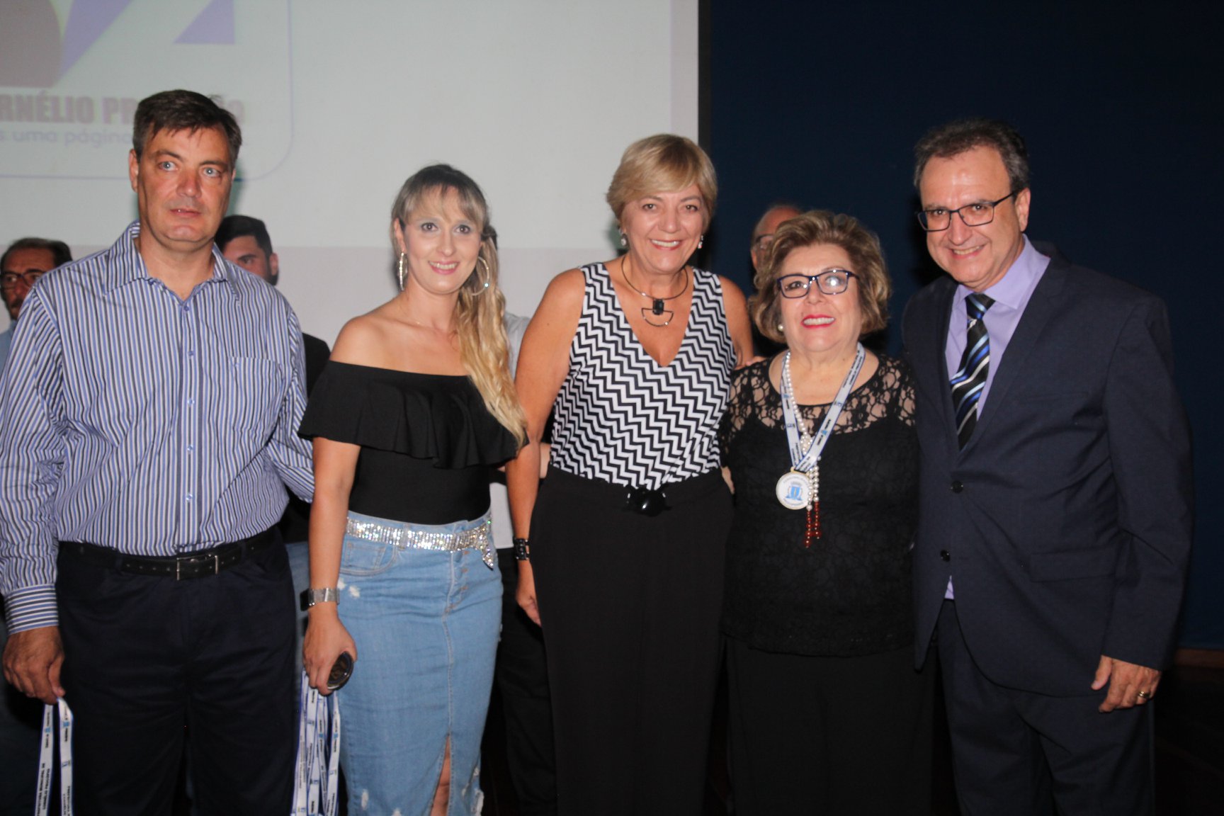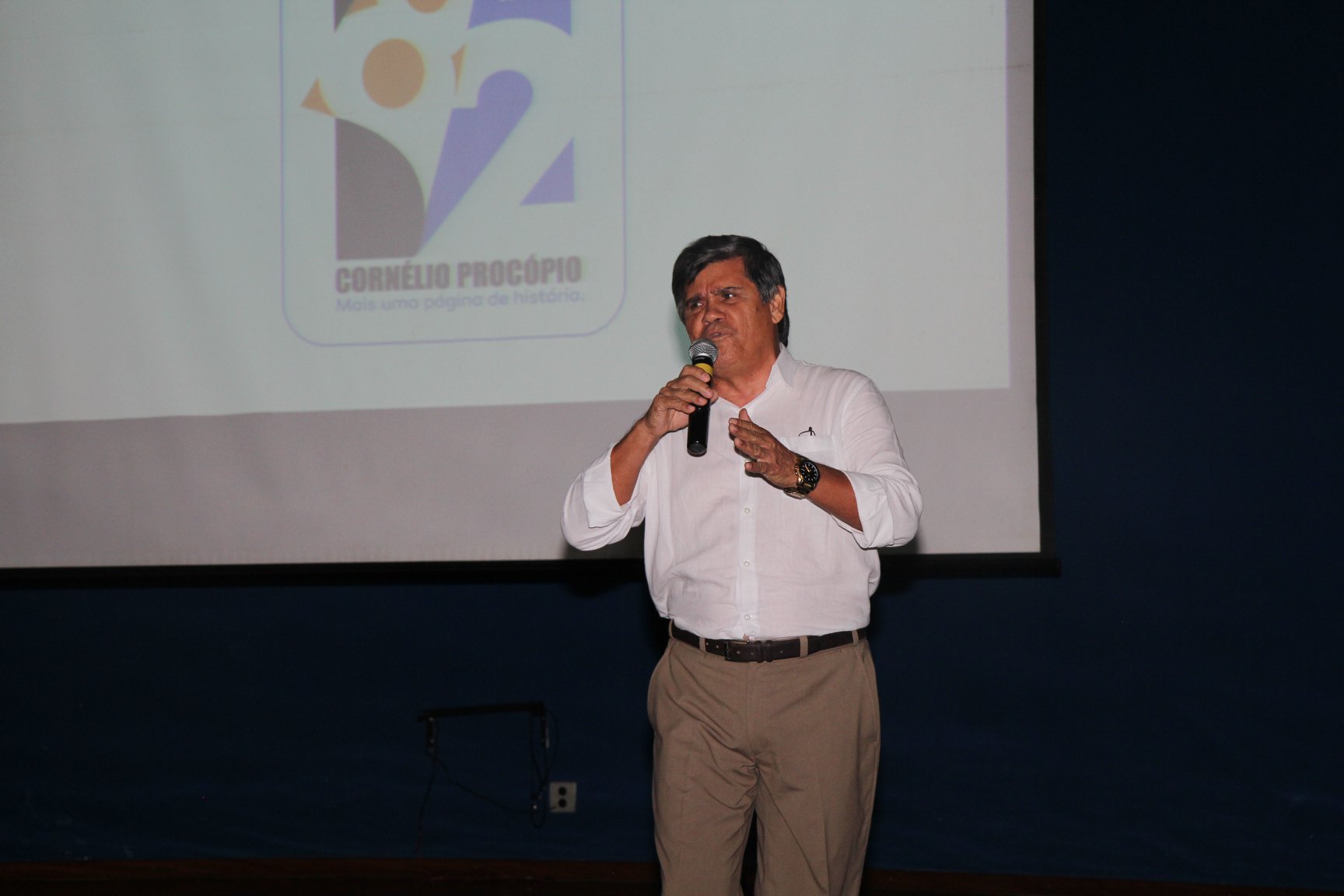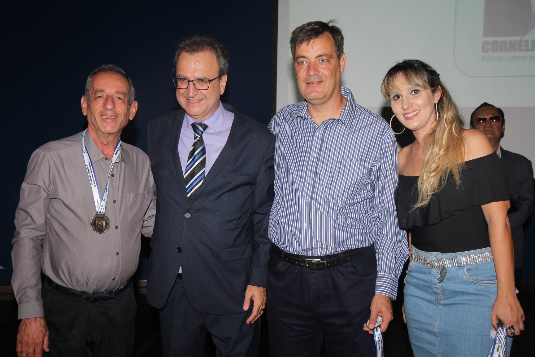 Cornélio Procópio – Pelo segundo ano consecutivo, a programação de aniversário de Cornélio Procópio premiou procopenses que se destacaram ao longo dos últimos anos. O evento marca o encerramento da programação dos 81 anos e é realizado sempre no dia 14 de fevereiro. O anfiteatro da Universidade Tecnológica Federal do Paraná, UTFPR ficou pequeno para receber os homenageados e seus familiares. Os convidados foram recebidos com apresentações musicais da Banda Santa Cecília. O poeta João Anastácio declamou poesias e o Coral Cristo Rei encerrou a programação. Para o prefeito Amin Hannouche, as homenagens emocionaram os convidados deste ano. “Nosso reconhecimento ao trabalho e a dedicação de todos estes procopenses no desenvolvimento de nossa cidade ao longo destes anos”, afirmou. Ao lado do presidente da Câmara, Edmar Gomes, da Vice-prefeita Angélica Olchaneski e outras autoridades, o prefeito Amin Hannouche entregou dezenas de Medalhas e Certificados aos homenageados. A benção ecumênica foi presidida pelo Bispo Diocesano, Dom Manoel Francisco e pelo Pastor Carlos Roberto Fernandes. Os homenageados foram representados pela professora Dina Brito e pelo poeta Gilberto Mensato.