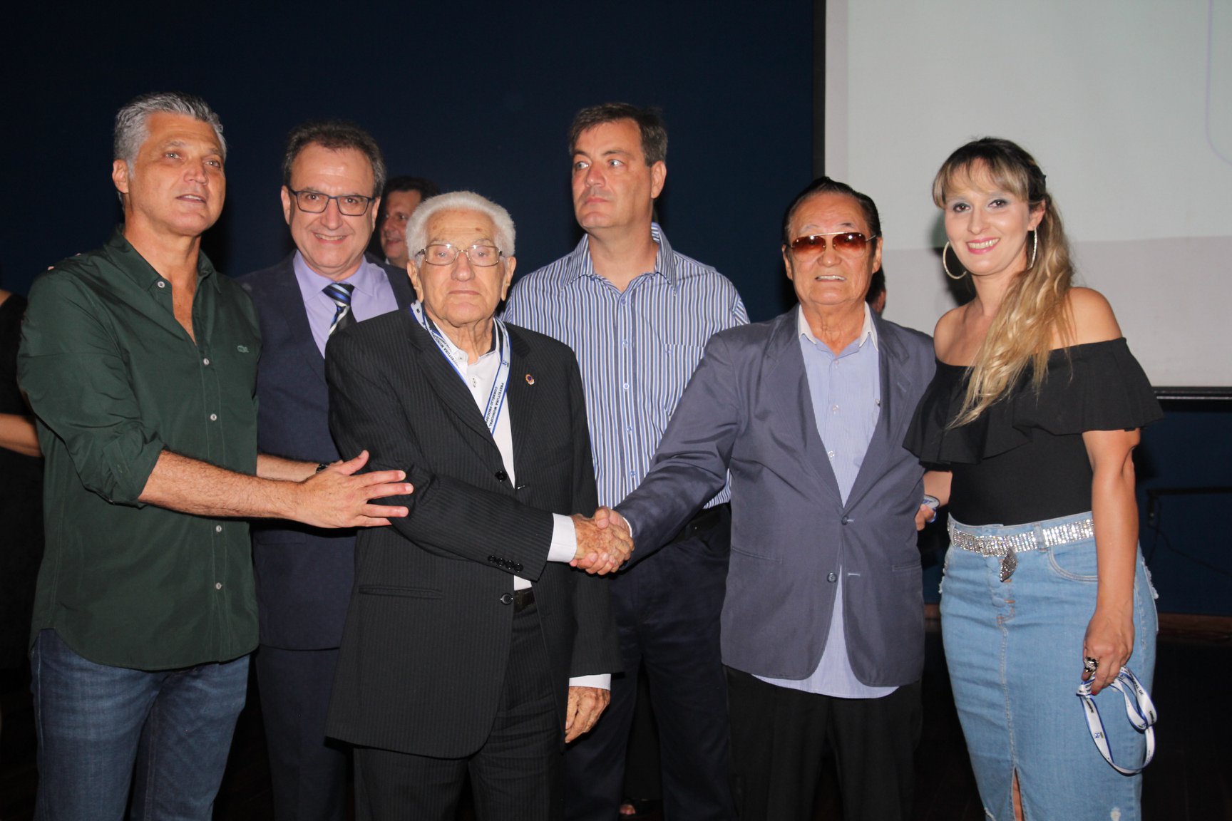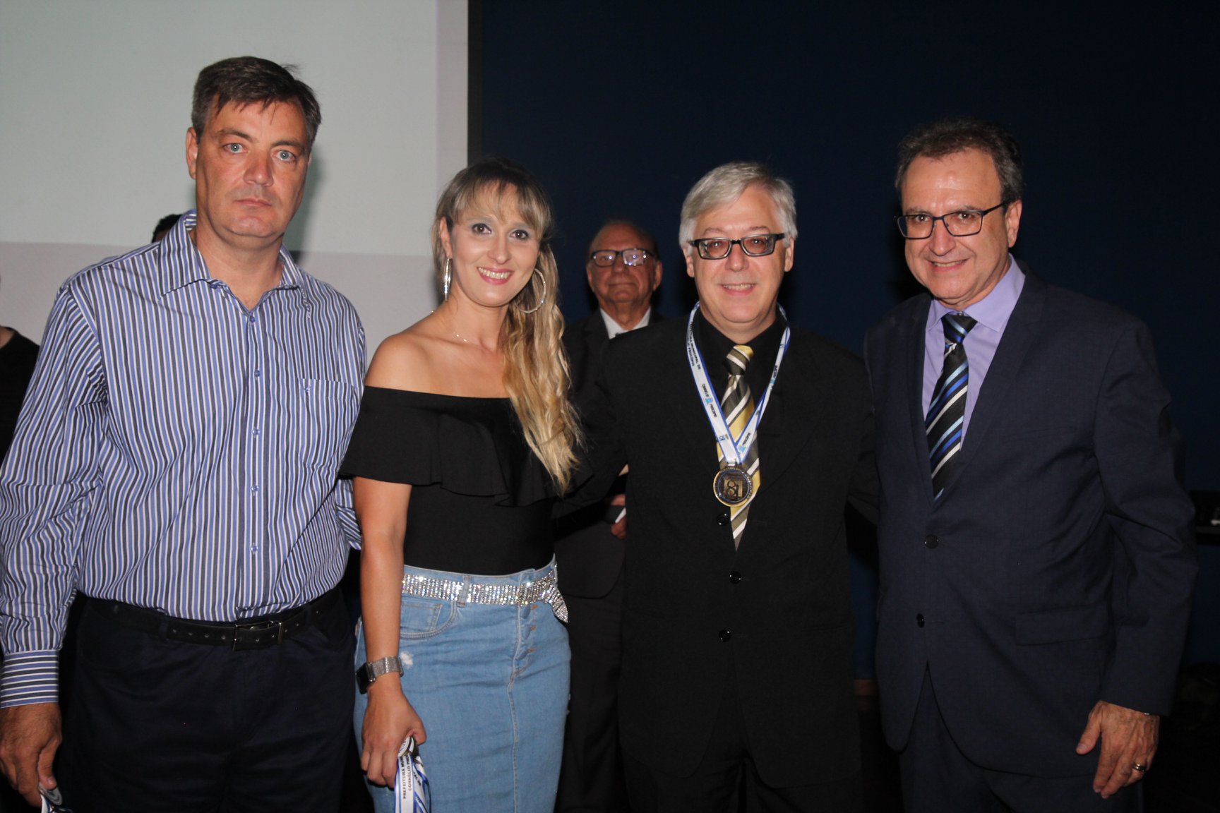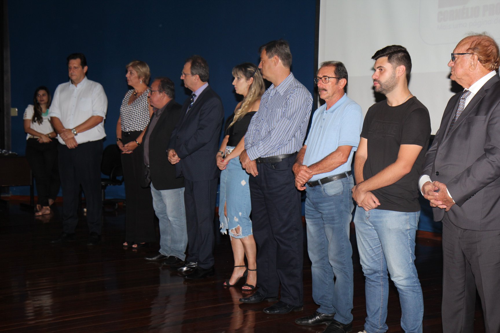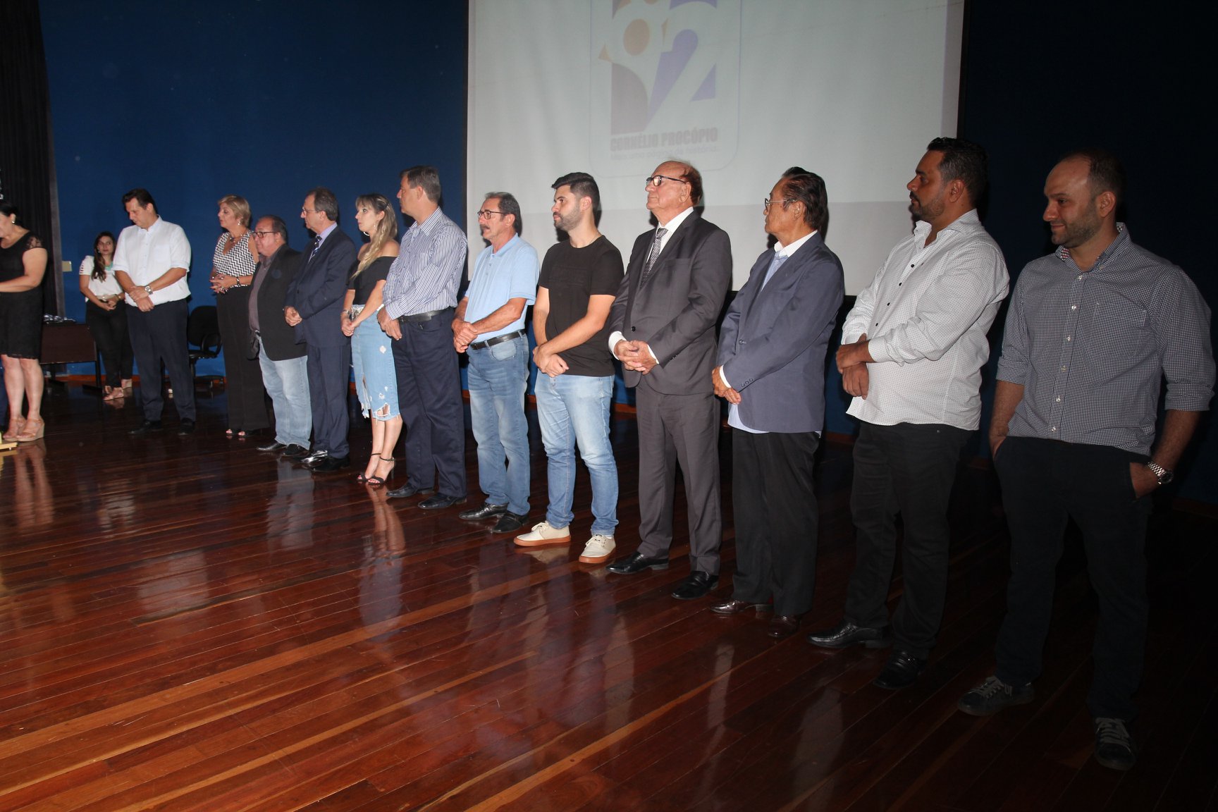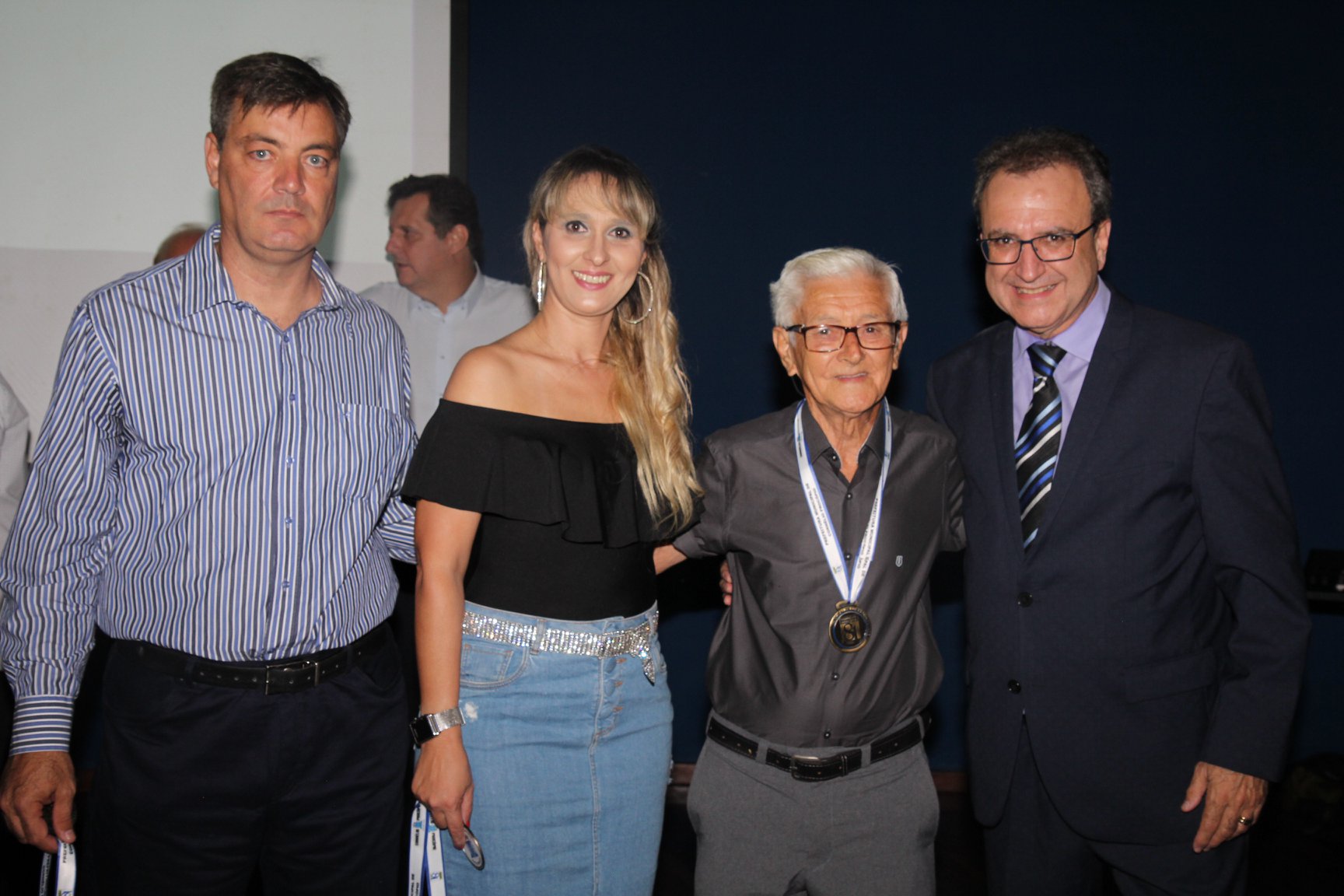 Cornélio Procópio – Pelo segundo ano consecutivo, a programação de aniversário de Cornélio Procópio premiou procopenses que se destacaram ao longo dos últimos anos. O evento marca o encerramento da programação dos 81 anos e é realizado sempre no dia 14 de fevereiro. O anfiteatro da Universidade Tecnológica Federal do Paraná, UTFPR ficou pequeno para receber os homenageados e seus familiares. Os convidados foram recebidos com apresentações musicais da Banda Santa Cecília. O poeta João Anastácio declamou poesias e o Coral Cristo Rei encerrou a programação. Para o prefeito Amin Hannouche, as homenagens emocionaram os convidados deste ano. “Nosso reconhecimento ao trabalho e a dedicação de todos estes procopenses no desenvolvimento de nossa cidade ao longo destes anos”, afirmou. Ao lado do presidente da Câmara, Edmar Gomes, da Vice-prefeita Angélica Olchaneski e outras autoridades, o prefeito Amin Hannouche entregou dezenas de Medalhas e Certificados aos homenageados. A benção ecumênica foi presidida pelo Bispo Diocesano, Dom Manoel Francisco e pelo Pastor Carlos Roberto Fernandes. Os homenageados foram representados pela professora Dina Brito e pelo poeta Gilberto Mensato.