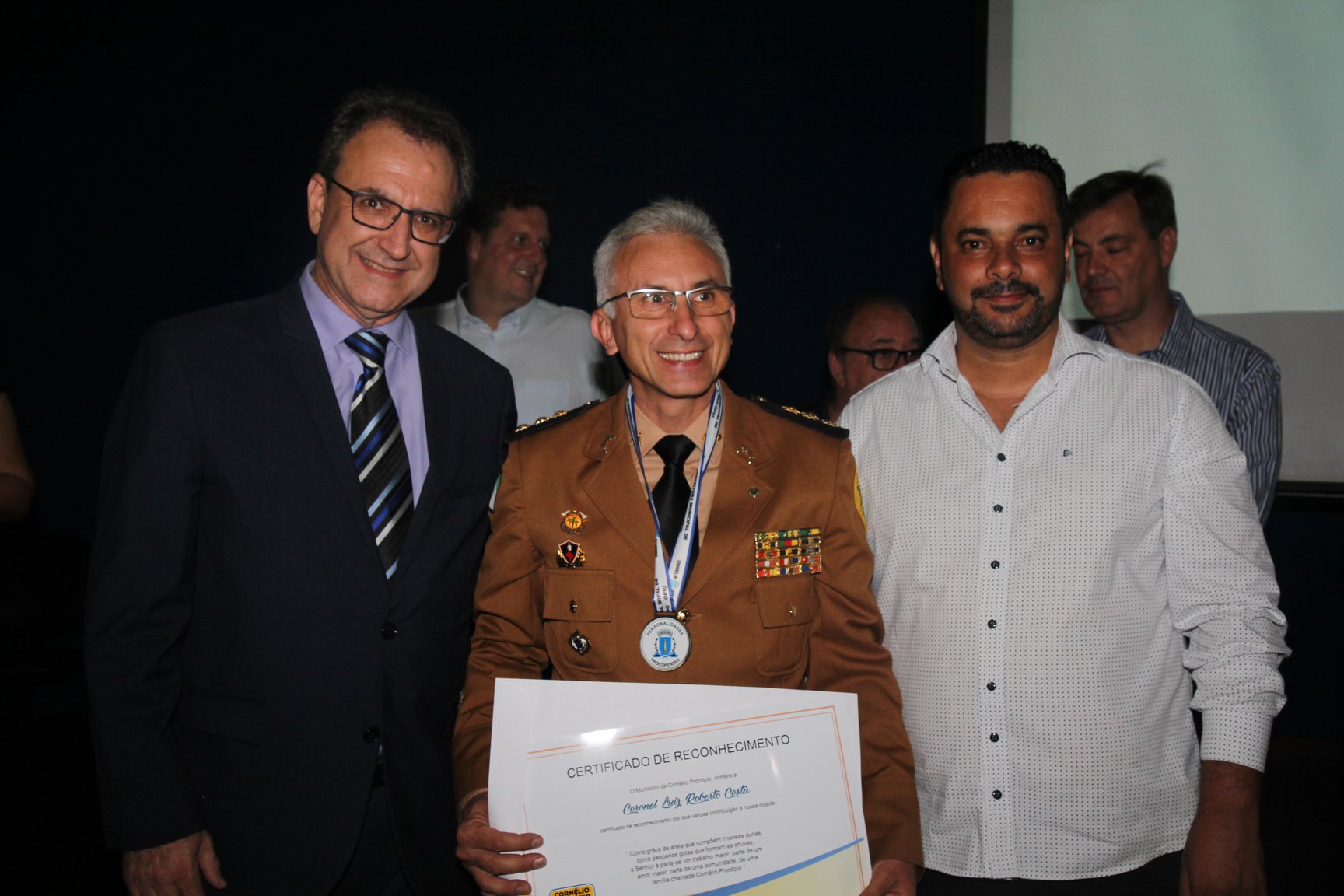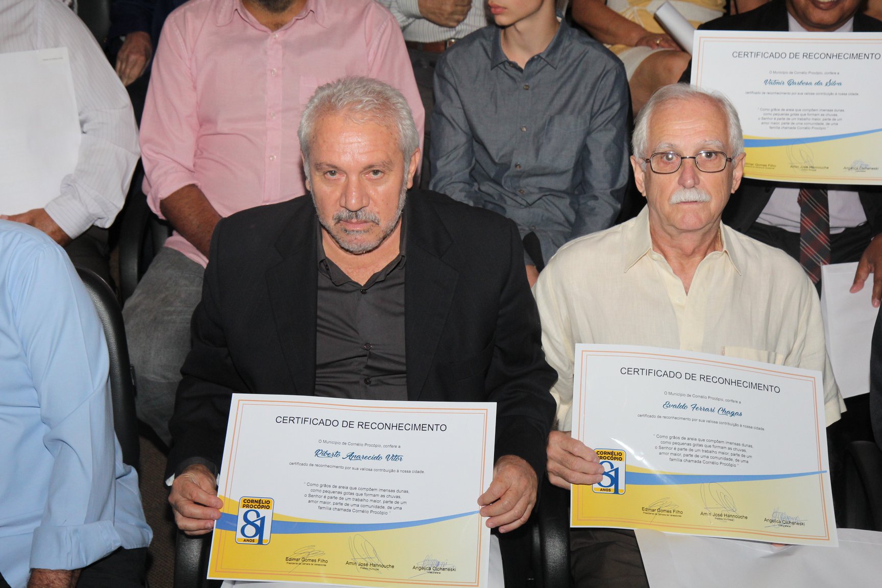 Receberam a Medalha “Personalidade Procopense” e o “Certificado de Reconhecimento” os homenageados Milton Vieira, Abigail Agostini, Luiz Carlos Rigon, Mário dos Santos Silvestre, Carlos Basso, Maria Aparecida Ribeiro, José Carlos Gebara, Geraldo Teodoro, Wilson Baggio, Wilson Roberto Costa, Maria Lúcia Funari Gomes, Daniel Antônio de Assis, Evaldo Knoll, Marieta Knoll, Dom Manoel João Francisco, Claudete Aparecida Cardoso Cordeiro, Stela Maria Cunha Reghin, Walrides Brevilheri Júnior, José Francisco Teodoro, Ademar Minato, Gilson Lavorato, Wilson José Godinho, Cornélia Vitória Peixoto, Riberto Aparecido Vitor, Fátima Aparecida da Cruz Padoan, Dina Brito, João Batista de Souza, Gilberto Mensato, Reginaldo Picoloto, Sylvio Binda do Prado, Eurico Pedroso, de Almeida, Reinaldo Carazzai Filho, Lucas Leite Ribeiro, Luiz Carlos Gonçalves, Marco Antônio Geraix, Ataíde Cuqui, Gladis Yara Sottile, Roberto Carlos Sottile, Jair Machado, Nilde Seugling Périsse da Silva, Lelita Martens de Oliveira, Marilu Martens de Oliveira, Coronel Luiz Roberto Costa, Mercedes Raymundo de Souza, Ramez Amin, Benedito Nilson Amoriélli, Décio Mariano, Assad Amin, Zenaide Cobianchi, Joaquim Antunes, Hermenegildo Lauro Del Rovere, Wilson João Salete Pupim, Darsonval Ribeiro, Fernando da Nave Pereira, Miguel Milanez Dias, Roberto Bondarik, Luiz Antônio Gatti, Ademir Voltolini, Kazumiti Inoue, Pedro Tondelli, José Lagana, José Gomes de Oliveira Sobrinho, Armênio de Jesus Cunha, Ângelo Ferracin, Irmã Benedita de Souza, Regina Lacerda de Oliveira, Dr. Fábio Mauro Segabinazzi, Abílio Gasparoto, Helena Francisco, Mauro Marcolini, Dorival Bortoto, Sebastião Cristóvão da Silva, Márcio Jacometi, Norma Dib Canônico, Joaquim Ibanhez, Joaquim Basílio, Sílvio Fernandes, Rubens de Siqueira, Oswaldo de Souza, Carlos Kaminagakura, Francisco Floro, Pastor Carlos Roberto Fernandes, Sidney Pereira, João Carlos Lima, Saul Pinto Ribeiro, Everaldo Queiroz de Lima, Padre Orisvaldo José Calandro, Nilson Fidélis, Francisco de Paula Martins, Muna Amin Graciano, Marilda Varallo Soares, Mercedes Costa Ducci, Geni Landgraf Ducci, Odete Scatalon Badaró, Wanda Pizzo, Reginaldo Vallim, Rosa Maria Marmontelo Basso, Valmir Barbosa, Luiz Rodrigues, Marly Petrin Ferreira, Enor Azzolini, Neuza Ferreira, Rosângela Silva Schiabel, Floriza Gonçales Síndice, Jair Tibúrcio, Solange Sanchez, Maria Ignácio da Silva, Darci Hermita Villas Boas de Oliveira, Evaldo Ferrari Chagas, Amarildo Rodrigues, Gilberto Vieira, Carlos Pulcinelli, Mauro João Gonçalves e Nilson Fumagalli. (Comunicação/Prefeitura)