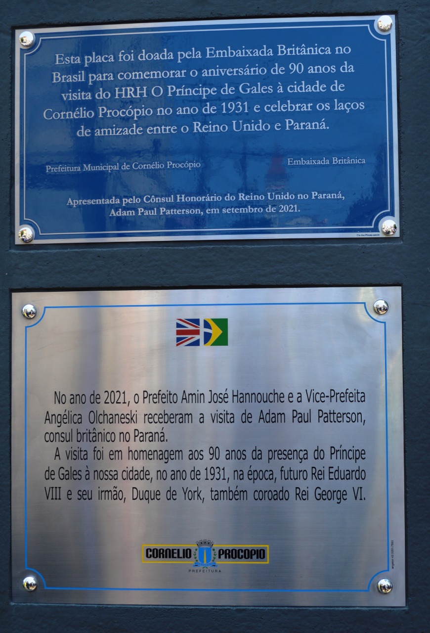 O prefeito de Cornélio Procópio, Amin Hannouche, acompanhado da vice-prefeita Angélica Olchaneski e de outras autoridades do município, recebeu nesta sexta-feira (24) o cônsul britânico no Paraná, Adam Paul Patterson. Ele veio para participar da cerimônia comemorativa dos 90 anos da visita do Príncipe de Gales no município.