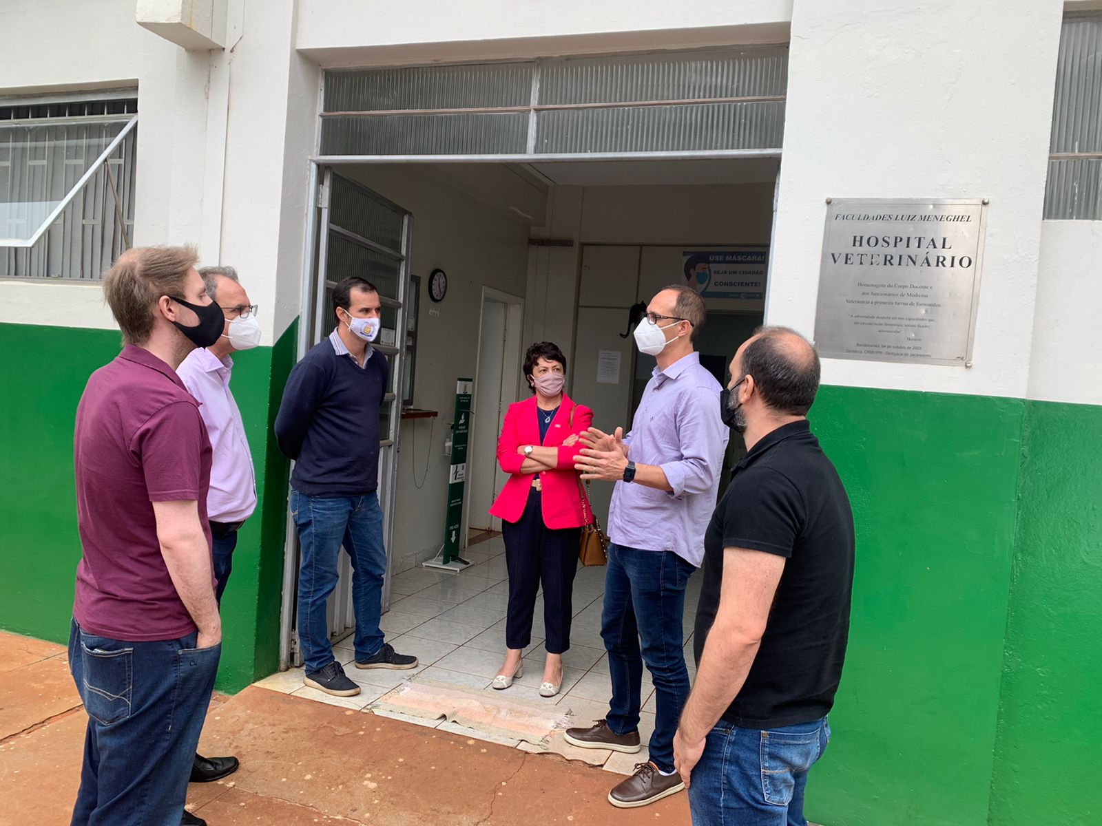 O prefeito de Cornélio Procópio, Amin Hannouche, reuniu-se nesta segunda-feira, dia 18, com dirigentes do Hospital Veterinário Escola do campus da Universidade do Norte do Paraná (Uenp) de Bandeirantes. Durante encontro com a reitora da instituição, professora Fátima Padoan, o diretor do campus, Ederson Sgarb e o diretor do Hospital Veterinário, Ademir Zacarias, foi estudada a possibilidade de um termo de cooperação técnica em que a universidade, através campus, fará um trabalho de castração de animais de pequeno porte atendidos pelo Centro de Recuperação de Cães e Gatos (Cerceg).