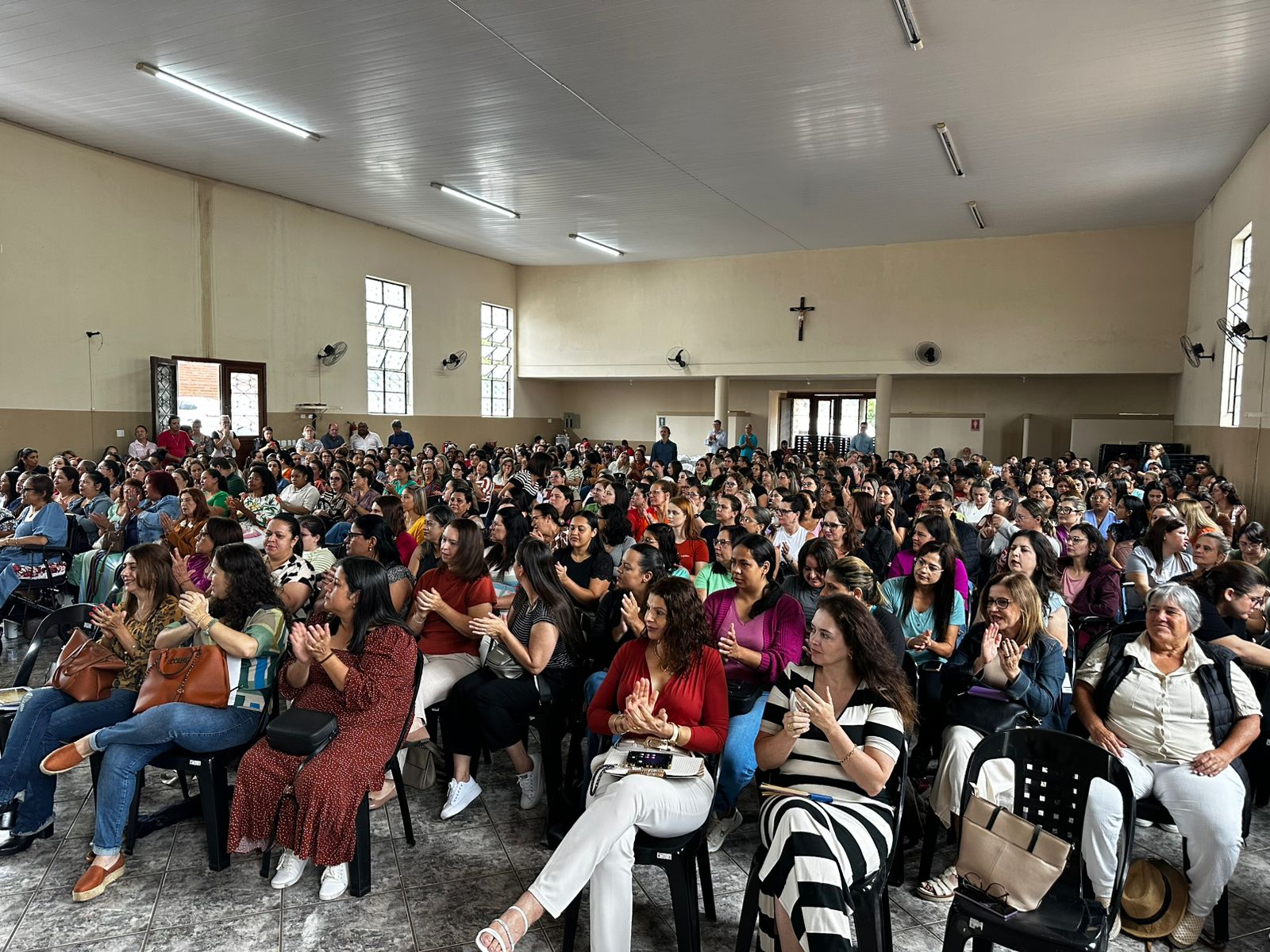 A Rede Municipal de Ensino de Cornélio Procópio deu início ao ano letivo de 2025 nesta quarta-feira (5/2) com diversas ações voltadas à qualidade da educação e ao bem-estar de alunos e profissionais. A abertura das atividades foi marcada pela presença da comunidade escolar no Salão Dom Bosco, onde mais de 300 profissionais da educação se reuniram para a solenidade inaugural. O evento contou com a participação do prefeito Raphael Sampaio e da secretária municipal de Educação, Mara Peixoto, evidenciando o compromisso da gestão com a valorização dos educadores e a melhoria do ensino público.