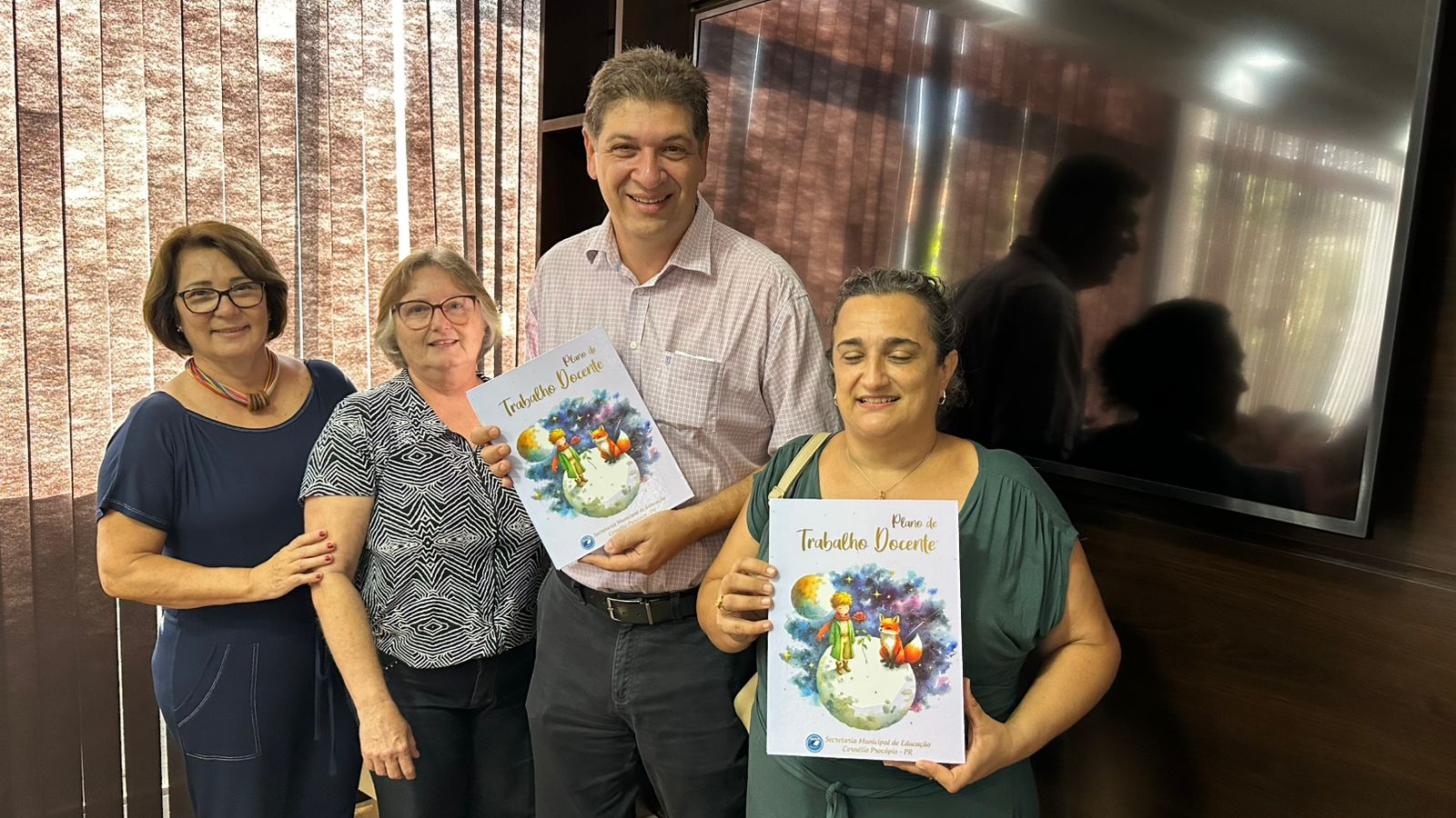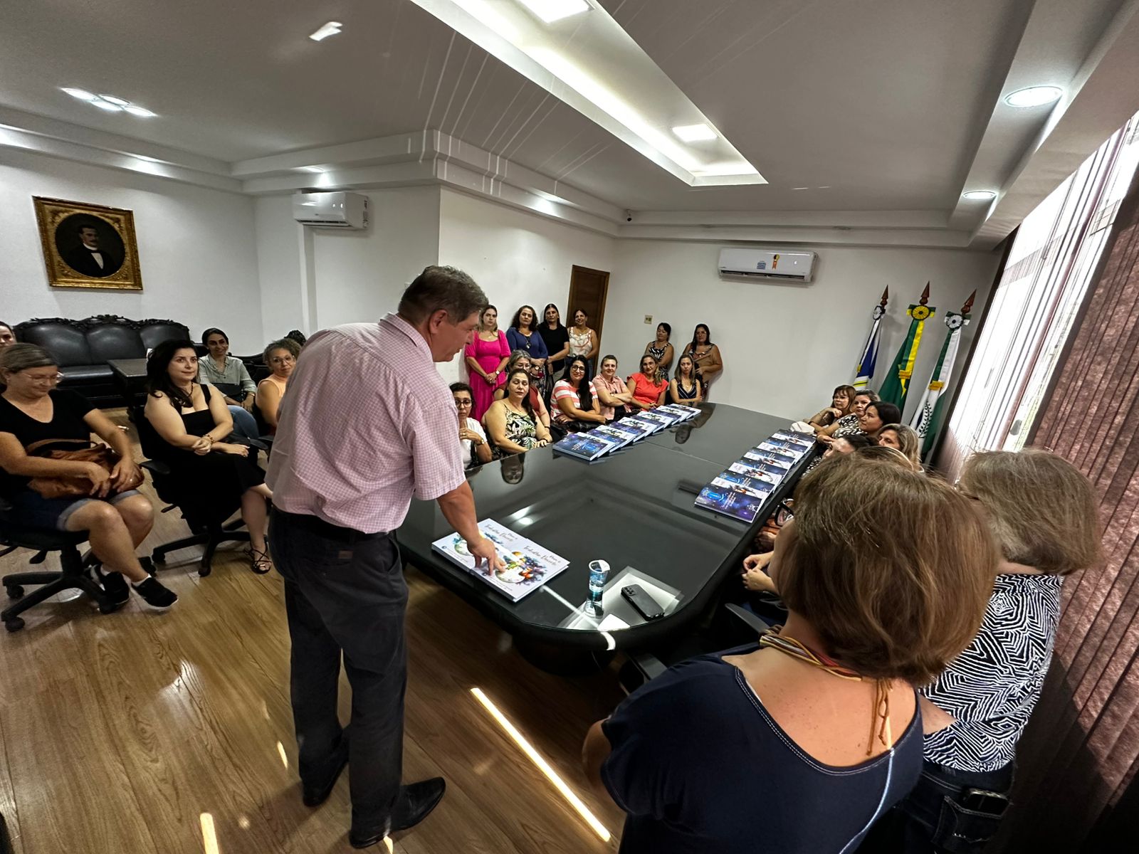 Na tarde de sexta-feira (7), a educação do município deu um passo importante rumo à igualdade no ensino. O prefeito Raphael Sampaio entregou às diretoras dos CEMEIS e Escolas Municipais do Ensino Fundamental o Plano de Trabalho que vai ser desenvolvido em todas as unidades escolares ao longo do ano. Todas as professoras e professores da rede municipal receberão esse material exclusivo, feito para garantir que o ensino seja conduzido de forma organizada, igualitária e de qualidade em todas as escolas.