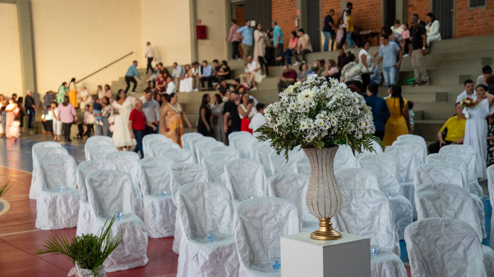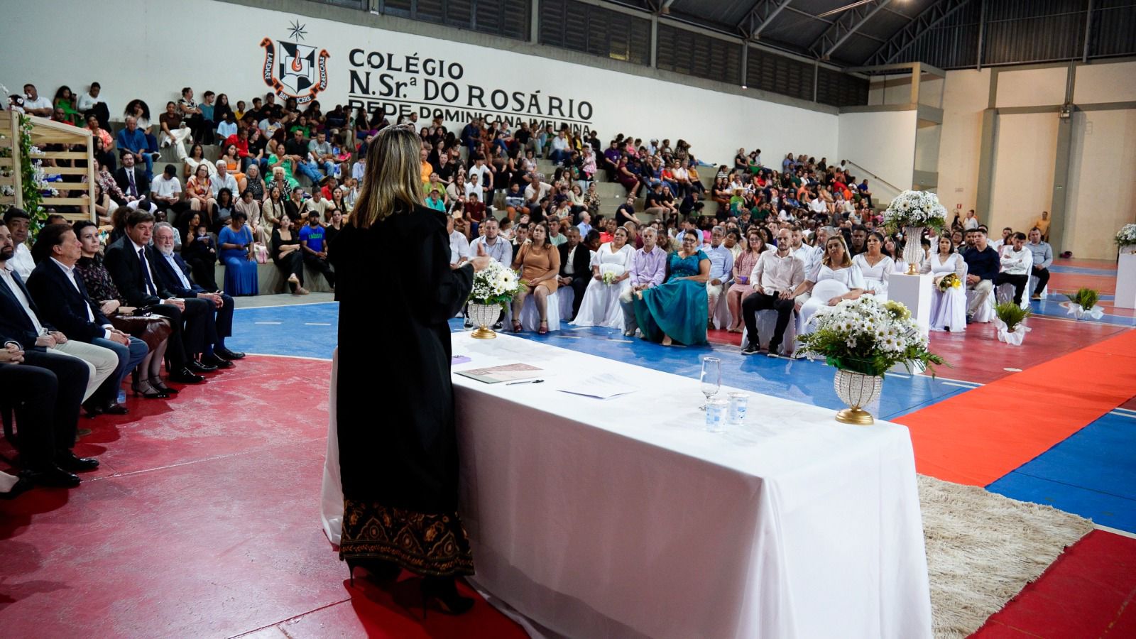 No último sábado (27/6), a Prefeitura de Cornélio Procópio, por meio da Secretaria de Assistência Social e em parceria com o Programa Justiça nos Bairros, Sesc Cidadão e o Tribunal de Justiça do Paraná, realizou a celebração do Casamento Coletivo. Participaram da cerimônia 57 casais de Cornélio Procópio e 36 de cidades vizinhas, como Leópolis, Sertaneja, Santa Mariana e Uraí.