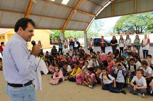 A primeira escola que recebeu a visita do prefeito foi a Escola Municipal Vereador Damasco Adão Sottile, que atende 126 alunos e é dirigida pela professora Márcia de Carvalho Medeiros. Segundo Márcia foi uma honra receber o prefeito e a primeira dama Lúcia de Fátima Alves, nas dependências da Escola que tem recebido atenção especial da administração pública. “É com muita alegria que recebemos o prefeito, a Lúcia e a professora Leandra em nossa escola, especialmente pela motivação que esta visita causa em nossas crianças em participar do desfile e também por oportunizar o uso de um uniforme novo e gratuito para a comemoração da independência”, agradeceu a diretora Márcia.