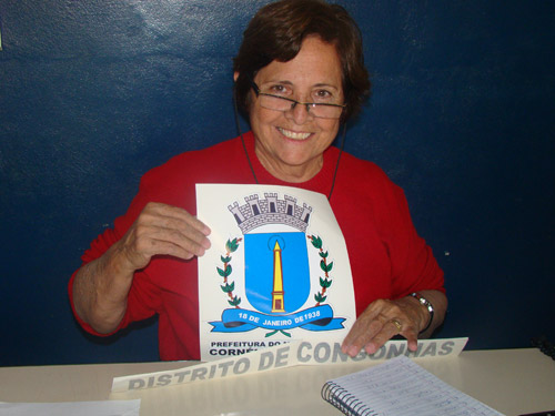 Foto – A sub-prefeita Dulce Maria Alves recebeu os adesivos que vão identificar a frota do Distrito de Congonhas