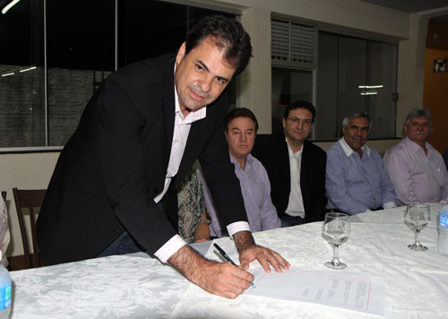 O prefeito Fred Alves assina a escritura de doação de área para a construção do Parque Tecnológico da UTFPR