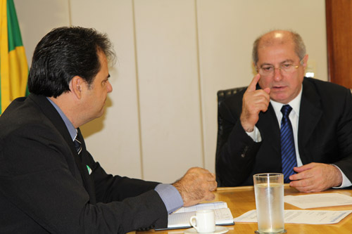 Ao lado do secretário Aparecido Carlos Fernandes, o prefeito Fred Alves pediu apoio do ministro para a instalação do curso de medicina em Cornélio