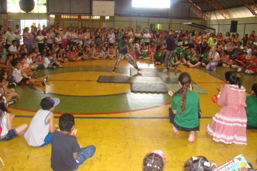 Sorrisos e olhos brilhando foram demonstrações comuns no Ginásio de Esportes de Congonhas, em Cornélio Procópio, neste domingo (13). Entre palhaços, bailarinos, pipoca, algodão-doce, cachorro quente, refrigerante, presentes e muitos brinquedos, centenas de crianças acompanhadas dos pais participaram da Festa da Criança do distrito oferecida pela Prefeitura do Município, através da coordenadoria municipal do Provopar.
