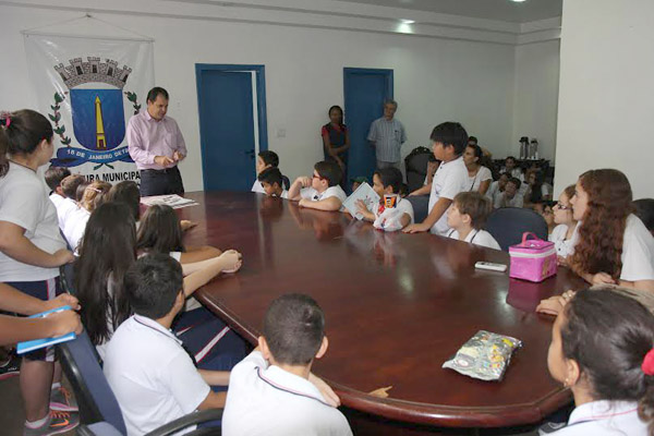 os estudantes puderam visitar a estrutura da sede do executivo, incluindo a sala do prefeito, de onde se dirigiram também para uma visita a Câmara de Vereadores para ver o funcionamento do Legislativo Municipal. (Comunicação / Prefeitura)