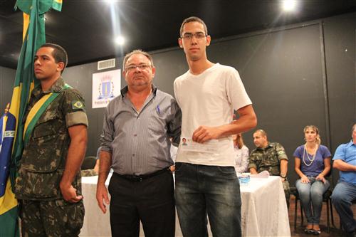 Em cerimônia realizada na última sexta-feira (14), no Centro Cultural Galdino de Almeida, os jovens cidadãos da classe de 1996 e anteriores foram dispensados da prestação de Serviço Militar Inicial no município de Cornélio Procópio. Cerca de 180 rapazes receberam certificados de dispensa de incorporação e ainda, assumiram compromisso com a bandeira nacional. Presentes no local estavam o representante do prefeito Fred Alves e diretor de indústria e comércio, Mauro de Paula Ramos, o delegado da 13ª Delegacia de Serviço Militar, 2º Tenente Itacir José Cechinato e a secretária da Junta de Serviço Militar (JSM), Nilce de Souza Santana Sotero.